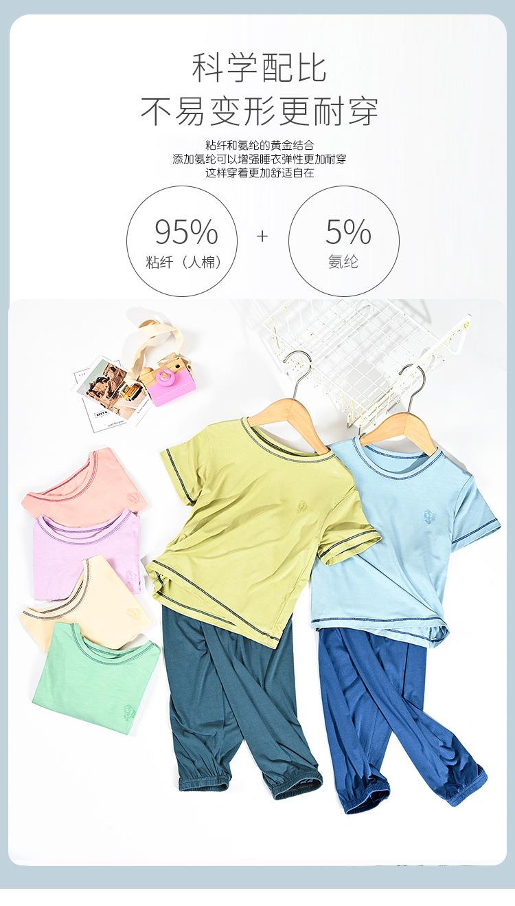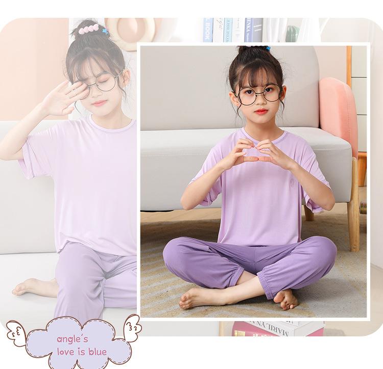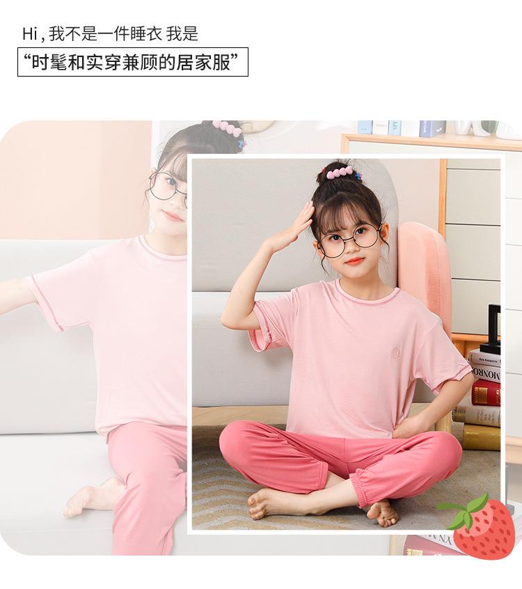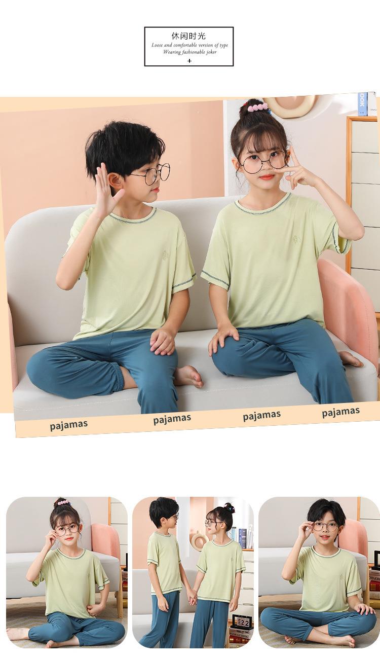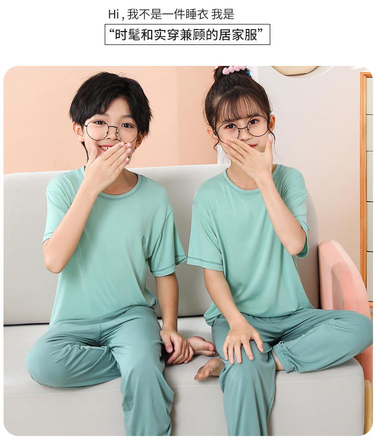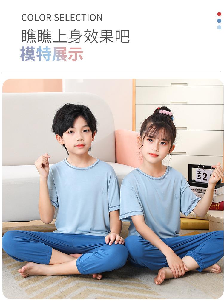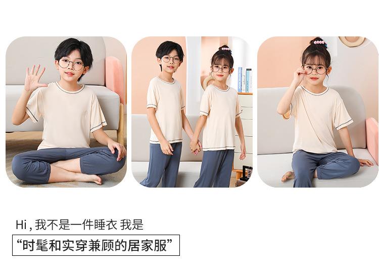 夏季新款中大童家居服套装男童莫代尔透气女童短袖长裤睡衣两件套