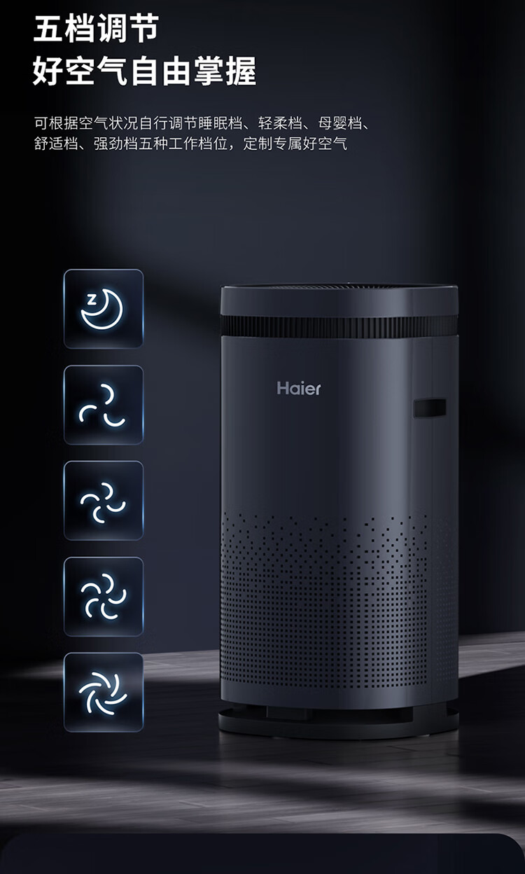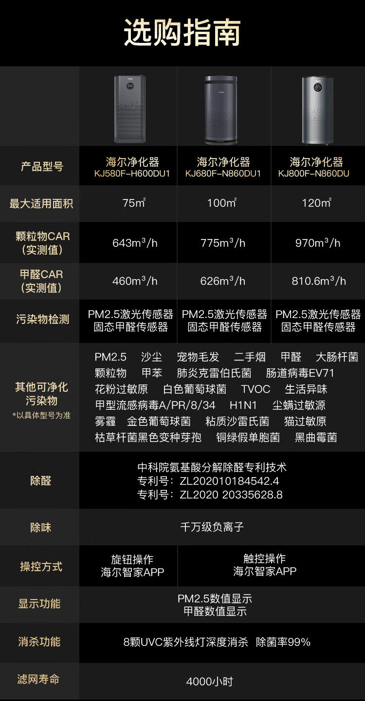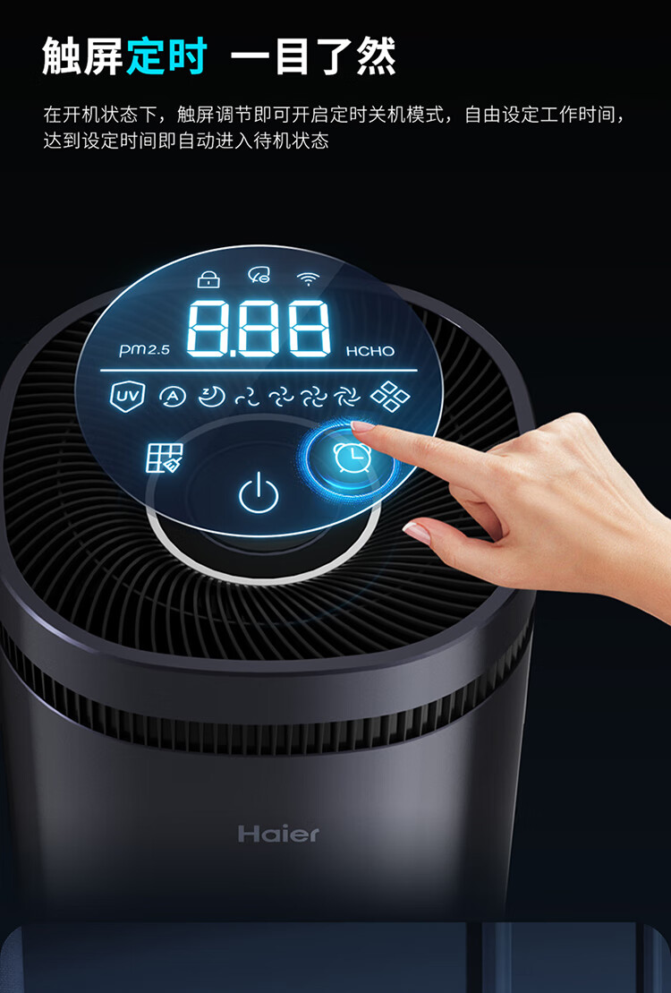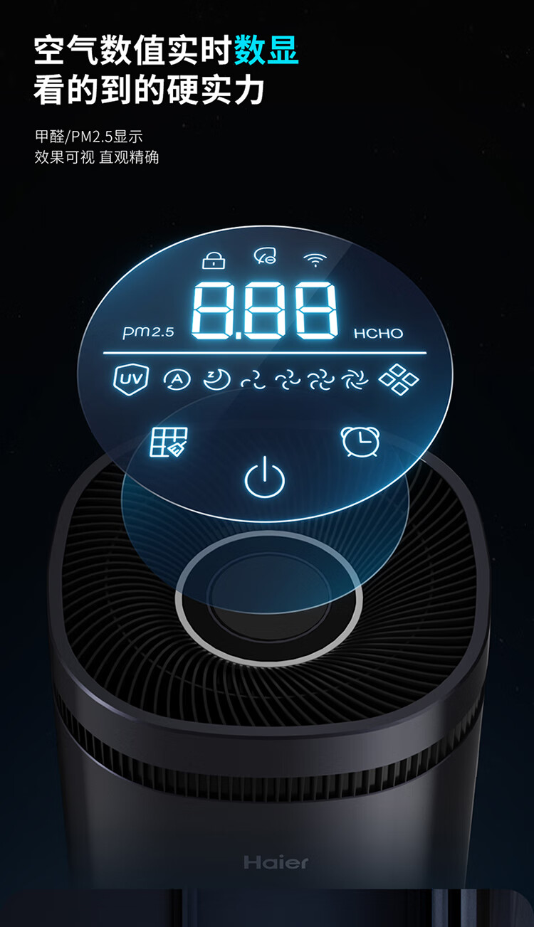 海尔(Haier)空气净化器家用除甲醛雾霾烟味 紫外线除菌 负离子除异味花粉过敏源宠物毛发 甲醛数显KJ580F-H600DU1