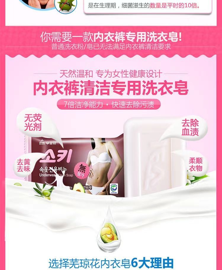 【爆款超低价预售 急单慎拍】韩国原装进口芜琼花女士内衣皂内裤专用经血洗衣肥皂去血渍抑菌皂