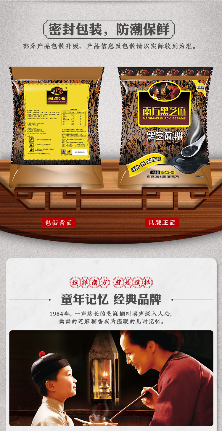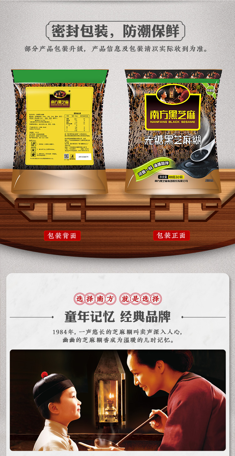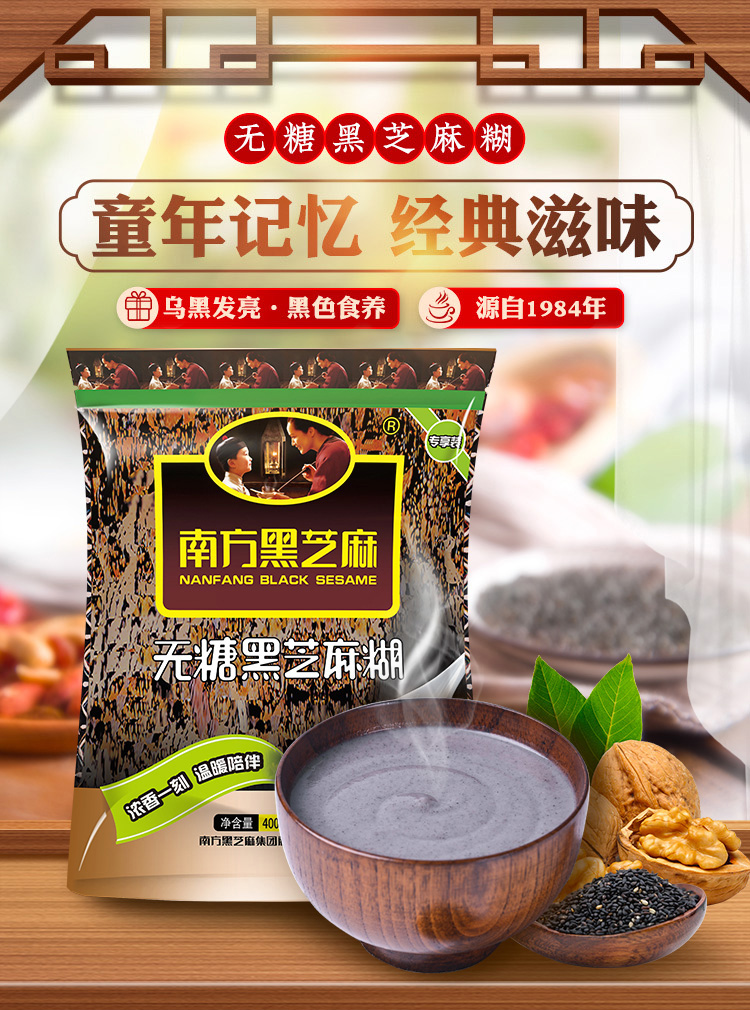 【爆款】 南方原味/无糖黑芝麻糊400g*4袋