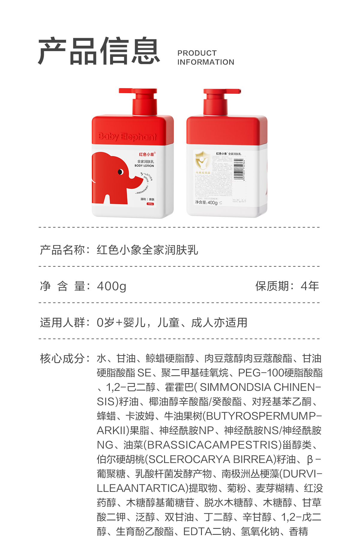 红色小象全家润肤乳400g(250832)