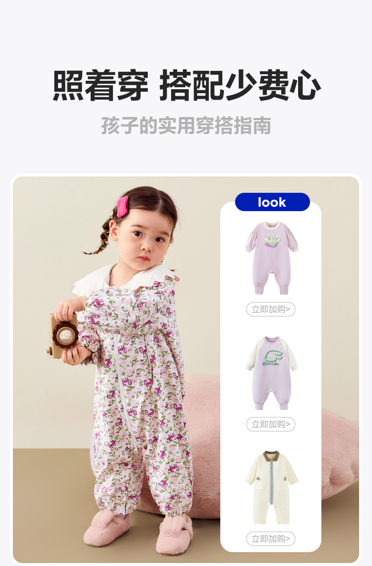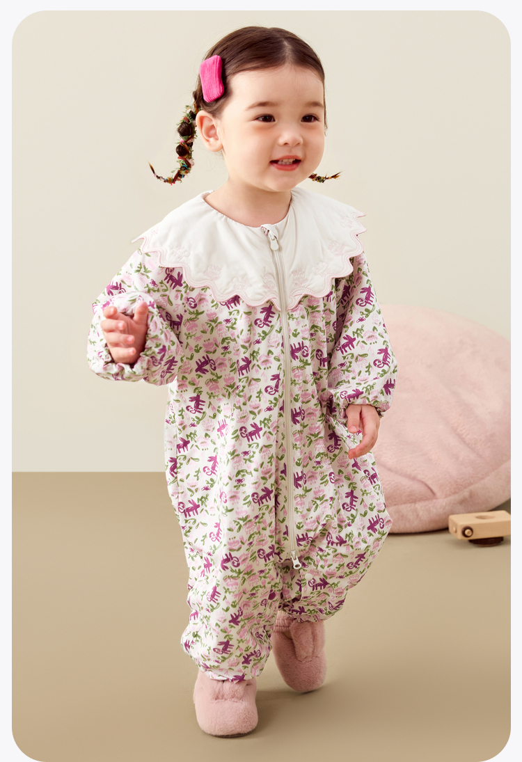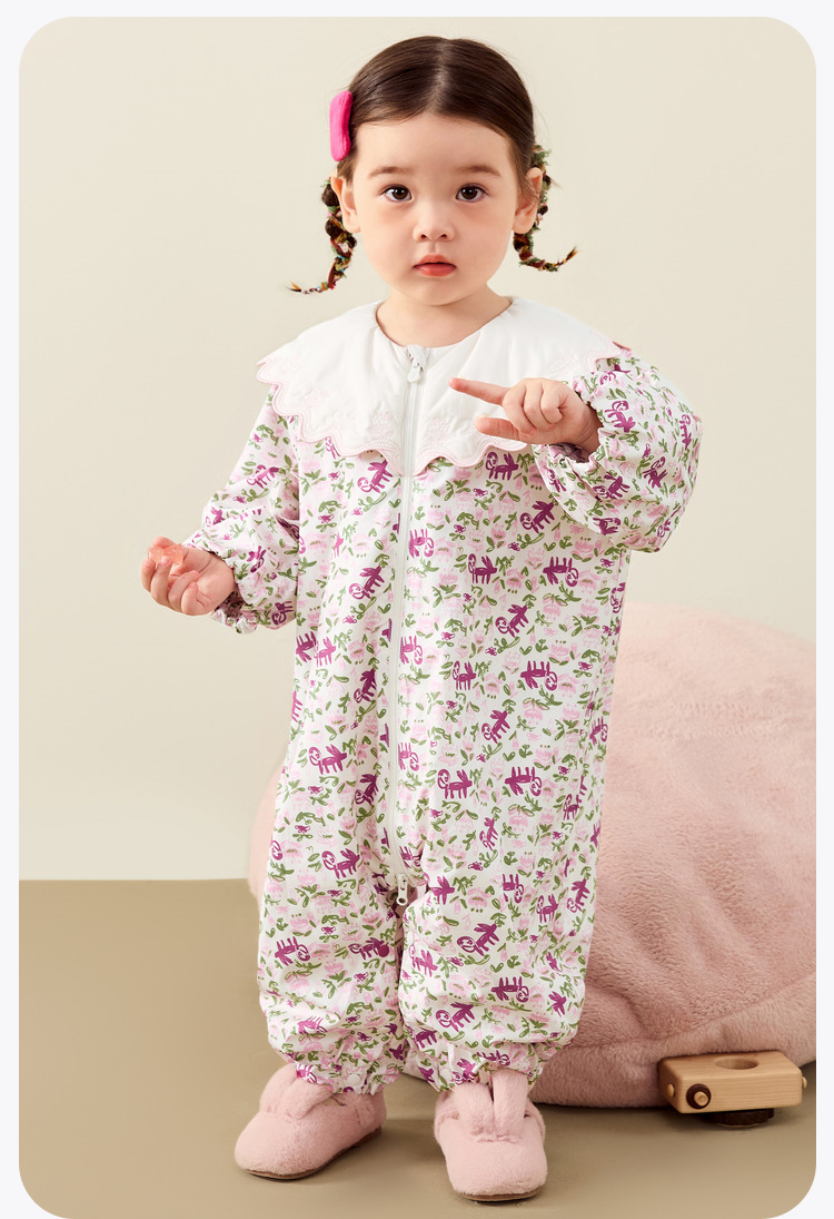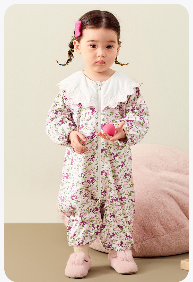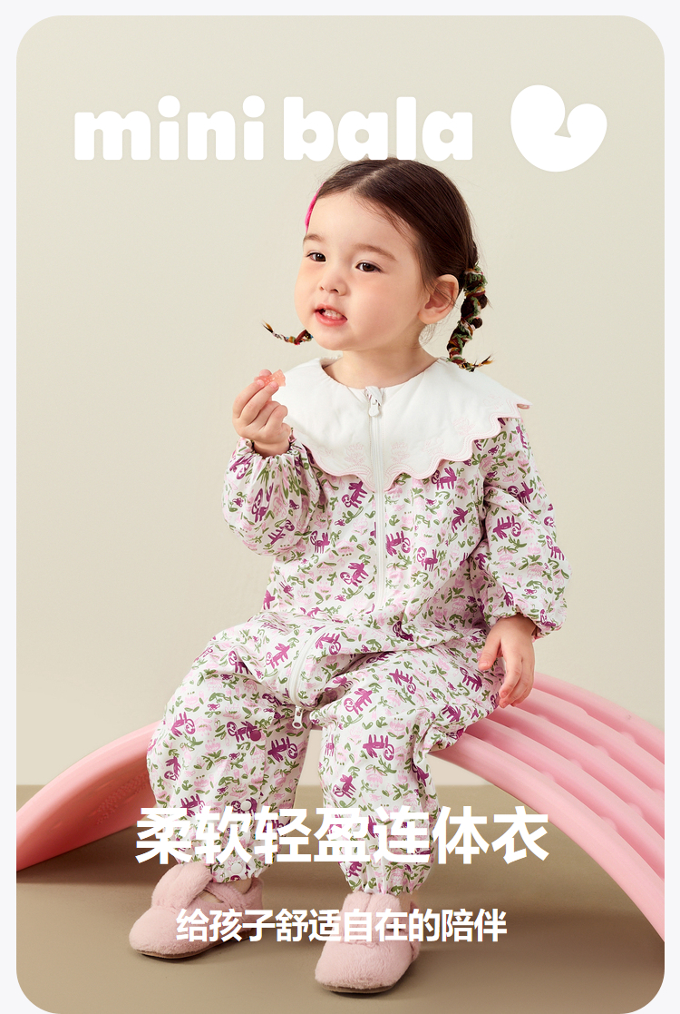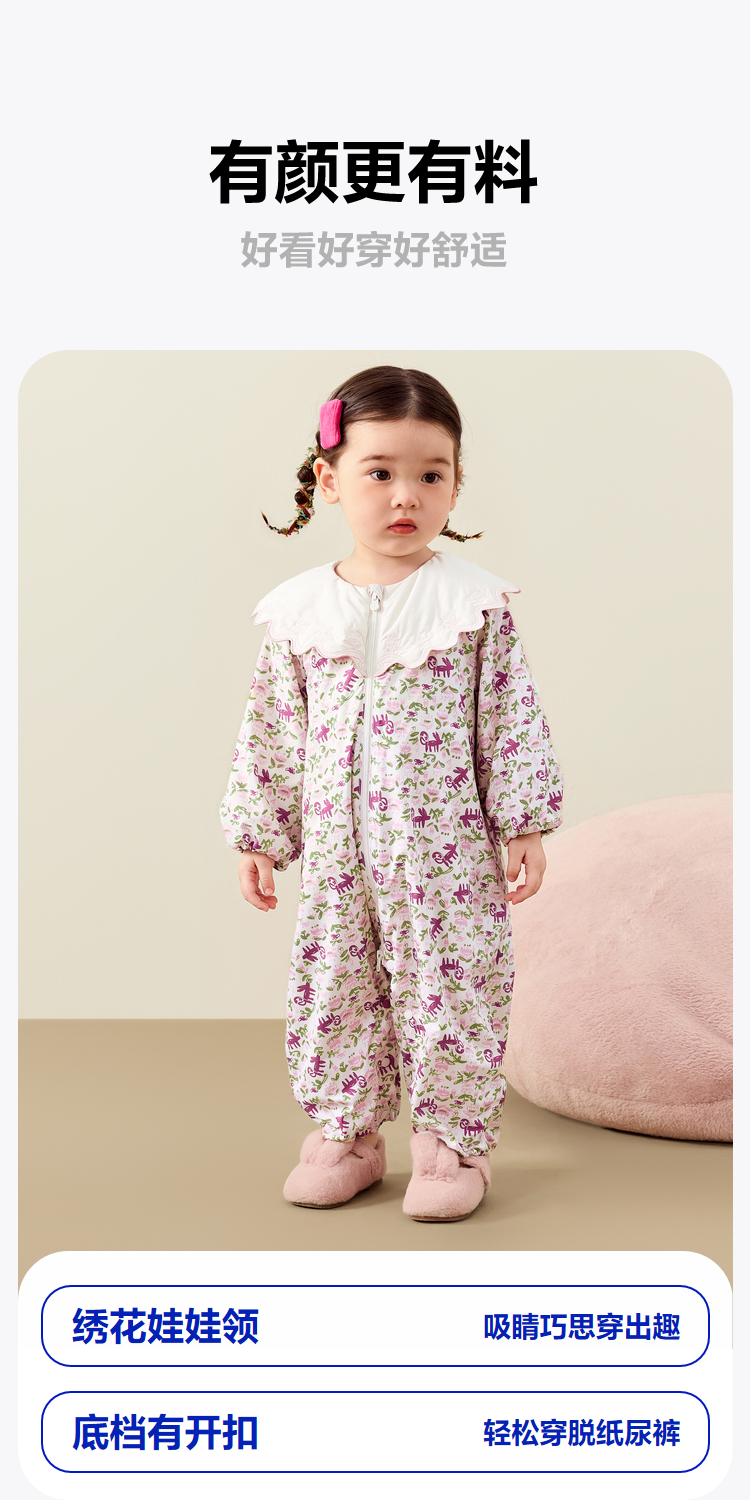迷你巴拉外出连体衣女童宝宝甜美娃娃领秋款爬服