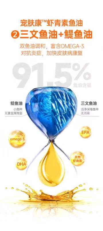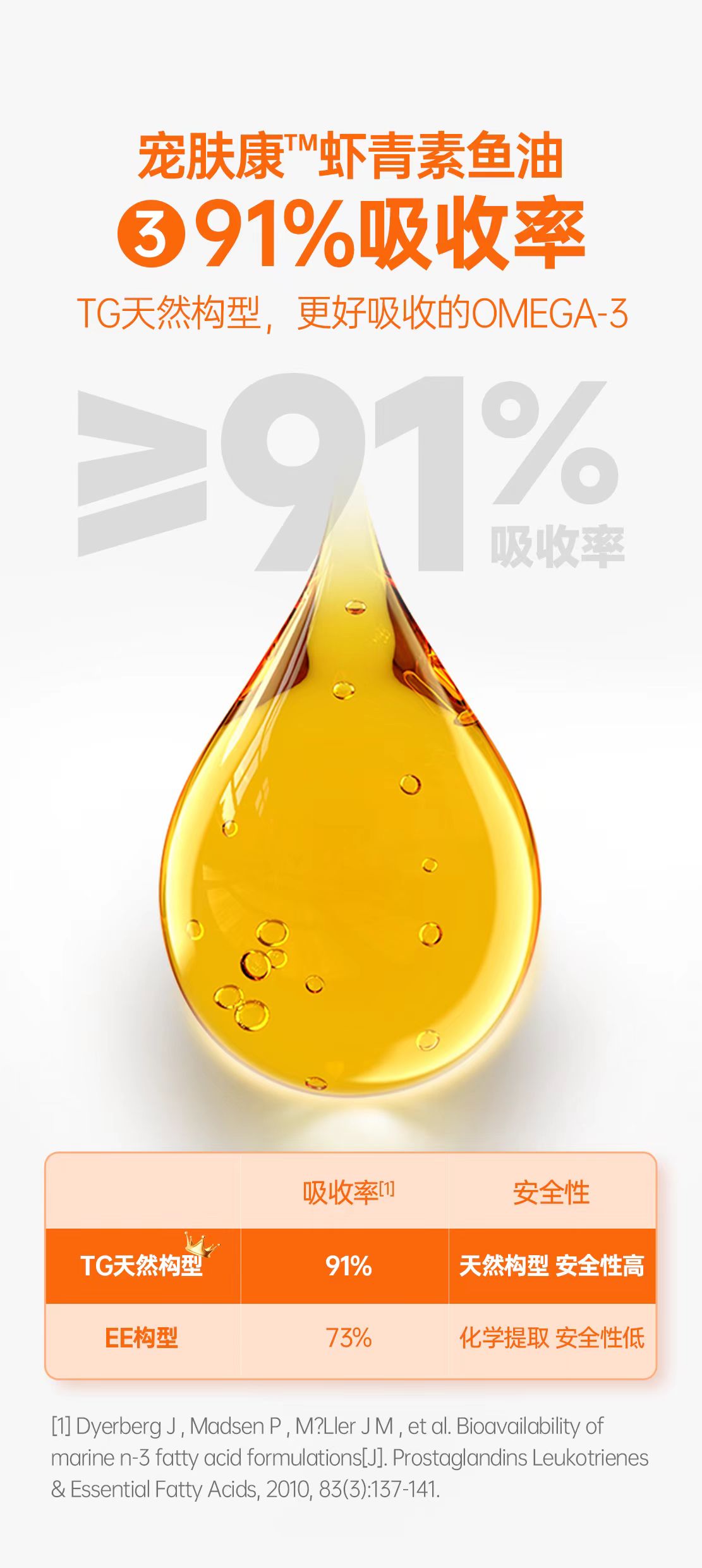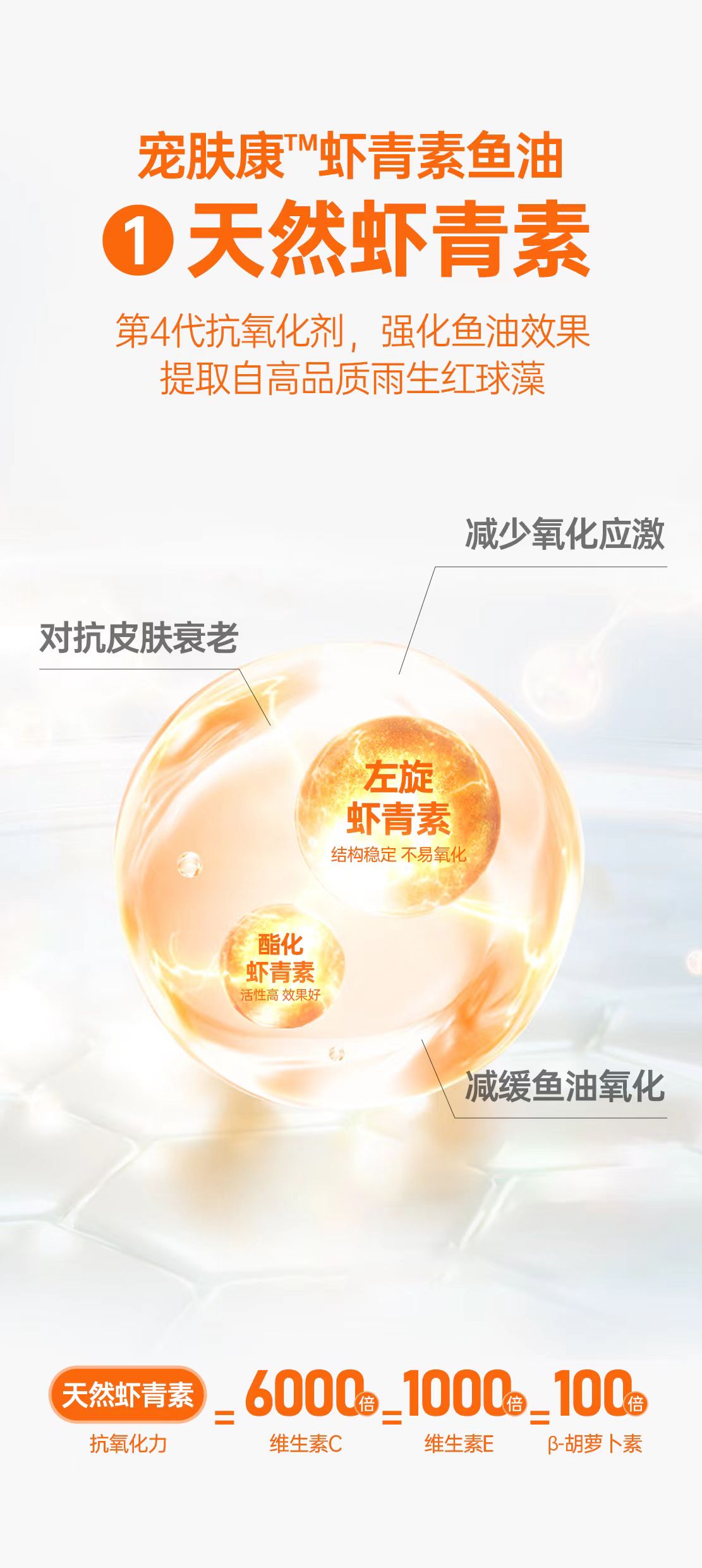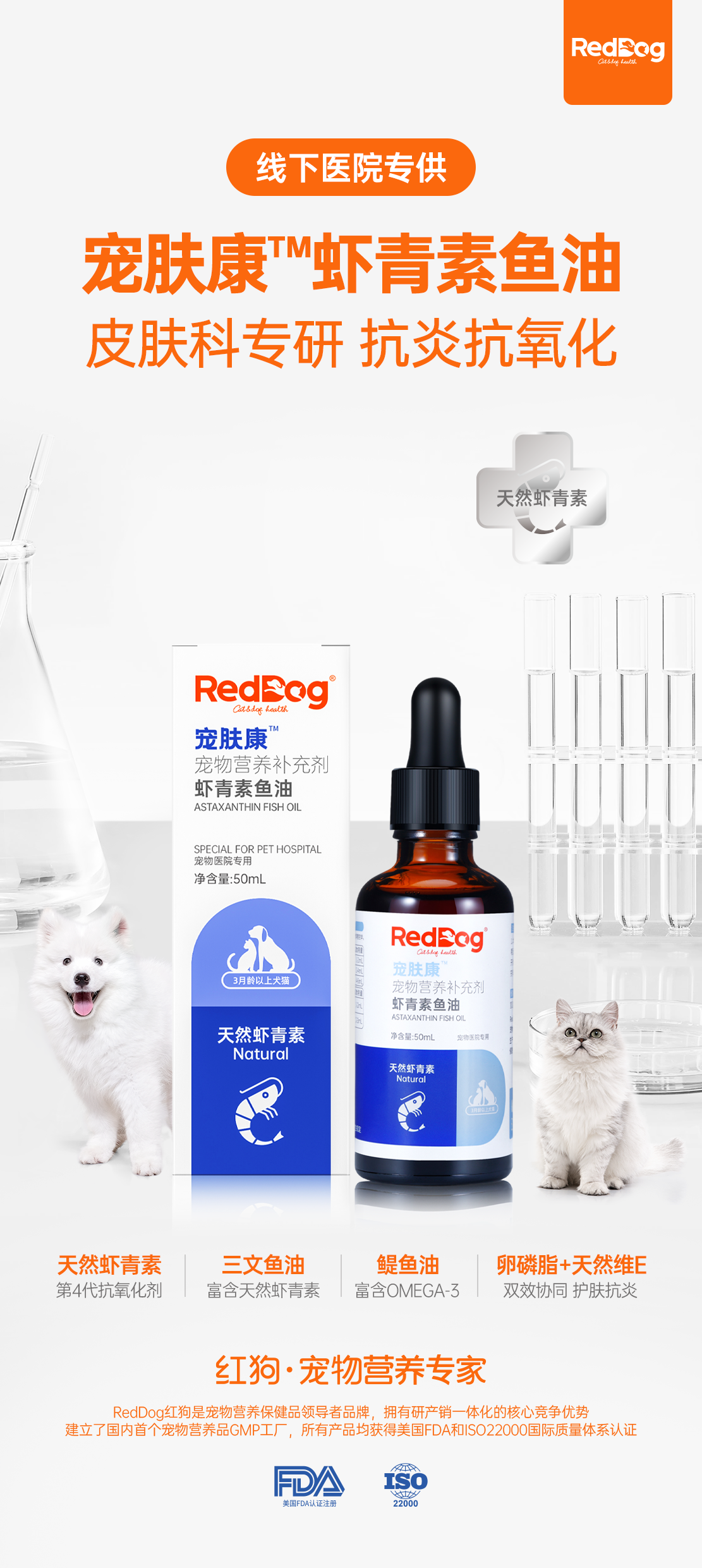 红狗宠肤康虾青素鱼油 3月龄以上犬猫专用 毛发皮肤关节心血管营养补充剂 50ml小瓶装