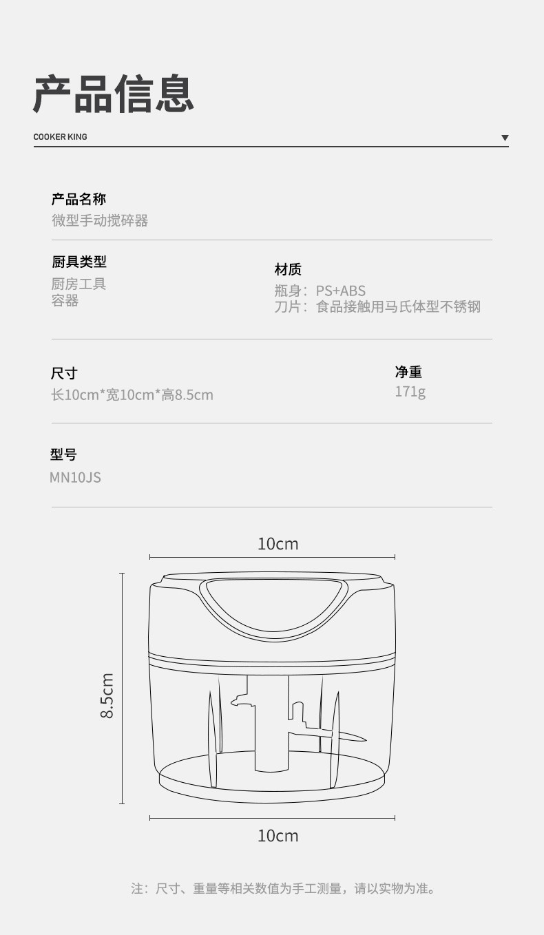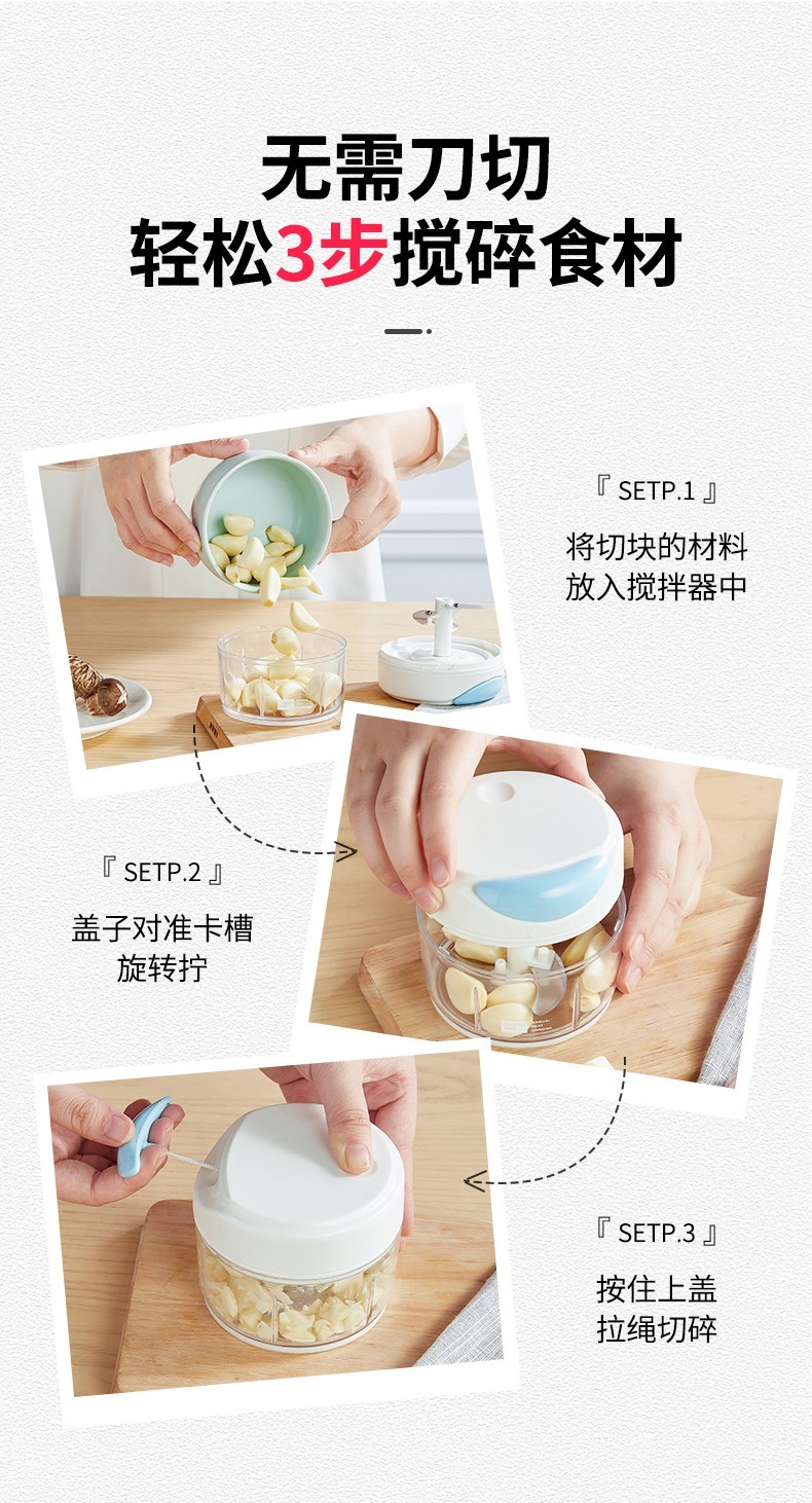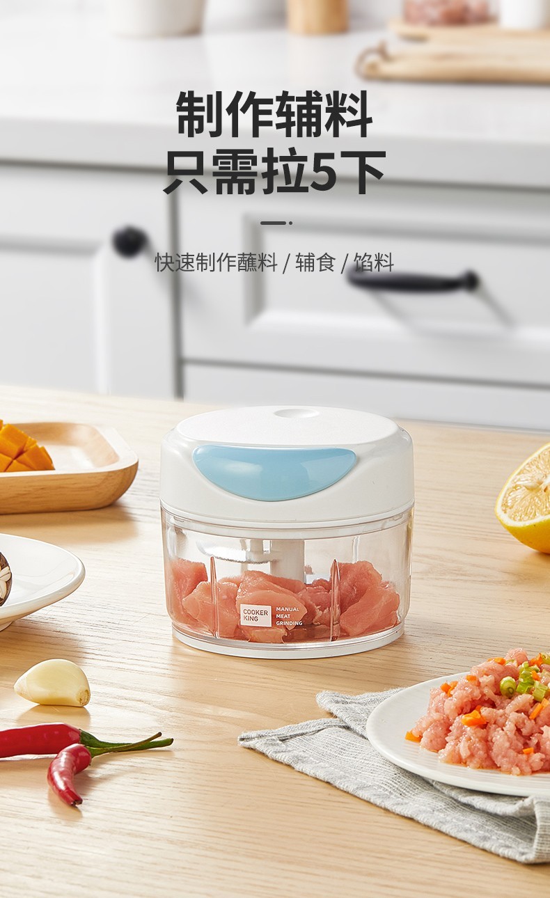 炊大皇 手动搅碎机 手动绞肉器小号 家用多功能捣蒜泥器绞菜器 婴儿辅食手动粉碎器