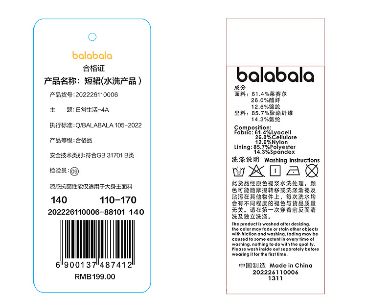 【商场同款】巴拉巴拉童装儿童短裙女童2026夏装新款牛仔裙裤凉感