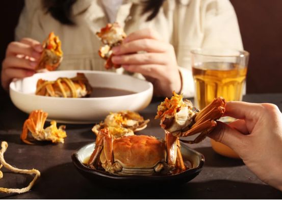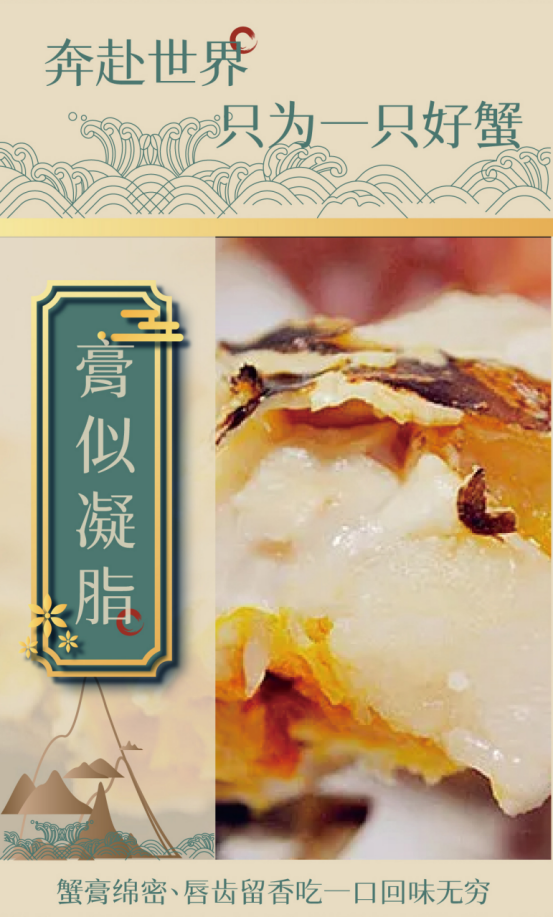 墨分六色,大闸蟹也有多味 蟹肉一味,蟹膏一味 蟹黄一味,蟹子又一味 而蟹肉又“四味” 大腿肉,丝短纤细,味同干贝 小腿肉,丝长细嫩,美如银鱼 蟹身肉,洁白晶莹,胜似白鱼 蟹黄,妙不可言,无法比喻