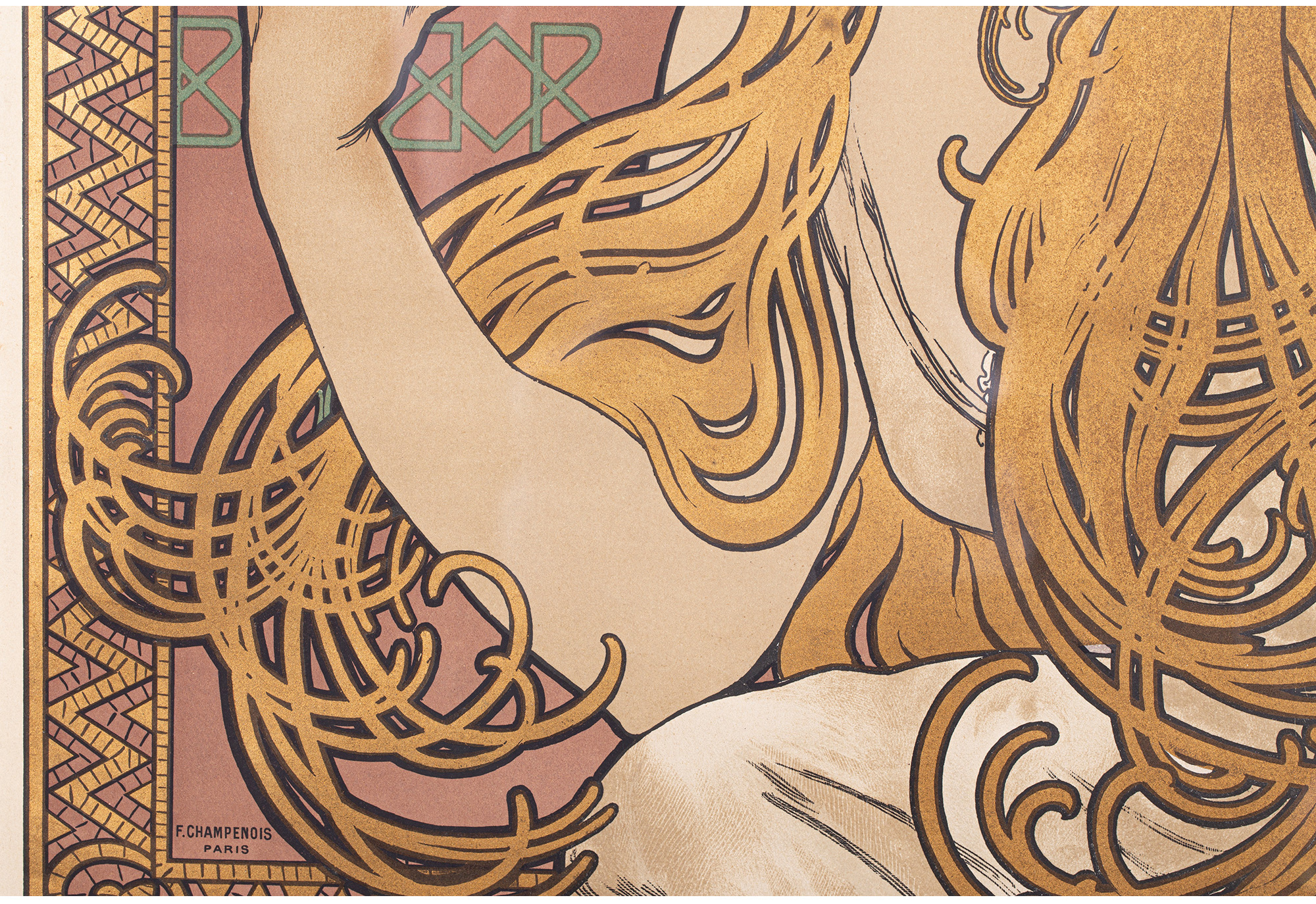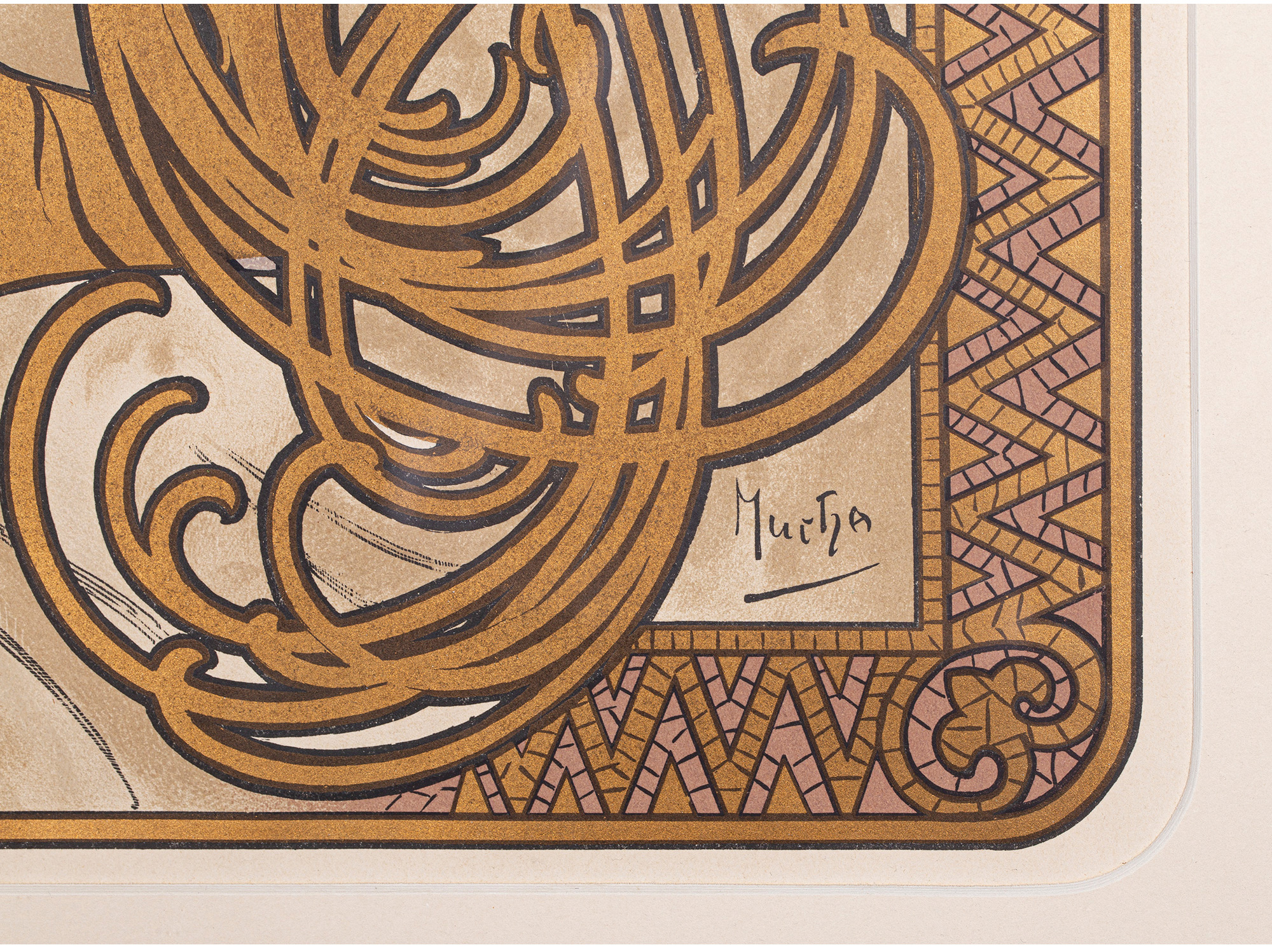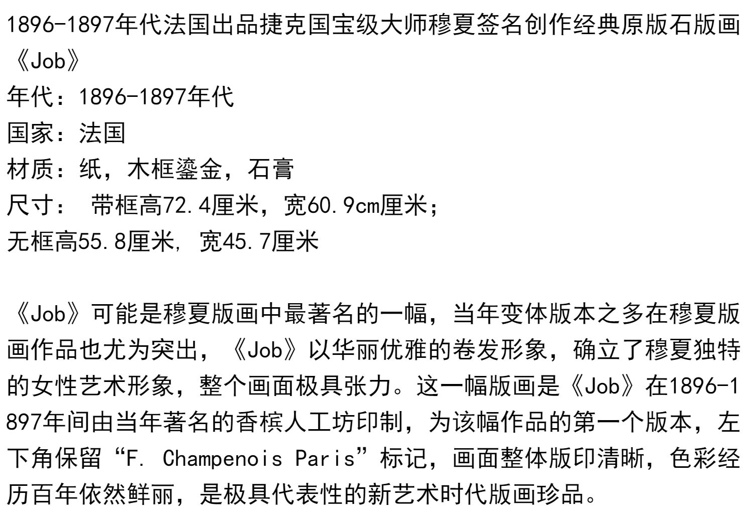 独角鹿西洋古董捷克国宝级大师穆夏签名经典原版石版画《Job》