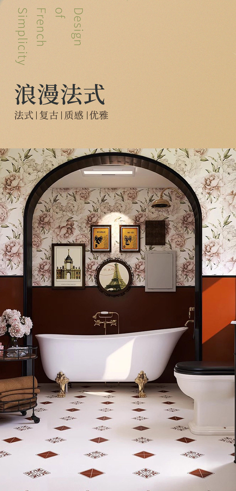 厨房法式花砖300x1200复古阳台布地板砖墙砖海基瓷砖卫浴国色天香