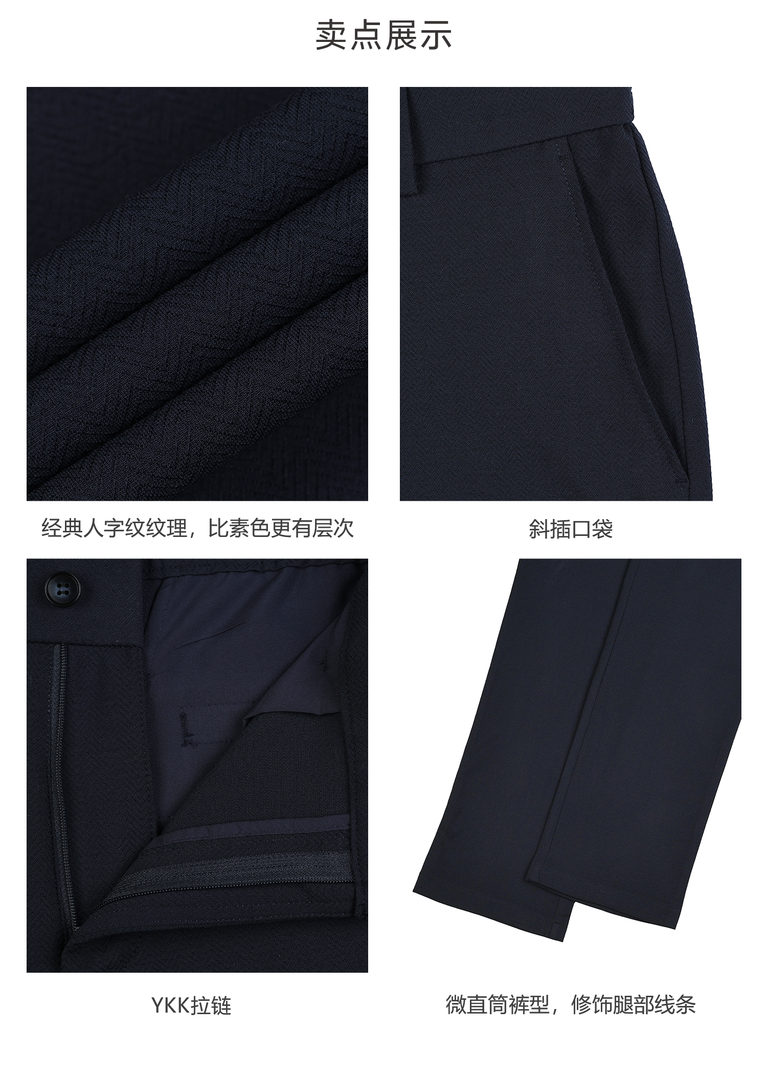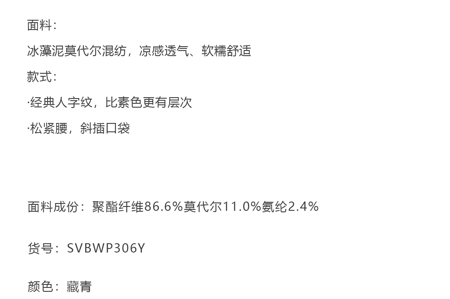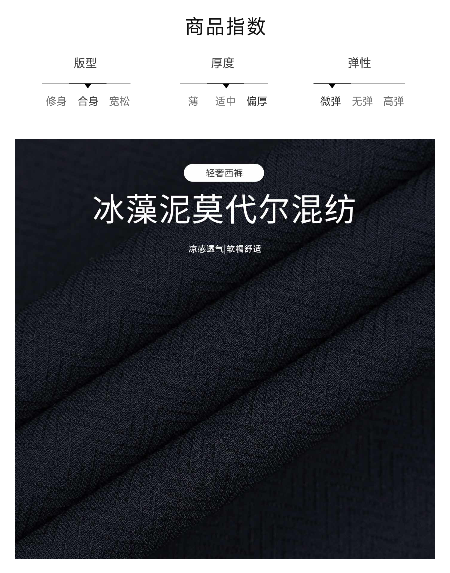 callisto藏青冰藻泥莫代尔混纺人字纹西裤