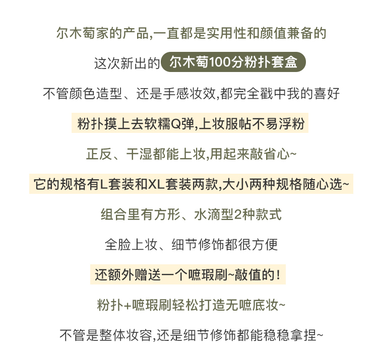 尔木萄 底妆100分粉扑套盒气垫干湿两用超软棉花糖不吃粉