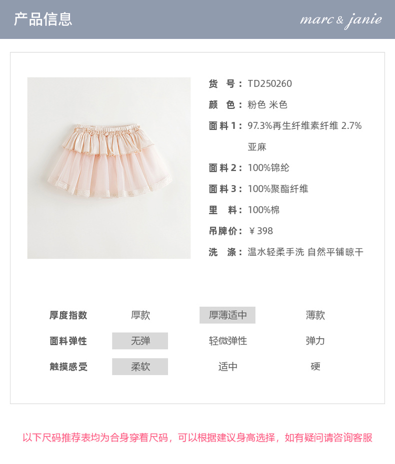 马克珍妮女童甜美蓬蓬网纱裙宝宝短裙半身裙2025年春夏新款250260