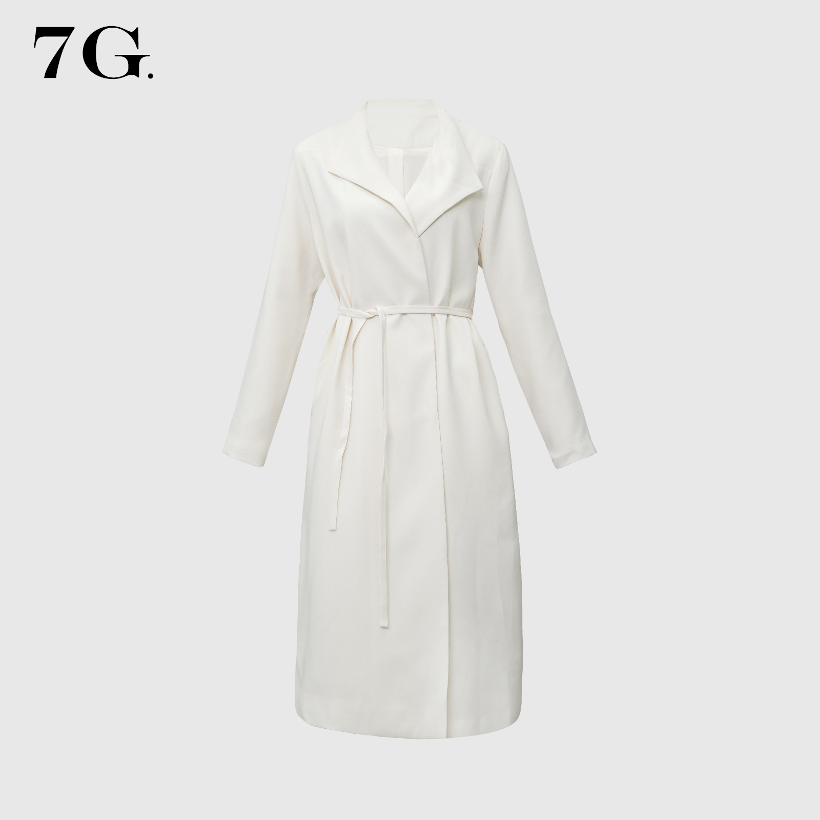 QG8001#轻奢风系带醋酸翻领大衣