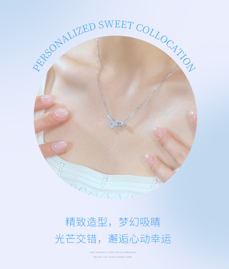卡蒂罗/KADER 丝带玫瑰项链 优雅蝴蝶结闪耀甜美可调节锁骨链 爱意交织大气温柔蛇年吸睛拼接链 925银