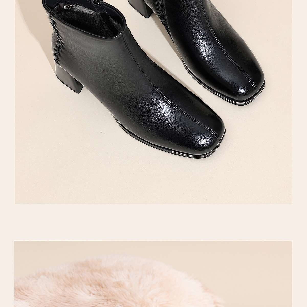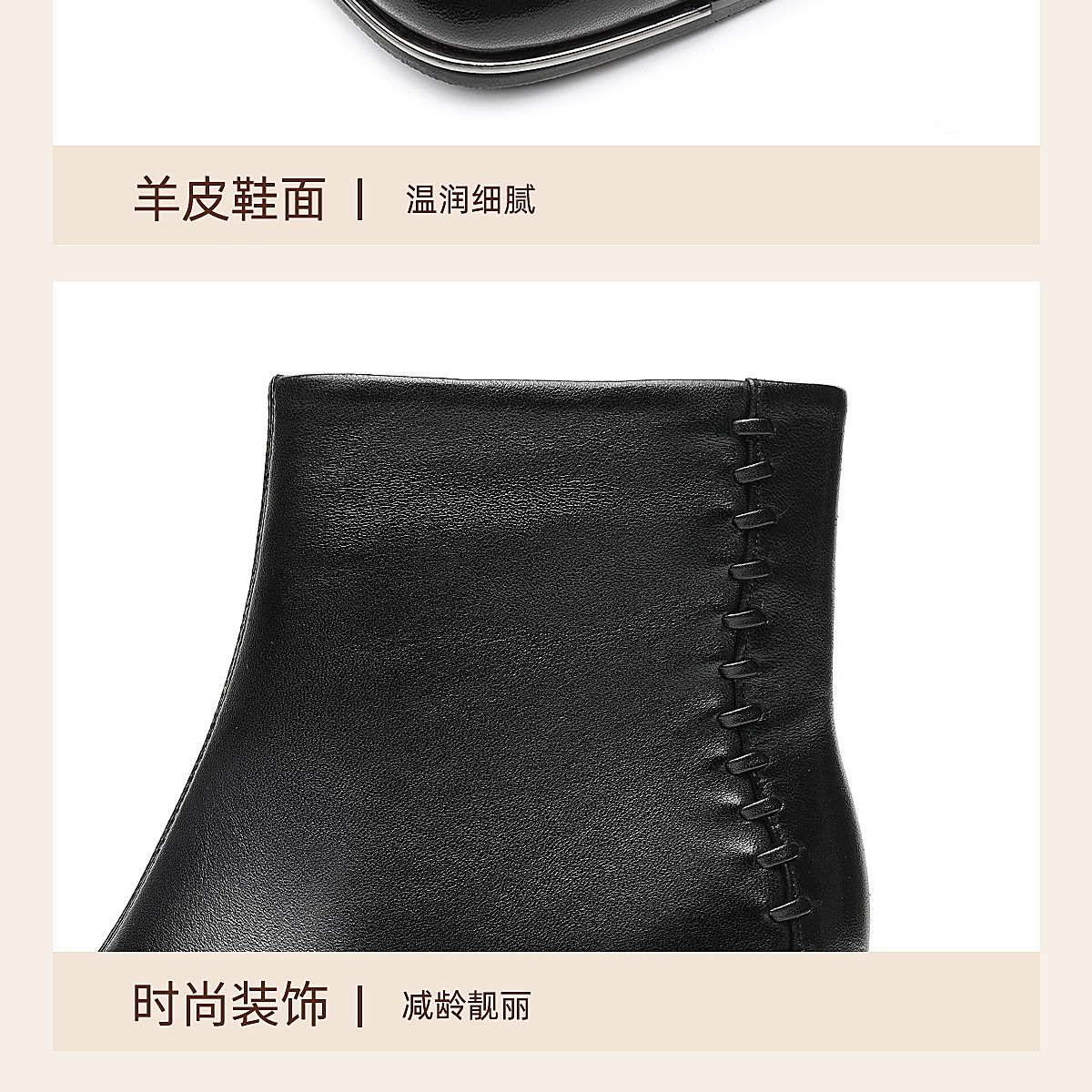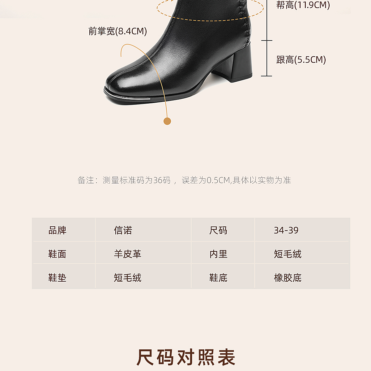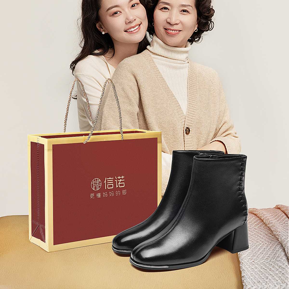 信诺妈妈棉鞋加绒保暖皮鞋羊皮粗跟短靴中老年女鞋子2025冬季新款X5M158-275D