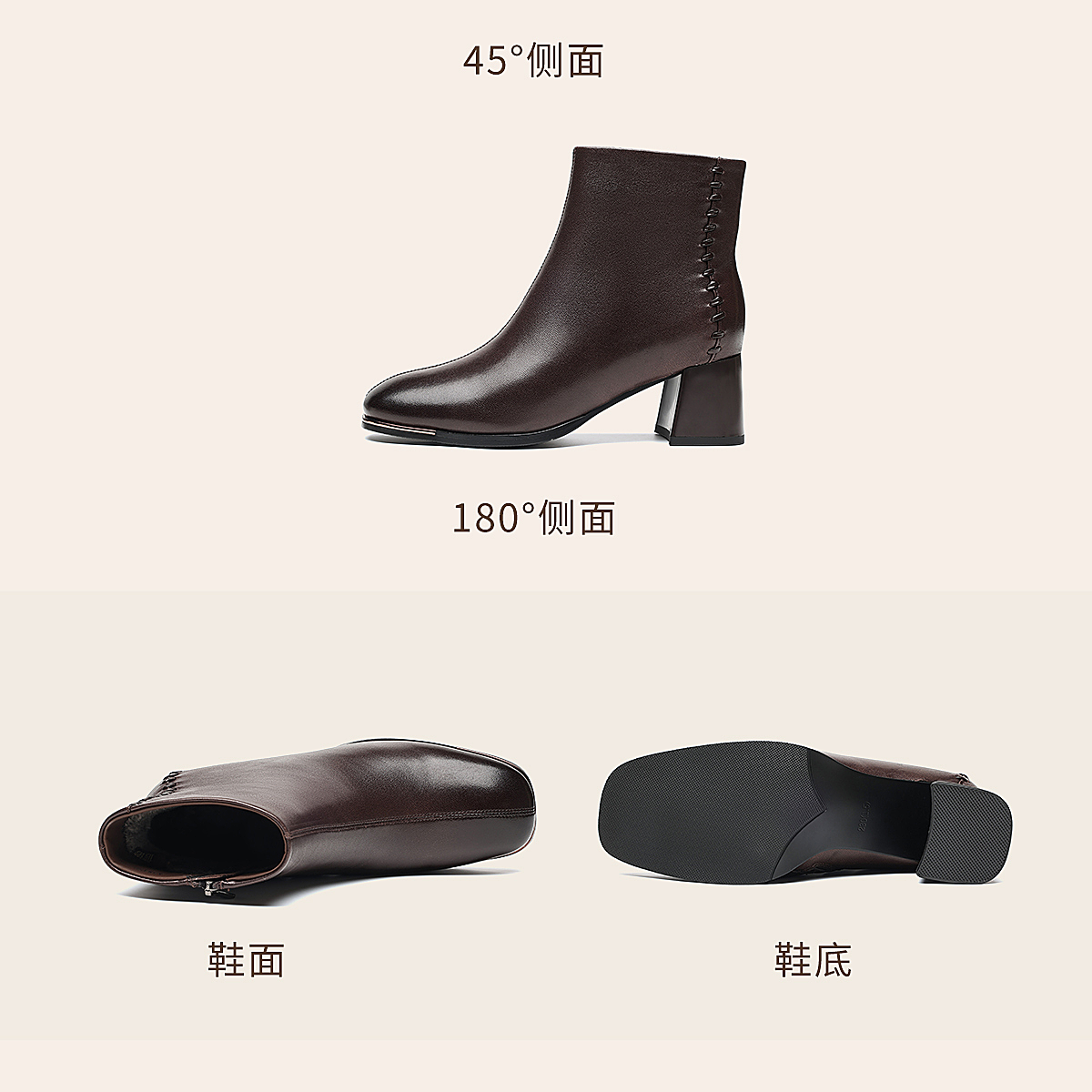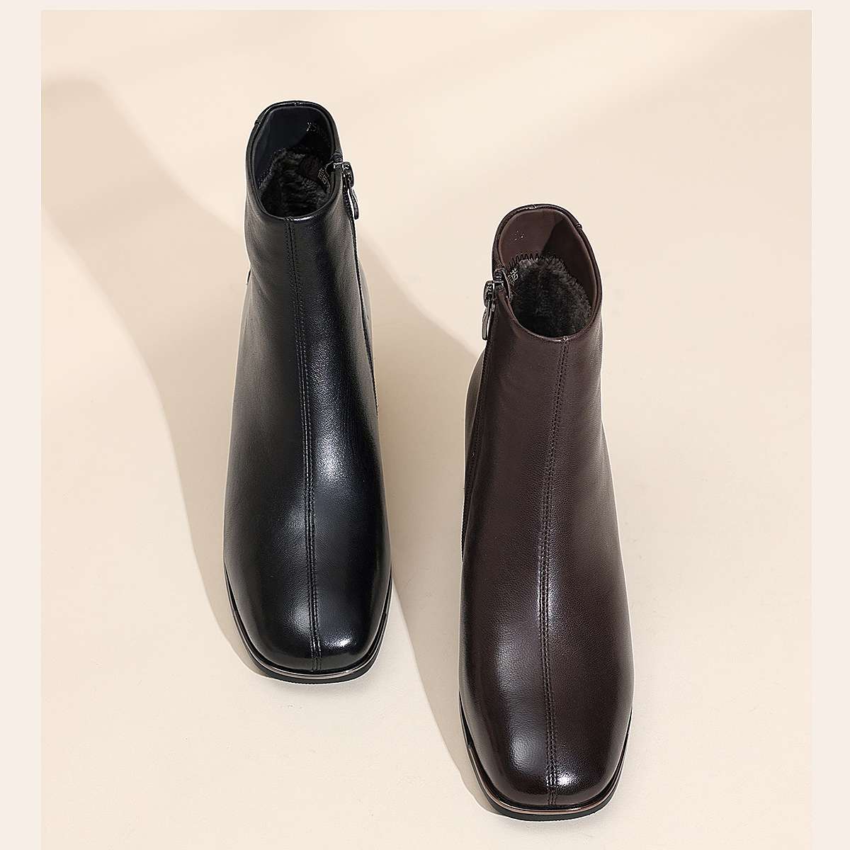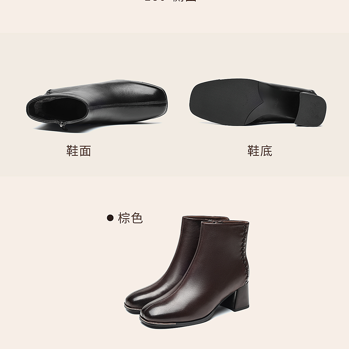 信诺妈妈棉鞋加绒保暖皮鞋羊皮粗跟短靴中老年女鞋子2025冬季新款X5M158-275D