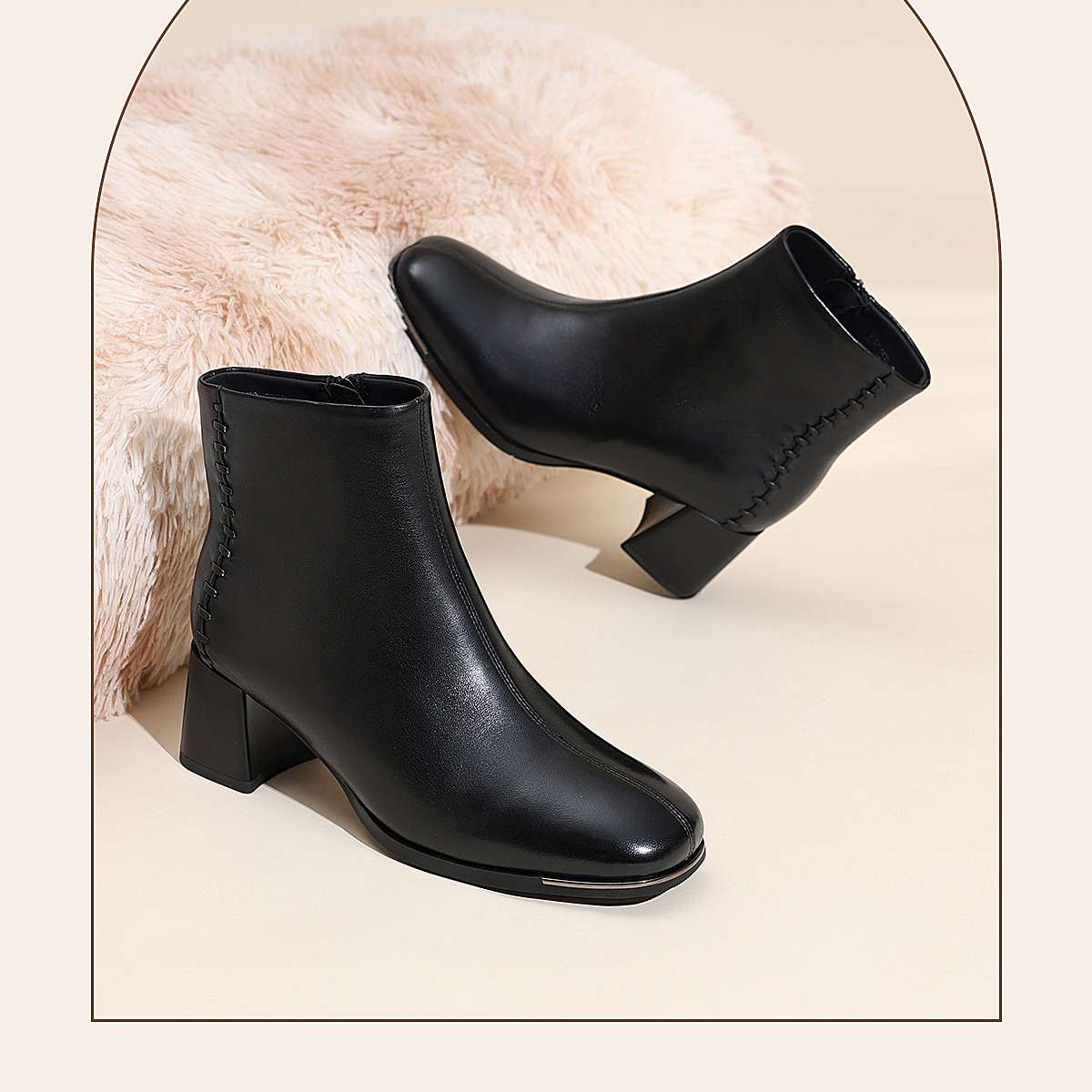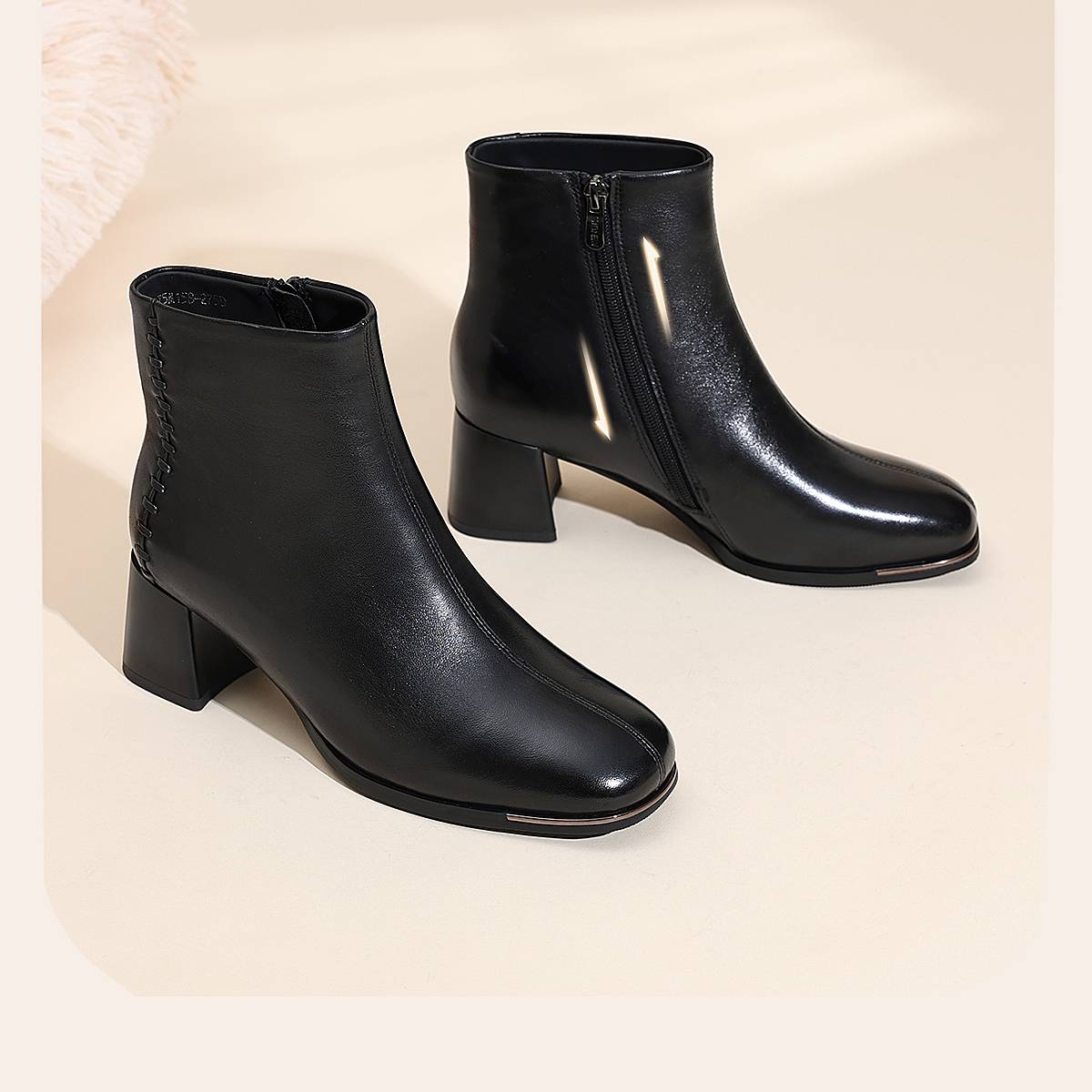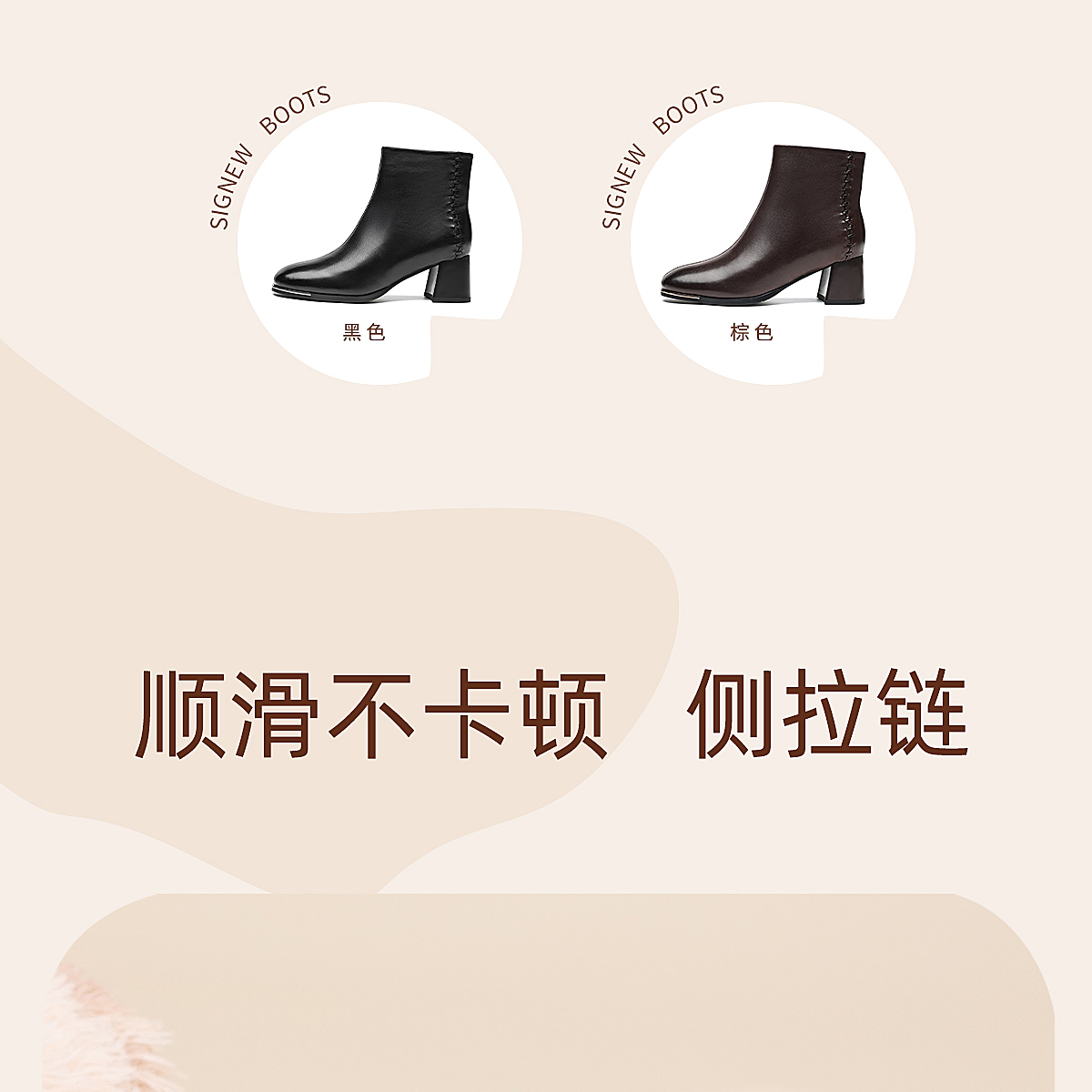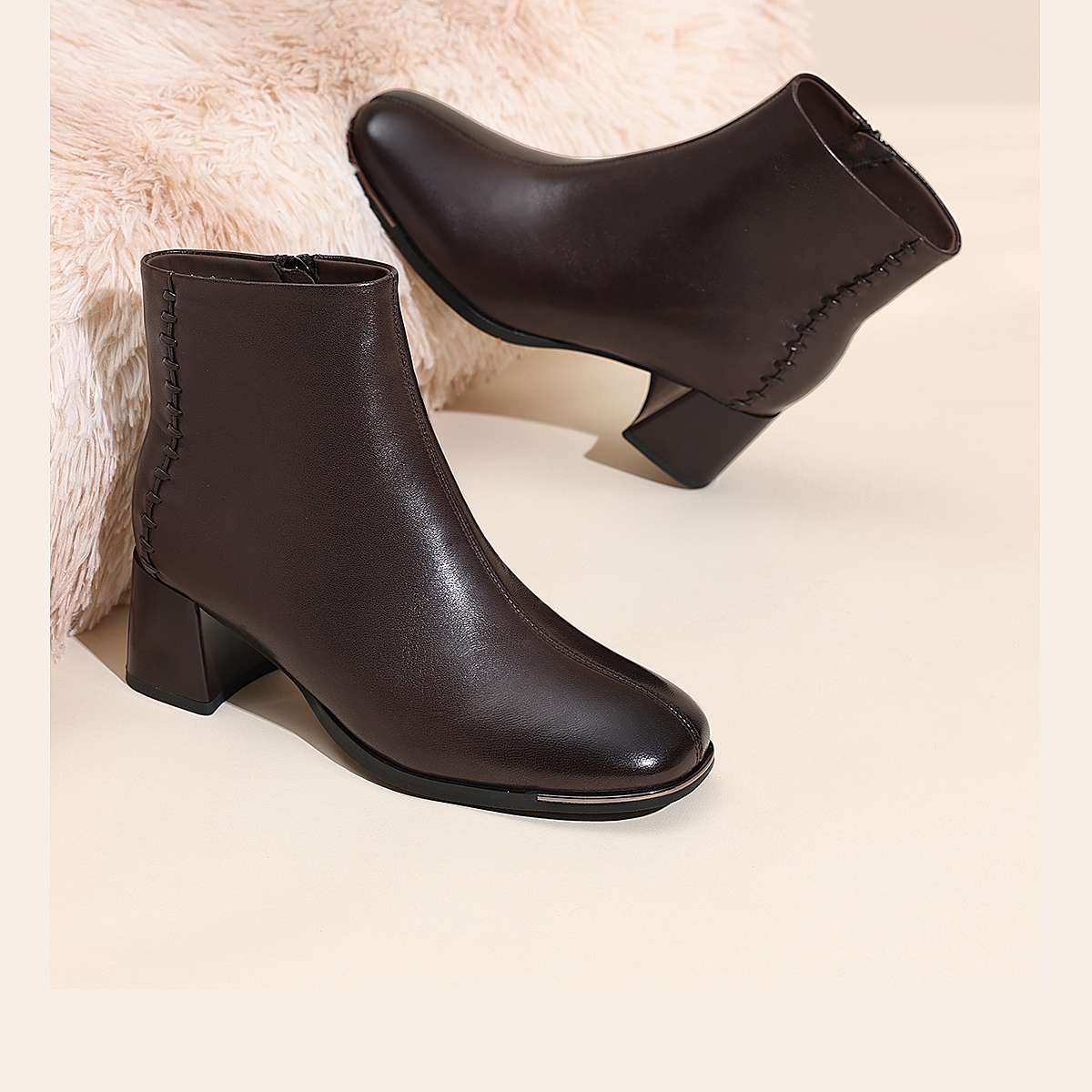 信诺妈妈棉鞋加绒保暖皮鞋羊皮粗跟短靴中老年女鞋子2025冬季新款X5M158-275D