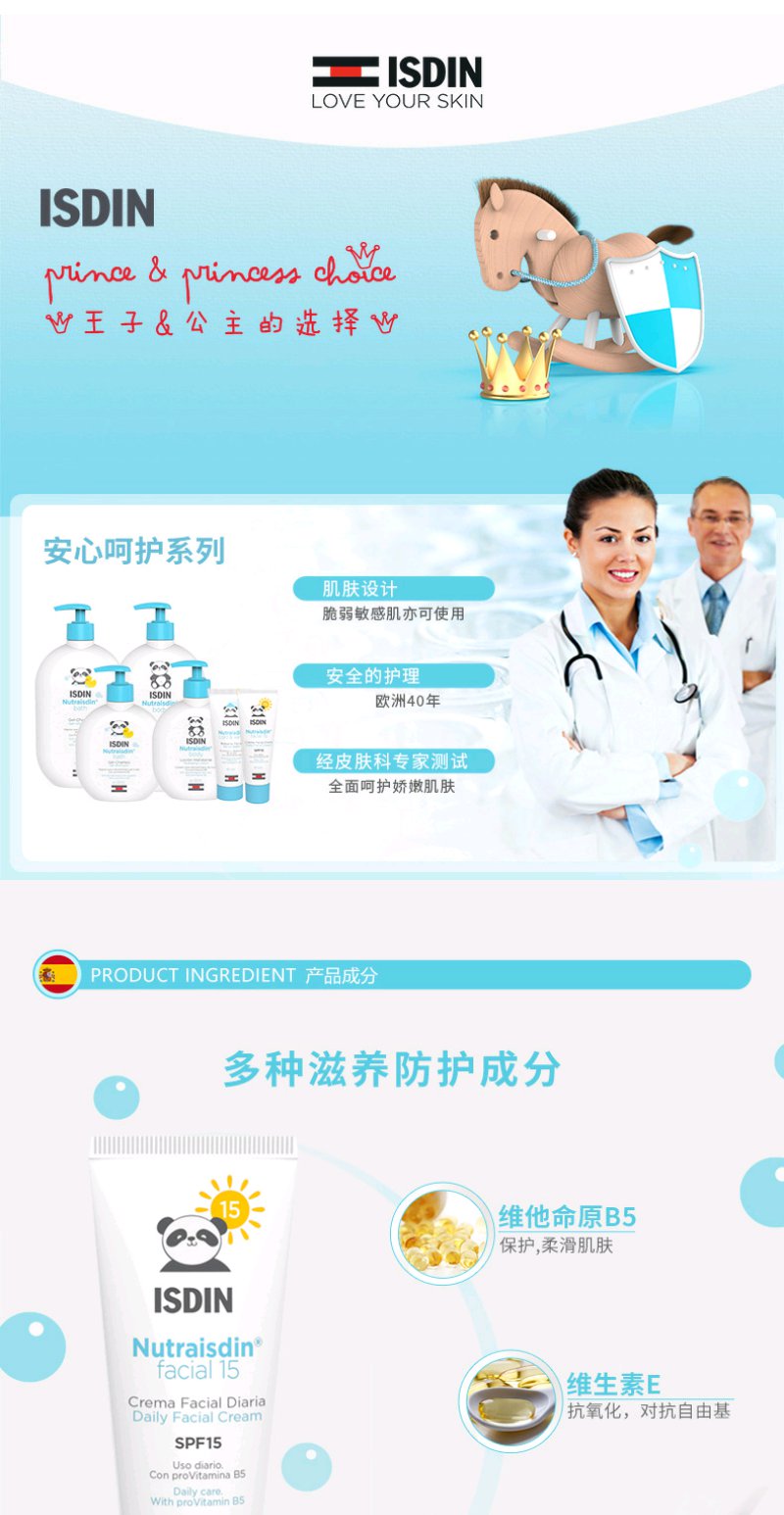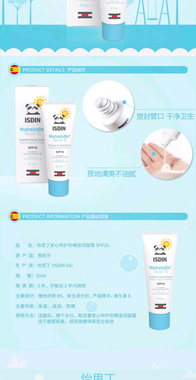 (超值)【限时特惠】西班牙ISDIN怡思丁儿童安心呵护防晒霜SPF26 50ml