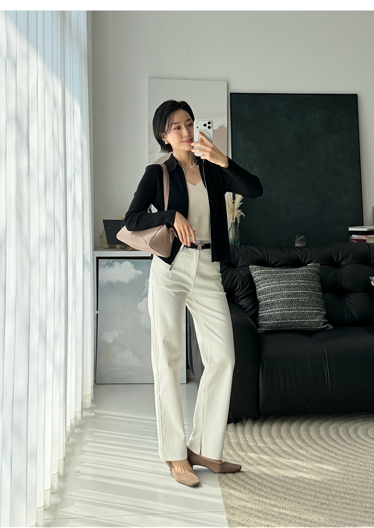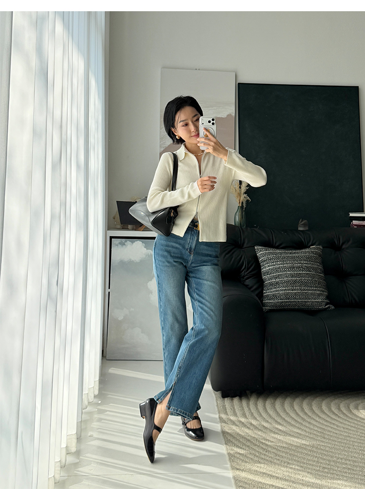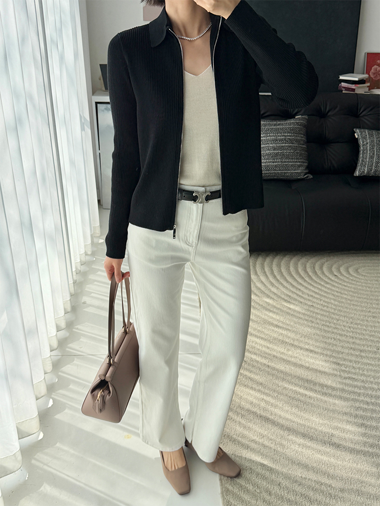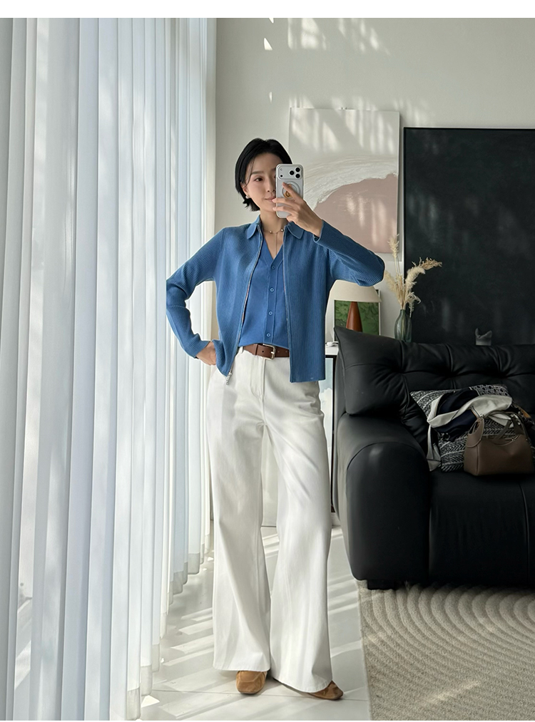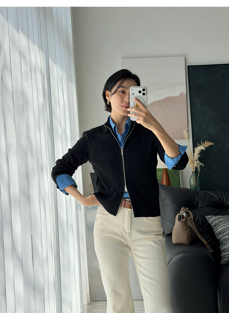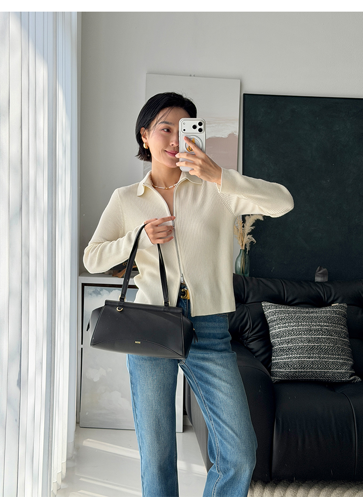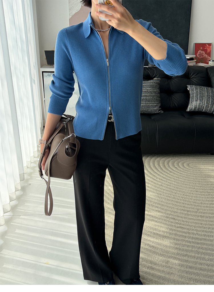 「Elena春日上新」羊毛混纺 简约百搭款 Polo领拉链开衫
