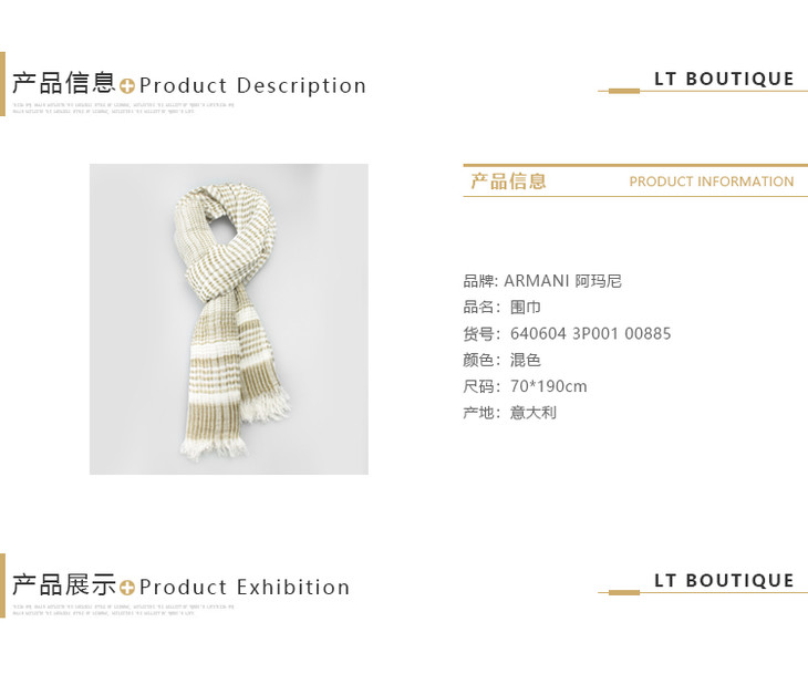 ARMANI 阿玛尼 男士围巾棕白 640604 3P001 00885