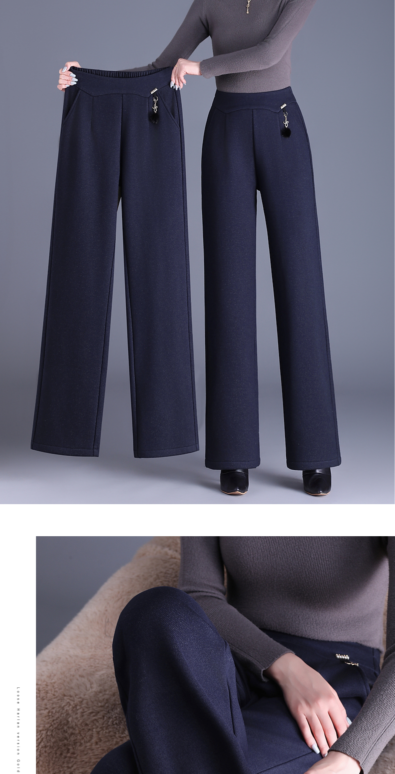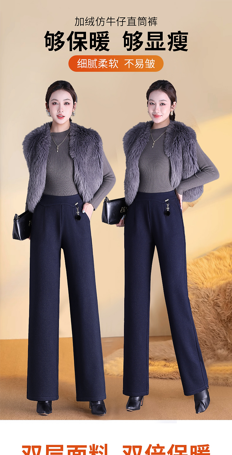 中年妈妈加绒加厚休闲裤女冬季2026新款胖mm大码显瘦直筒裤子外穿