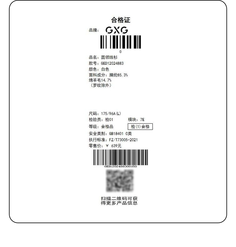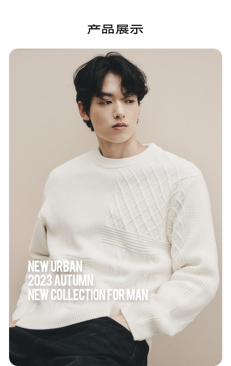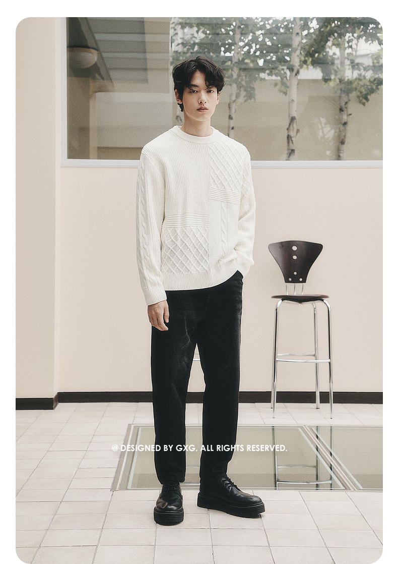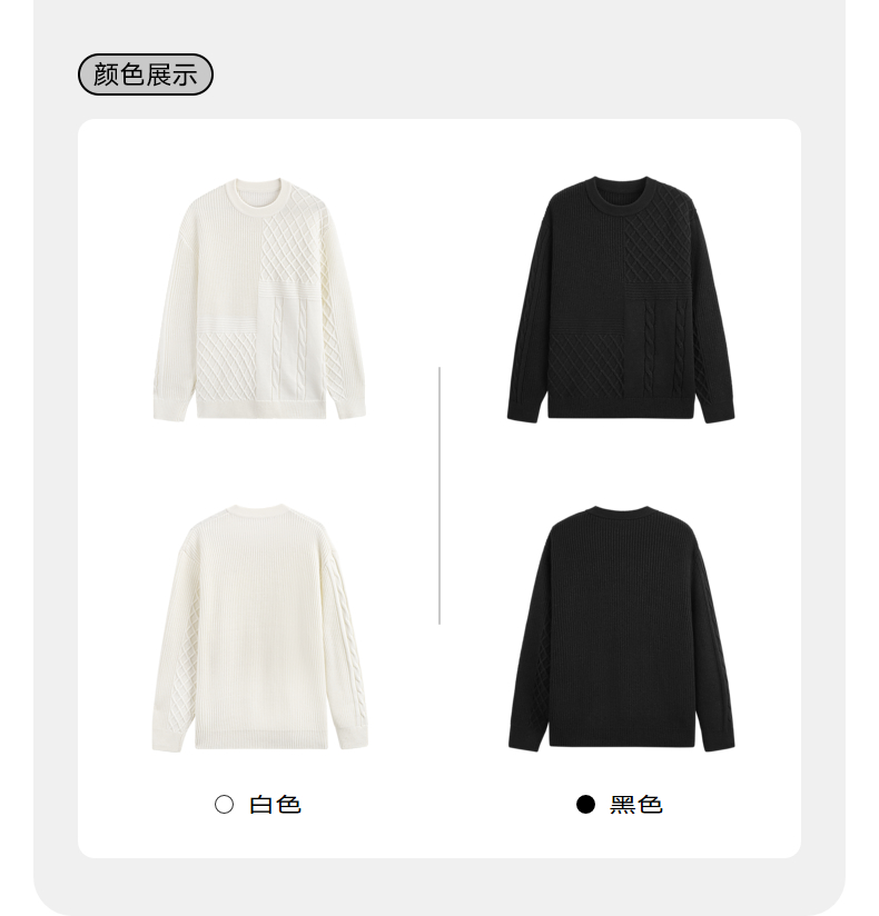 GXG男装 城市定义黑白纯色针织拼接肌理不易起球毛衣 秋季热卖