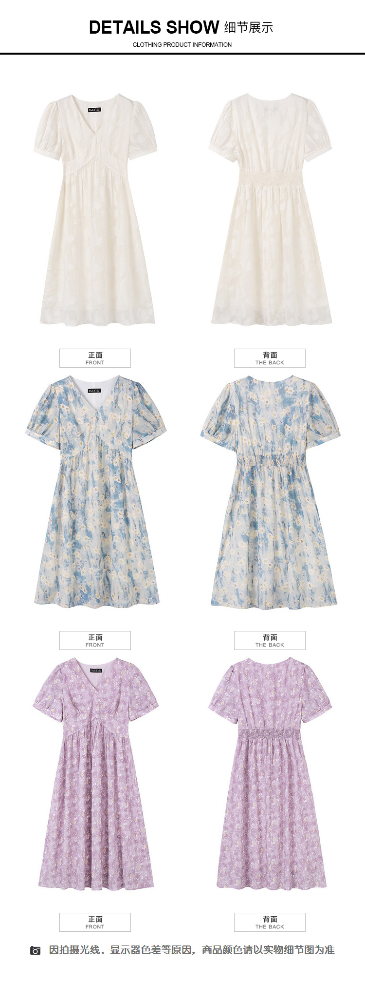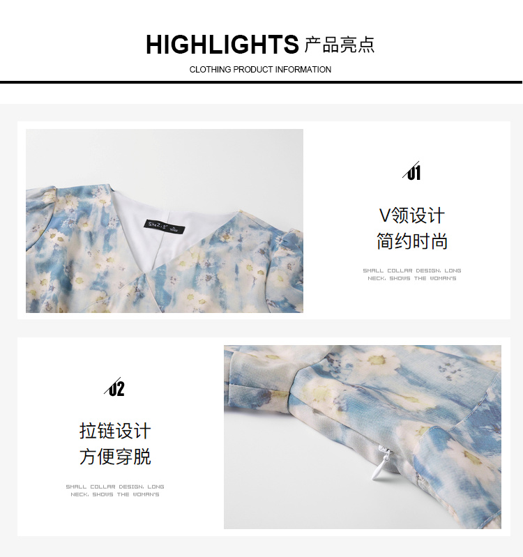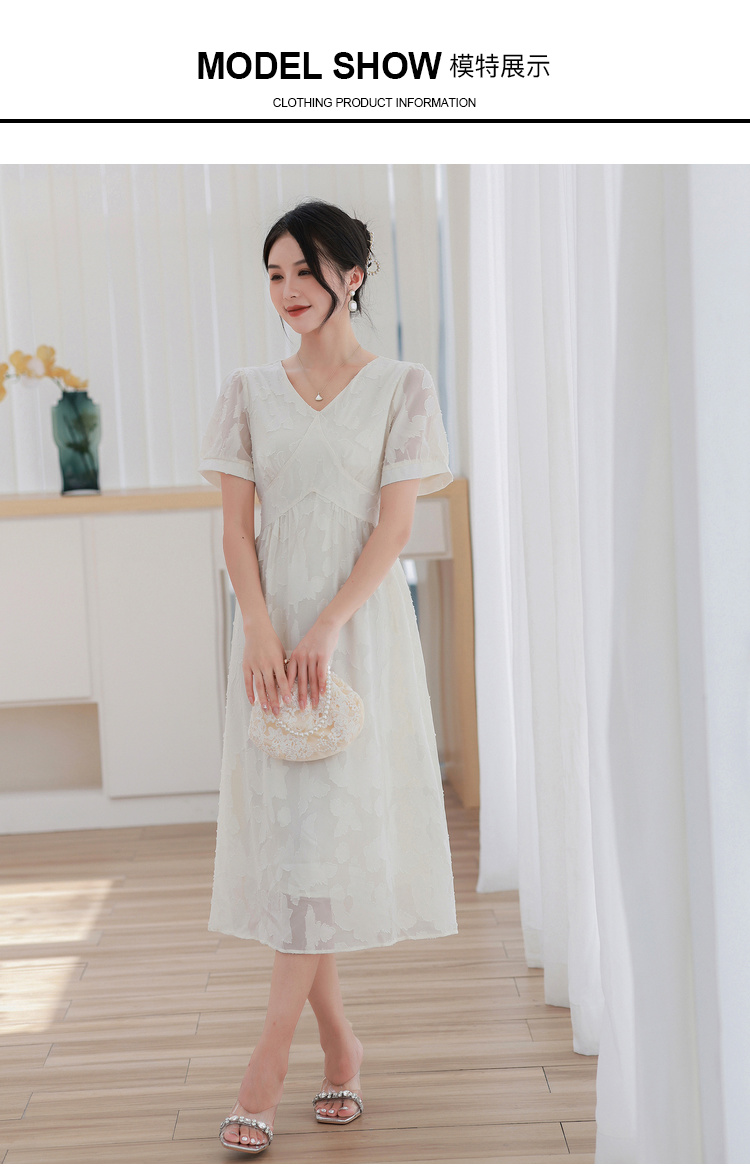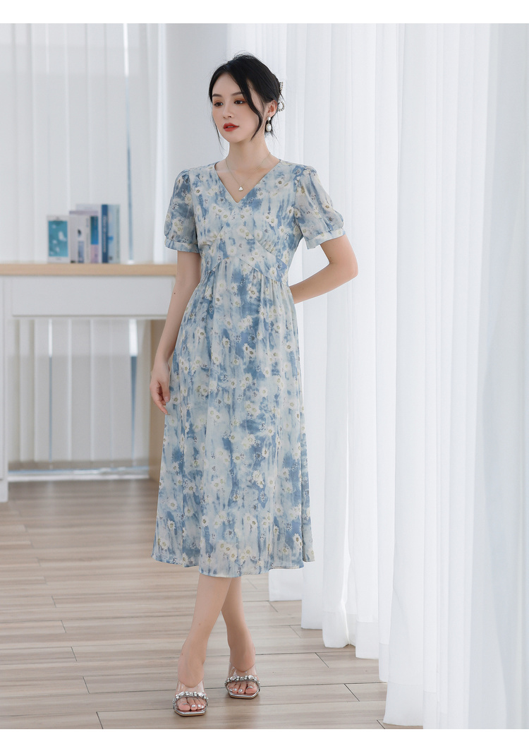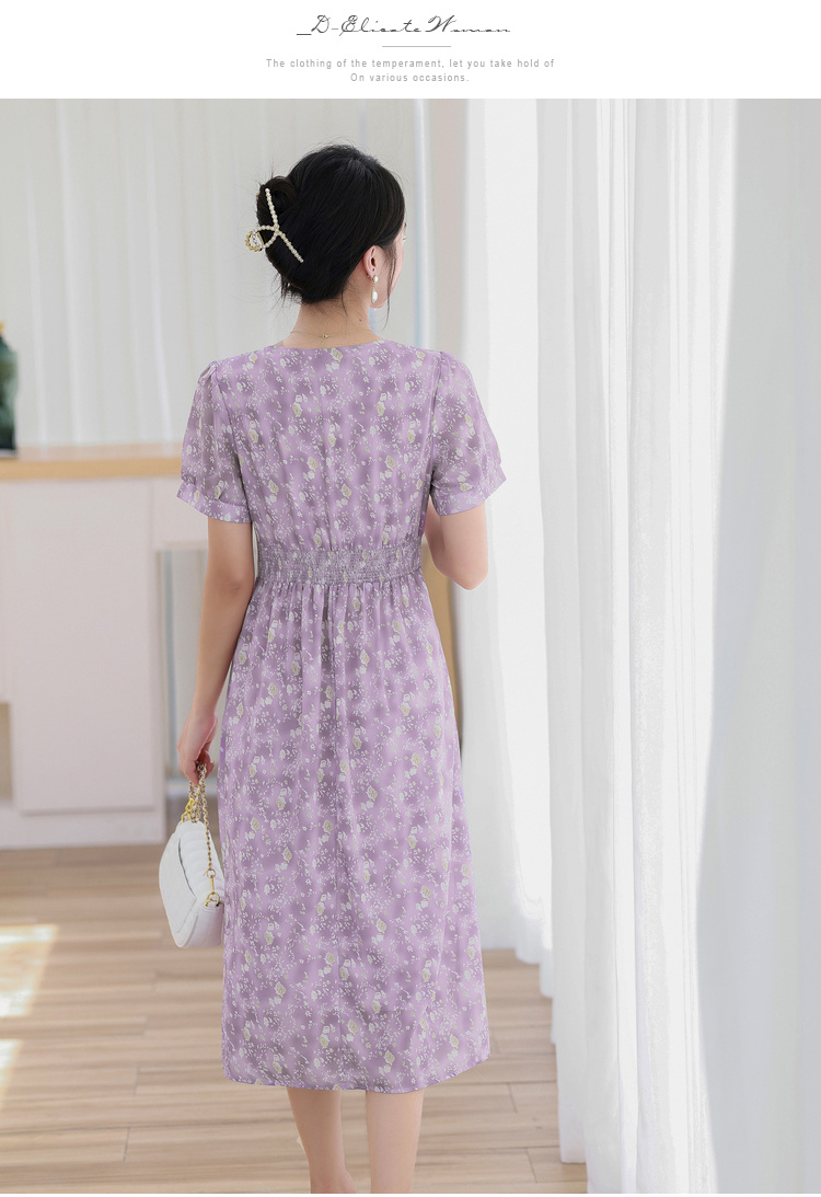 奢姿2025法式V领温柔风连衣裙女夏大码显瘦遮肚子雪纺裙气质长裙9932828184