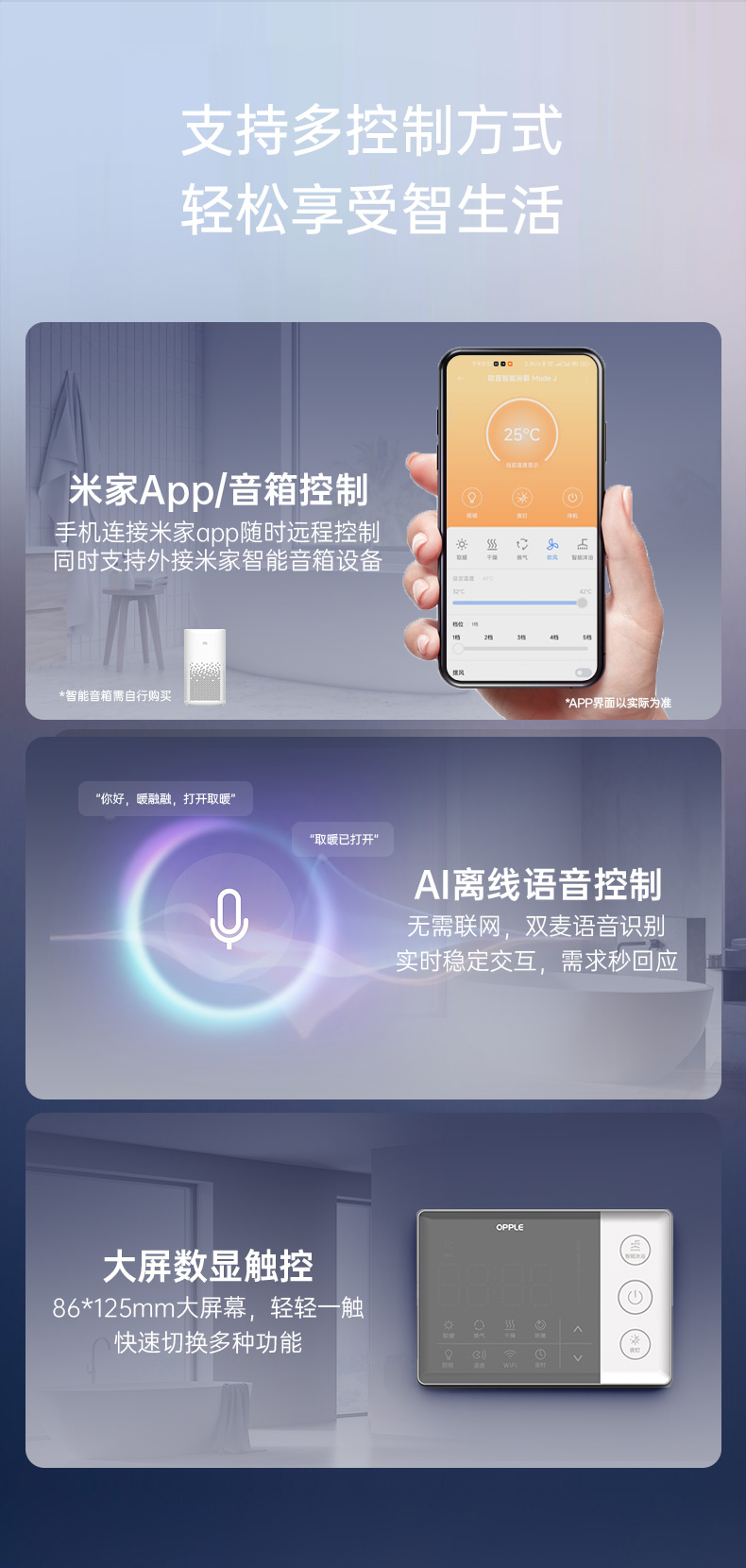 欧普(OPPLE)风暖浴霸新美学取暖浴室排气扇一体集成吊顶暖融融浴霸