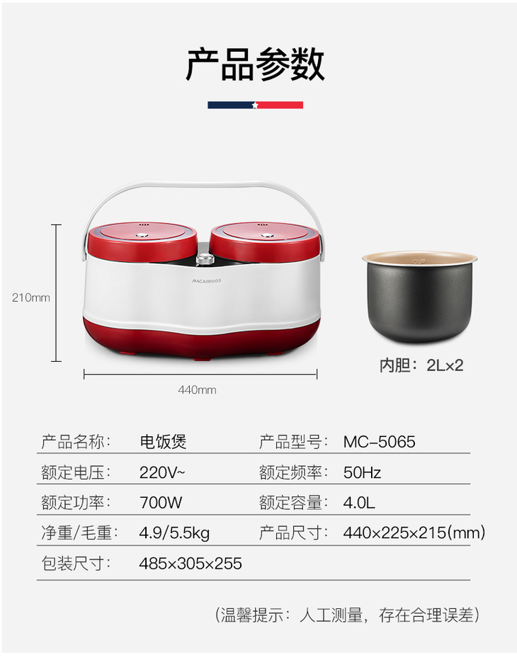 Macaiiroos /迈卡罗 MC-5065双胆电饭煲智能预约家用多功能电饭锅