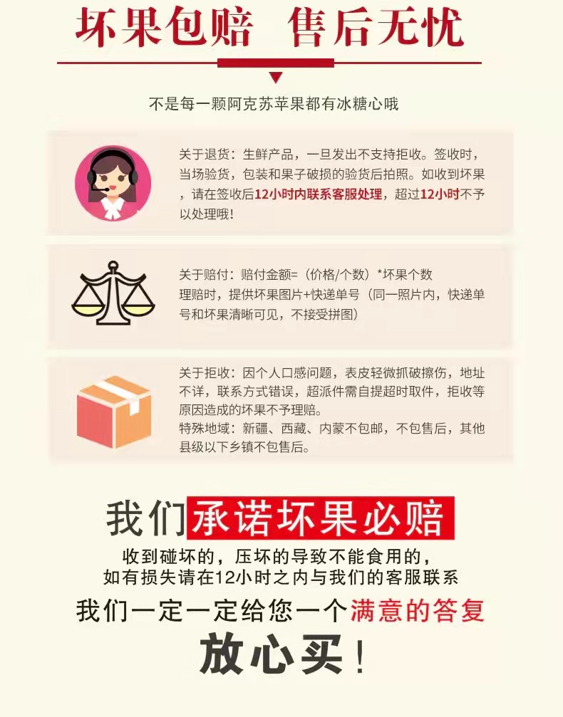【售后】:将面单与坏果放一起拍照反馈,按比例赔付