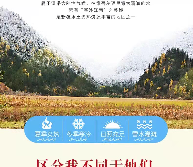 【发货区域】:阿克苏直发顺丰,特殊区域:内蒙古自治区,福建省,广西壮族自治区,海南省,吉林省,辽宁省,黑龙江省,云南省+5元,西藏、港澳台不发货,其他地区包邮