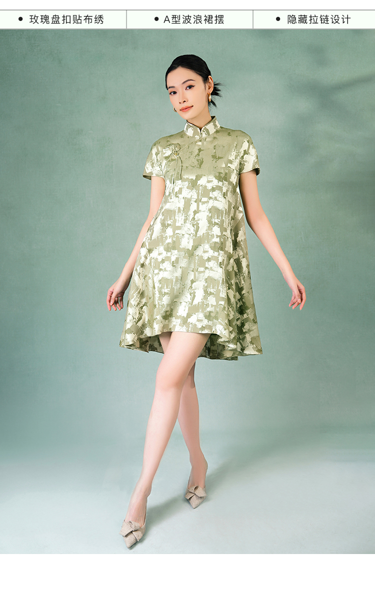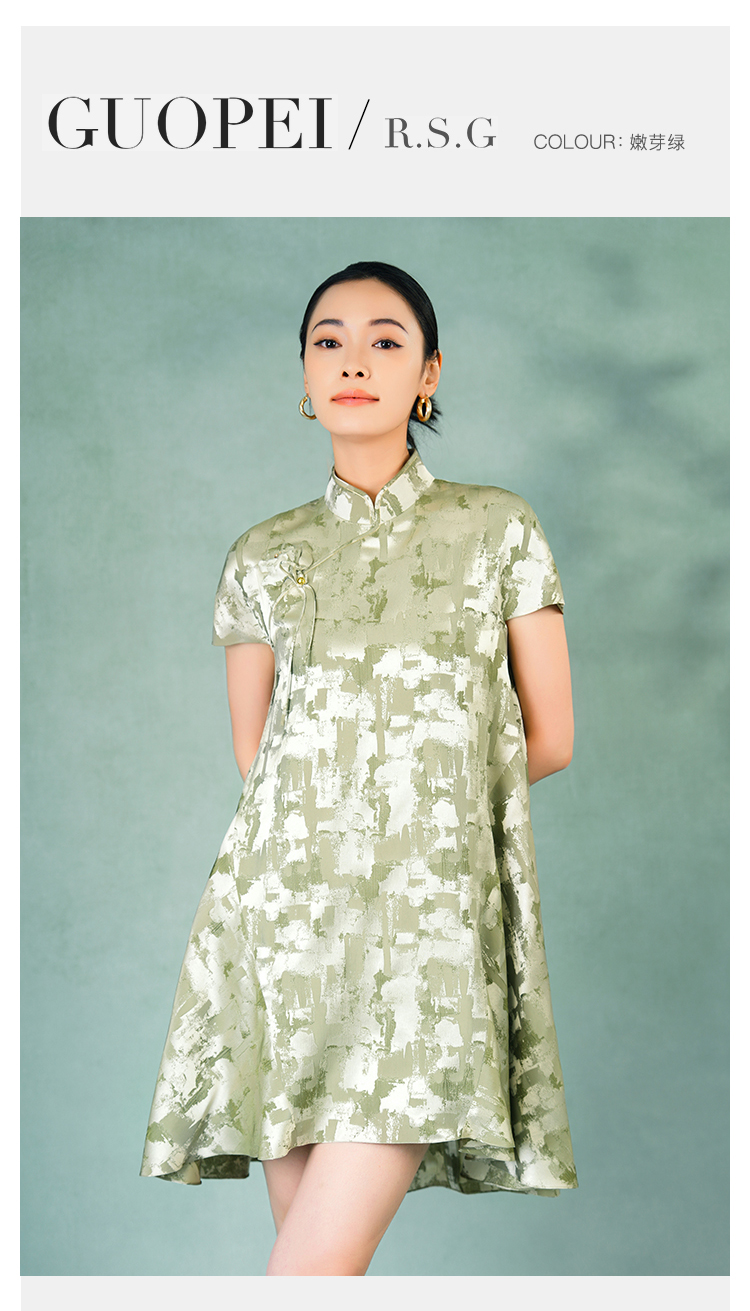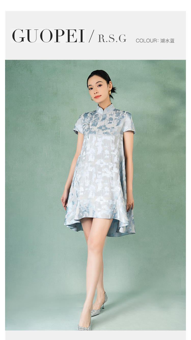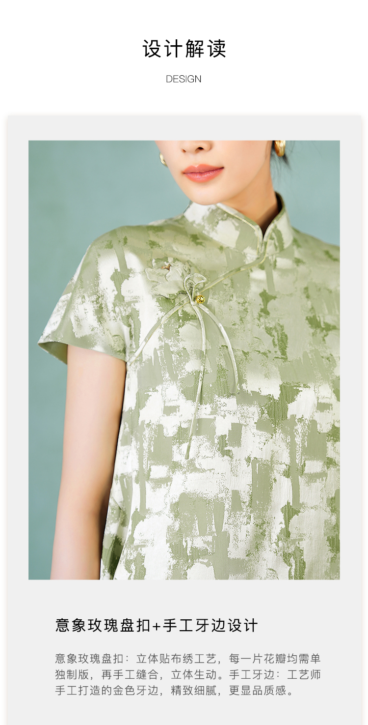 郭培成衣品牌精品系列新中式玫瑰盘扣斜襟改良旗袍