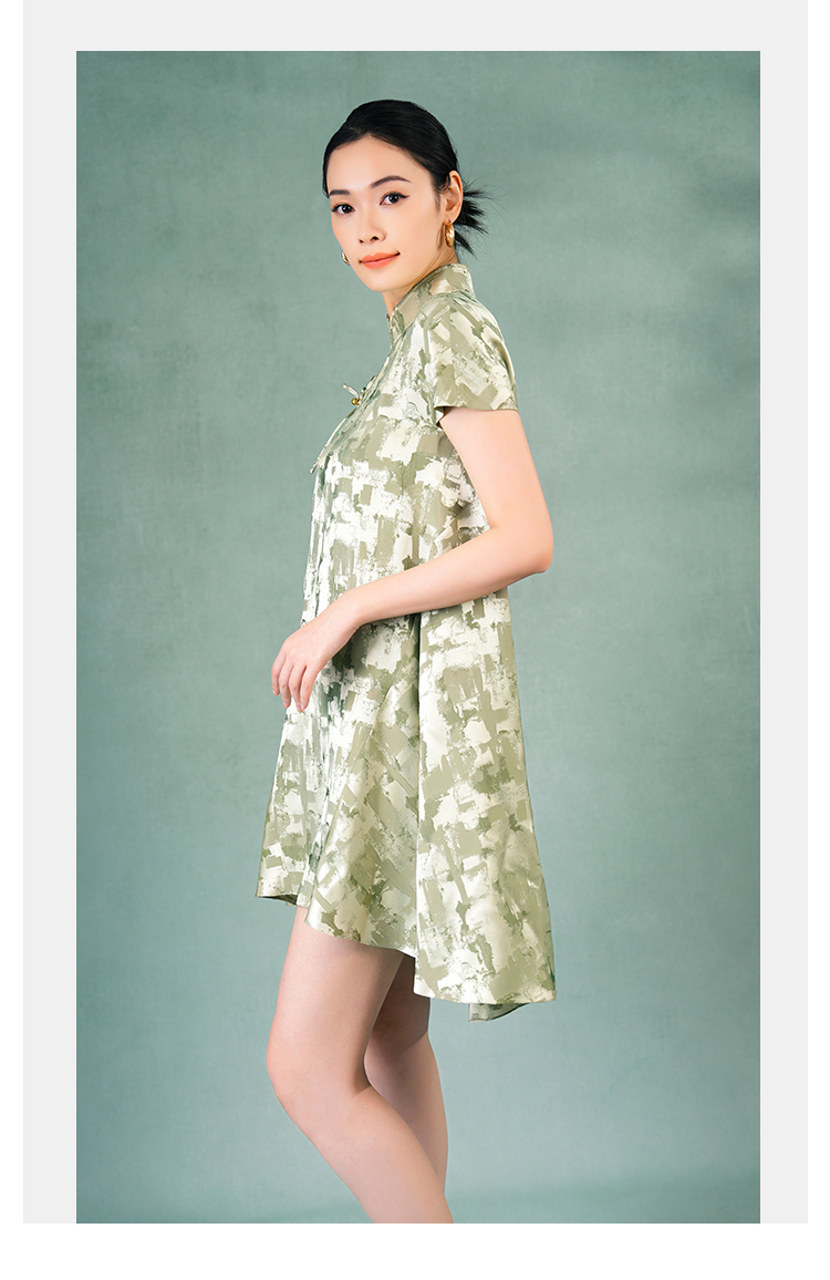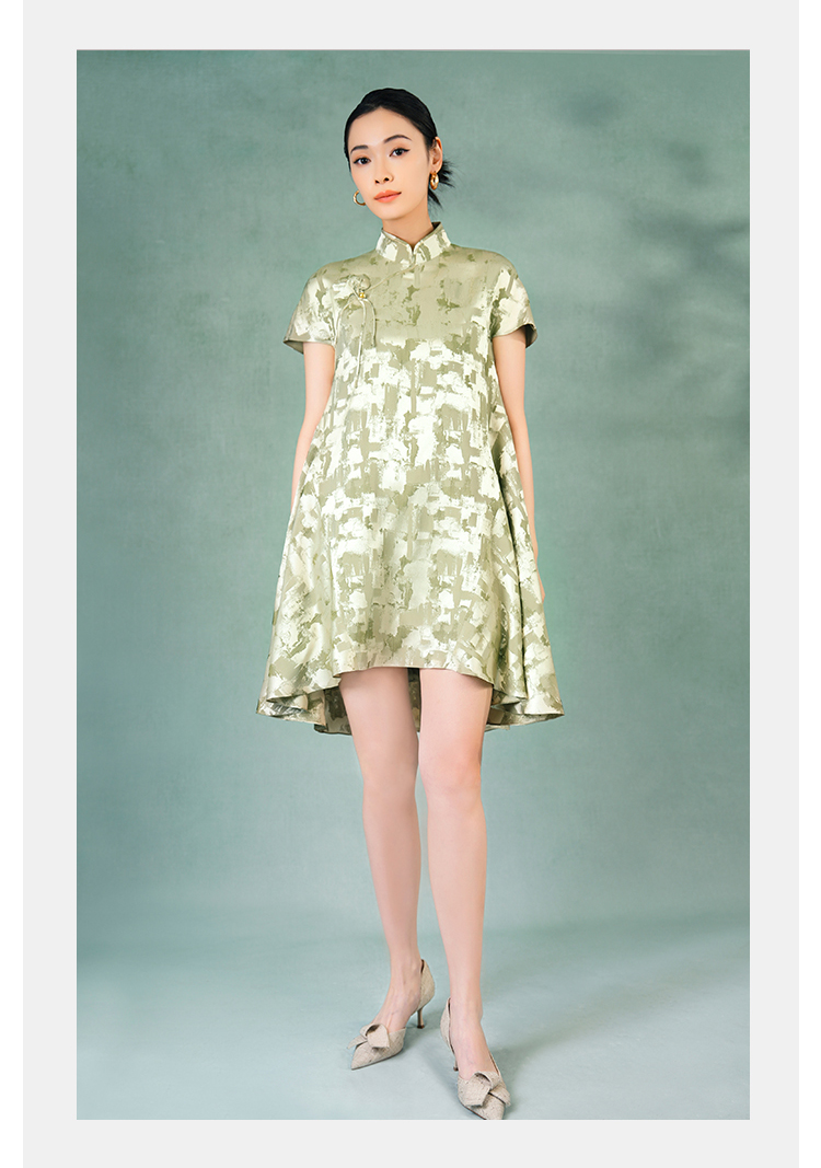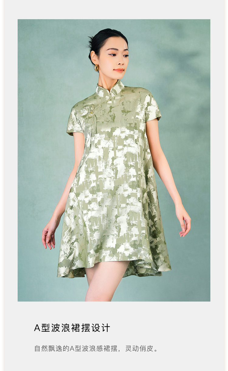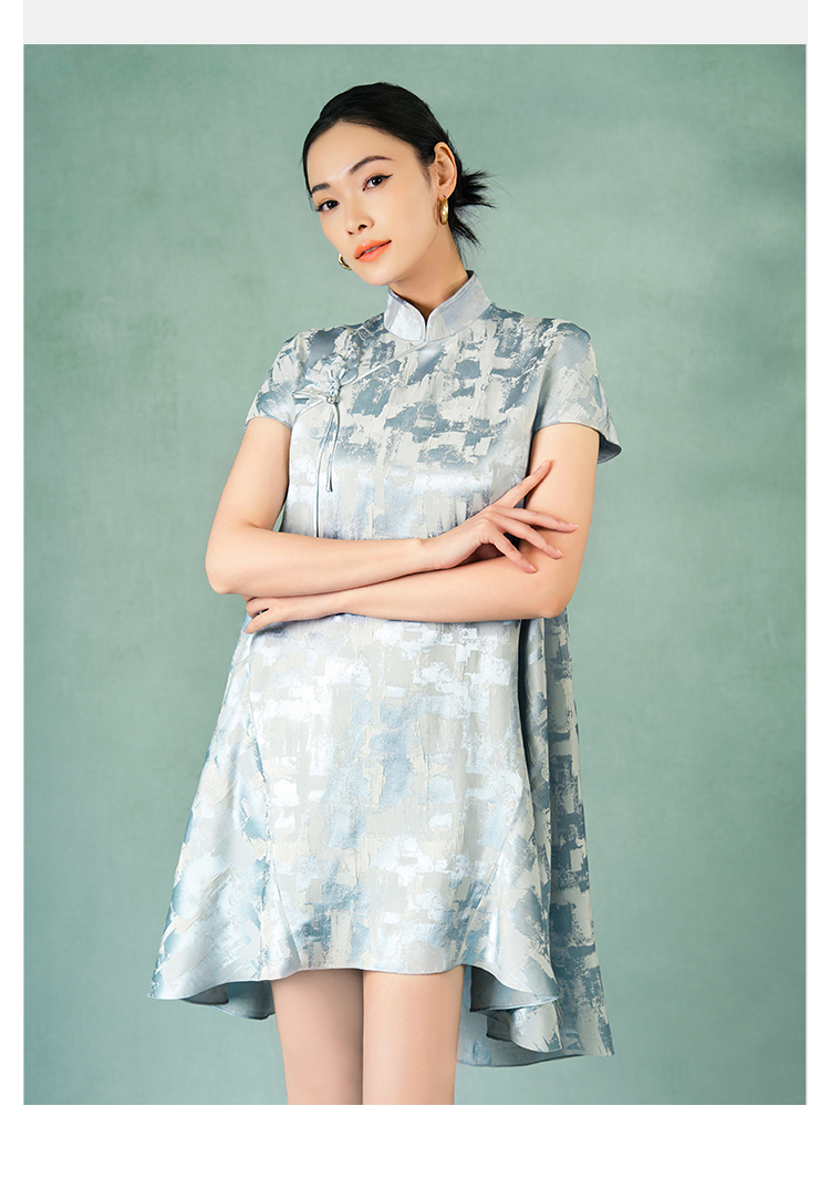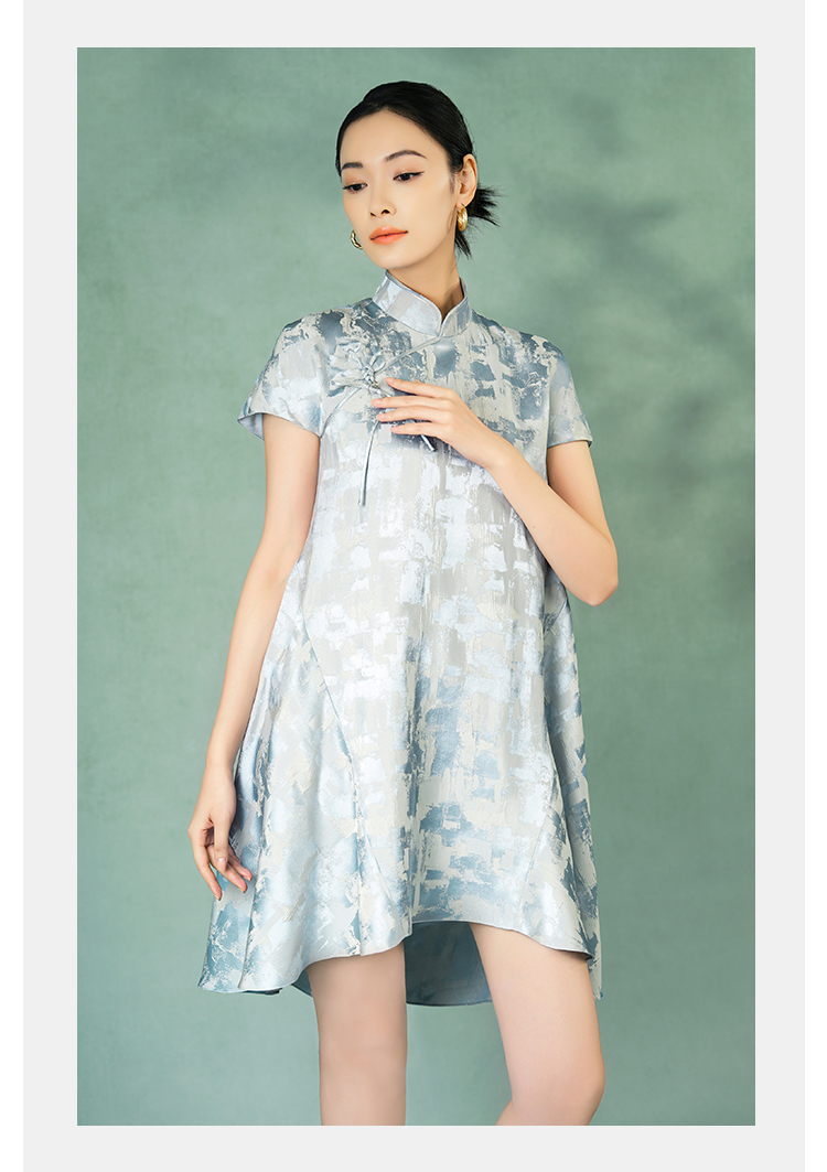 郭培成衣品牌精品系列新中式玫瑰盘扣斜襟改良旗袍