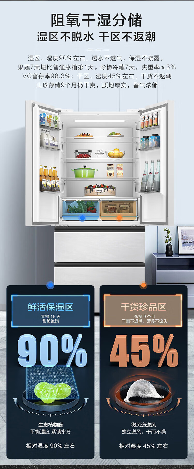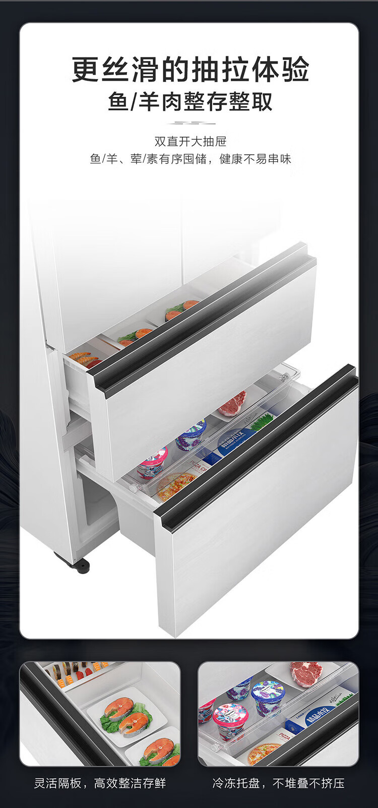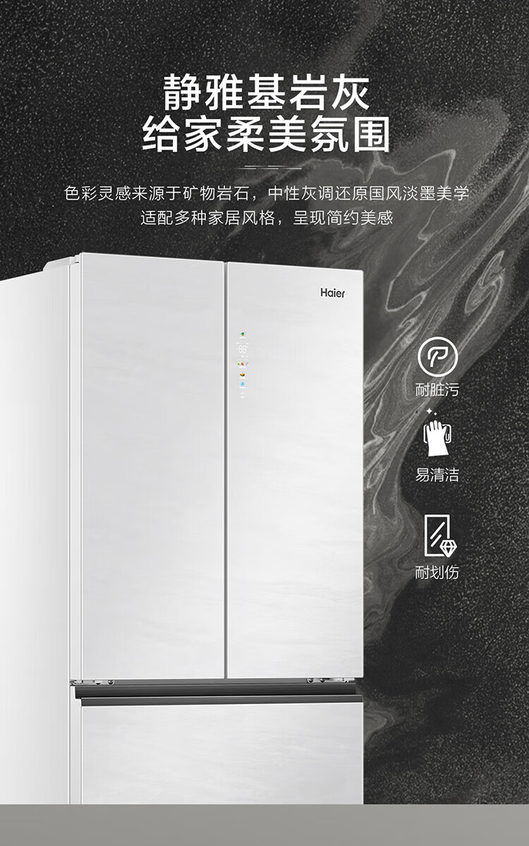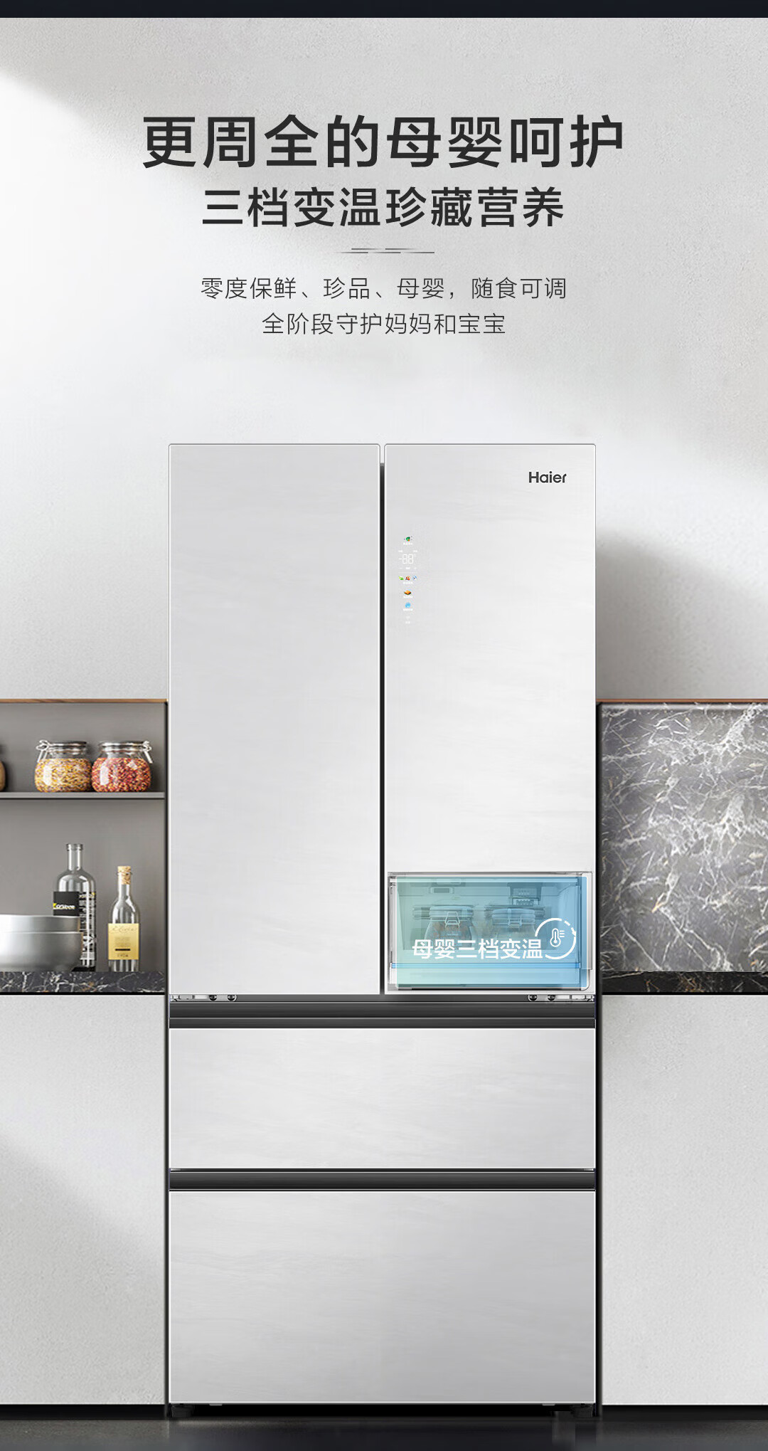 海尔冰箱大容量法式多门家用超薄净味彩晶面板变频节能新一级能效电冰箱BCD-510WGHFD5DGQU1[家电]