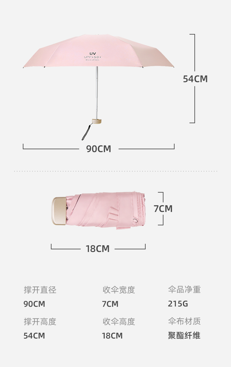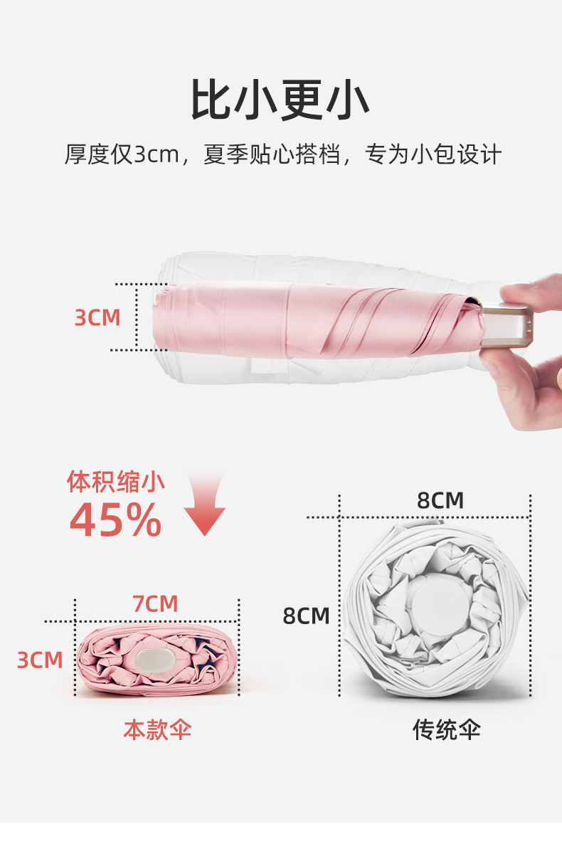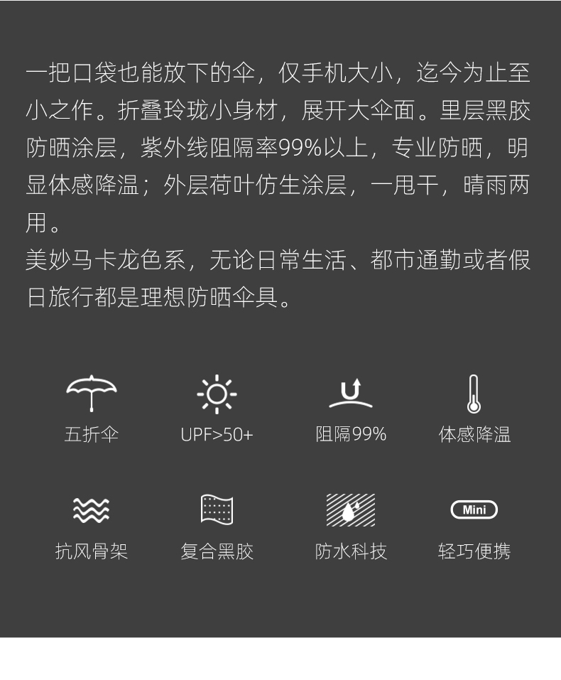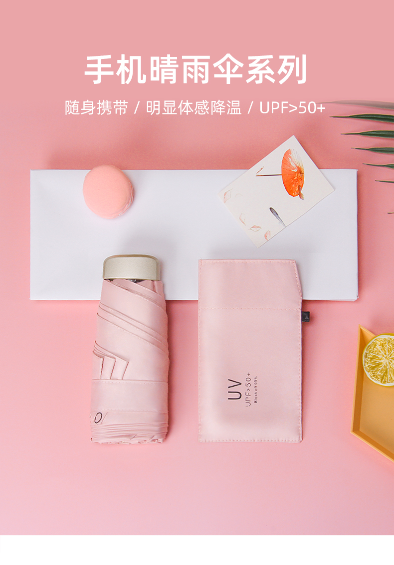 手机大小的防晒晴雨伞 随身携带 轻盈上阵 扁平设计 优雅轻巧