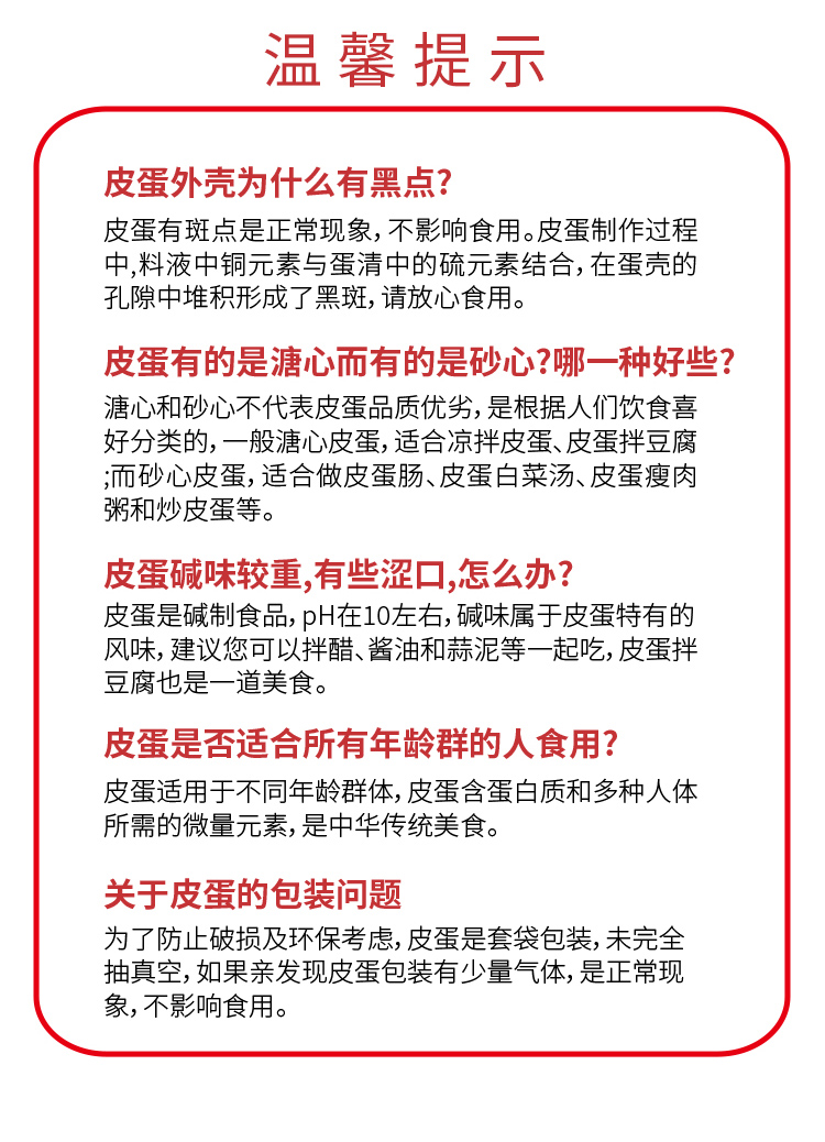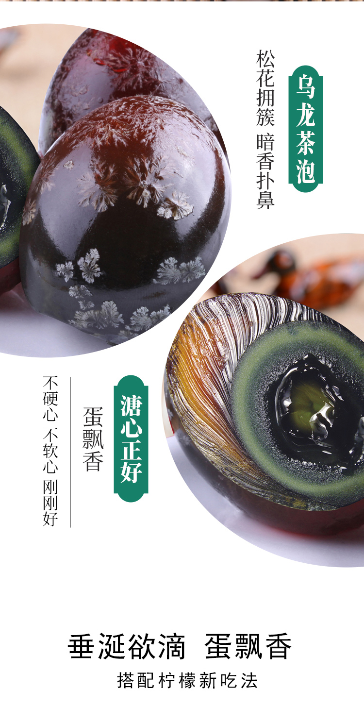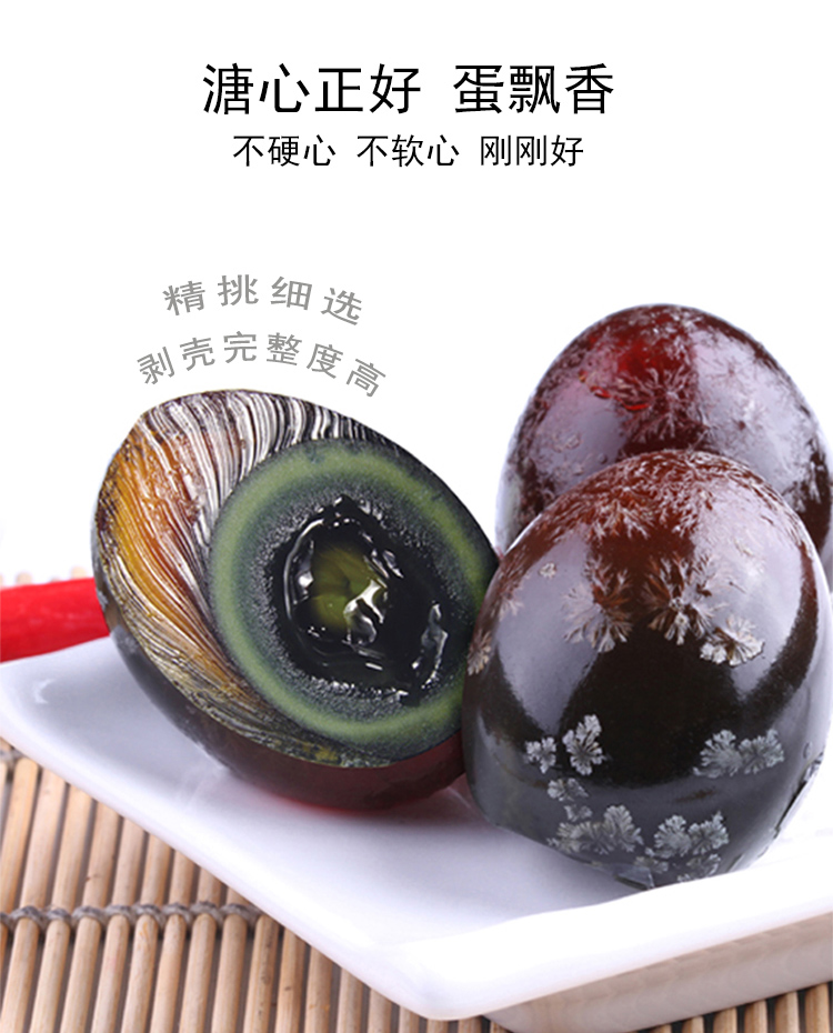 源自好的生态环境,优选海鸭皮蛋,清洁加工,控温腌制;