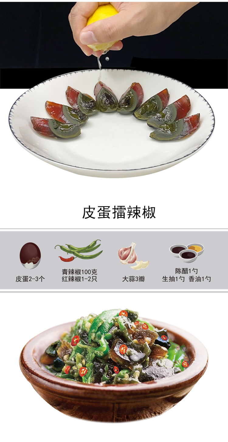 松花纹理自然天成,暗香扑鼻,蛋黄醇厚留香,蛋白滑嫩爽口;