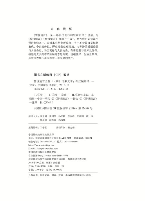 警世通言全鉴(典藏版)(典藏版) (明)冯梦龙 著;孙红颖 解译 中国古典小说、诗词 中国纺织出版社 畅销书籍排行 新华正版