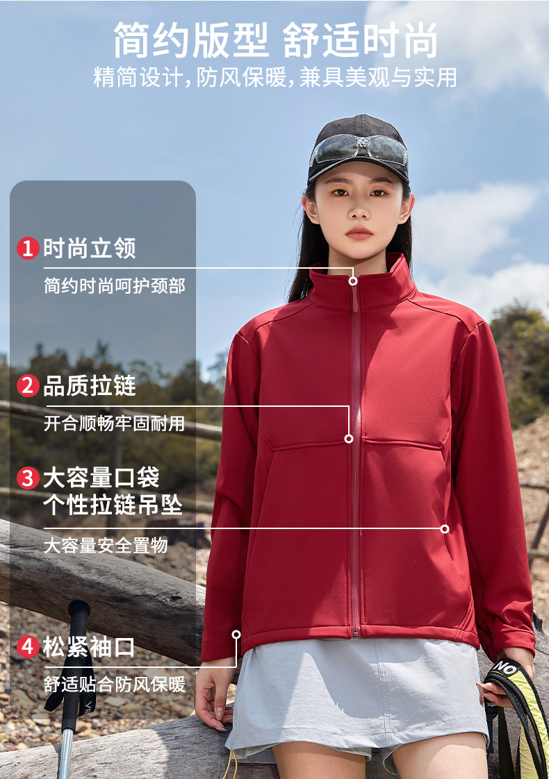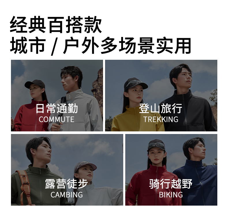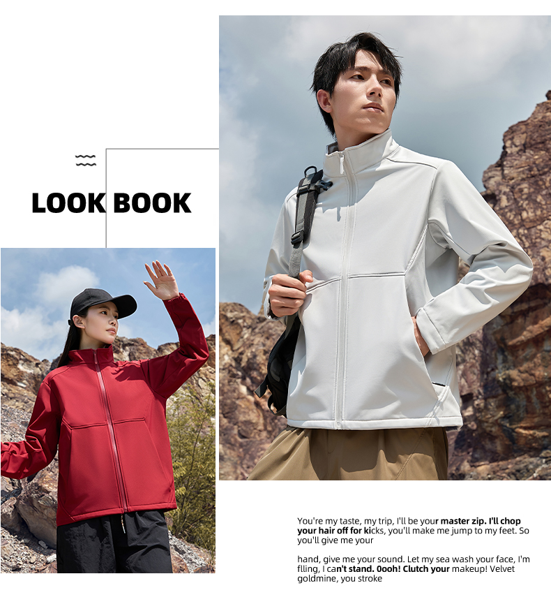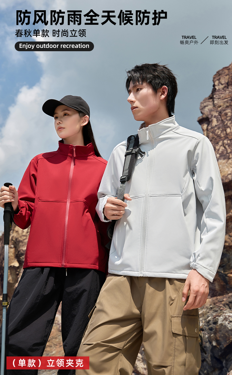 金莱克春秋单款男女同款防污耐磨透气时尚立领外套轻量化立领弹力软壳二级冲锋衣JLK25601