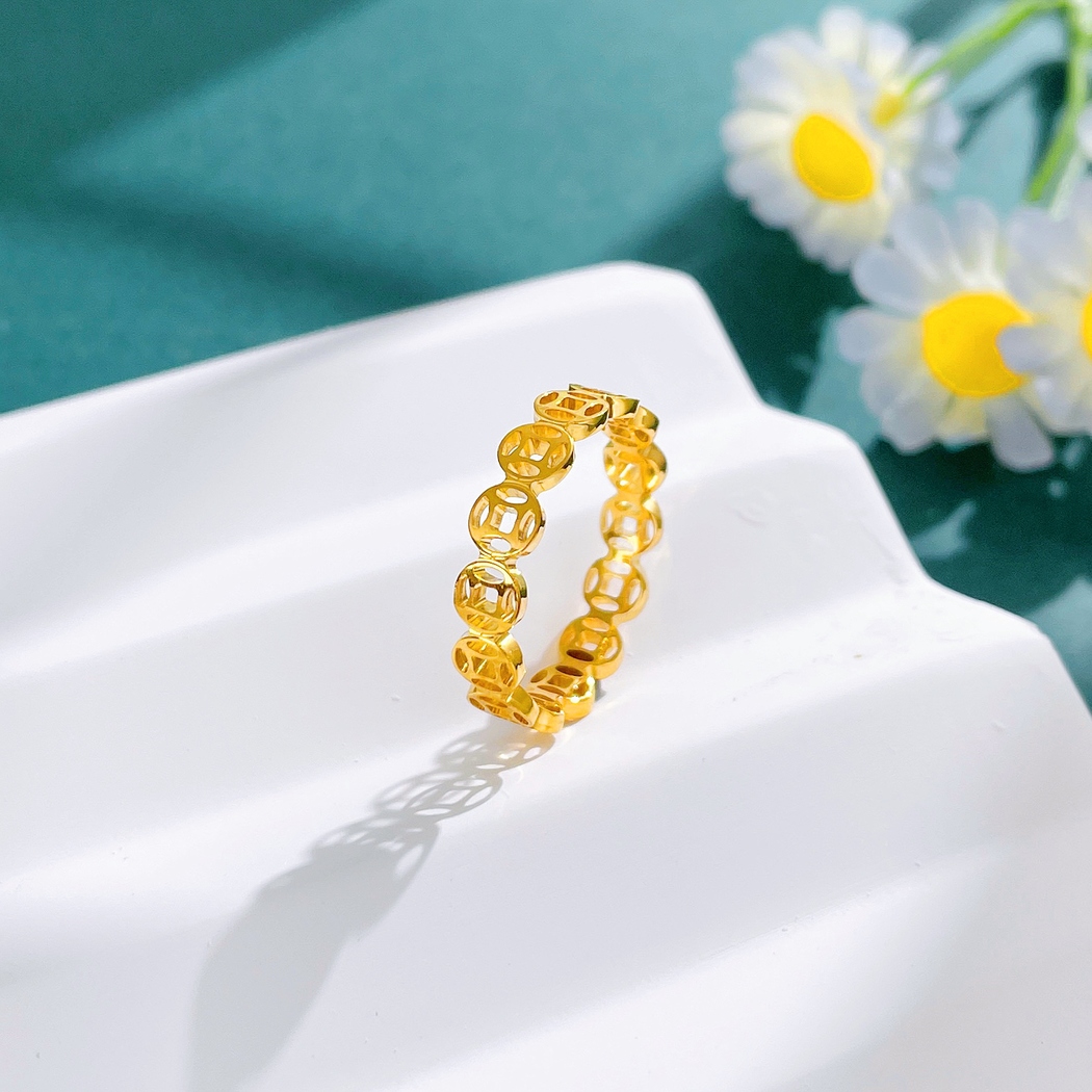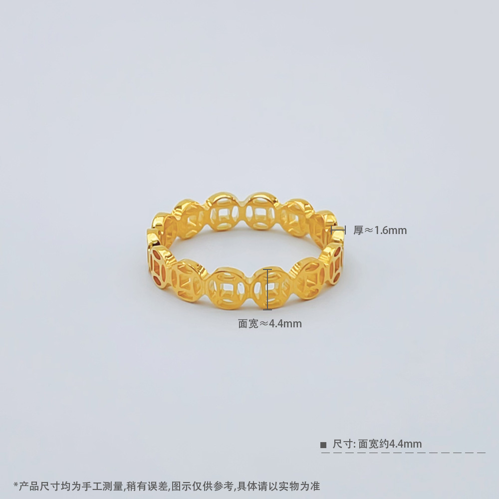 【限时克减150元】足金999.9 #复古风 【精品】镂空招财铜钱造型金币镜面金固口圈戒女戒(AIJZ00143)(预售产品下单后不退款不退货不换货不补差价