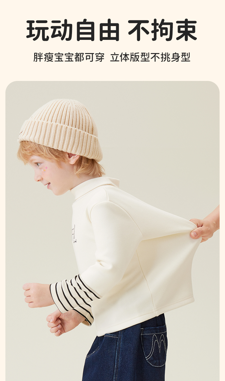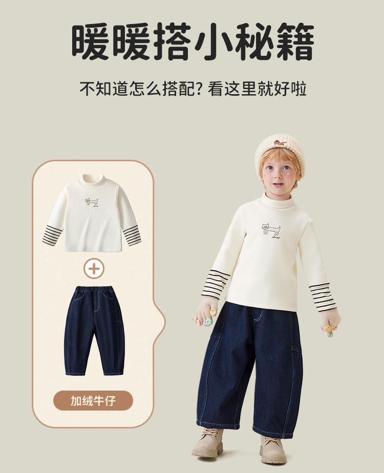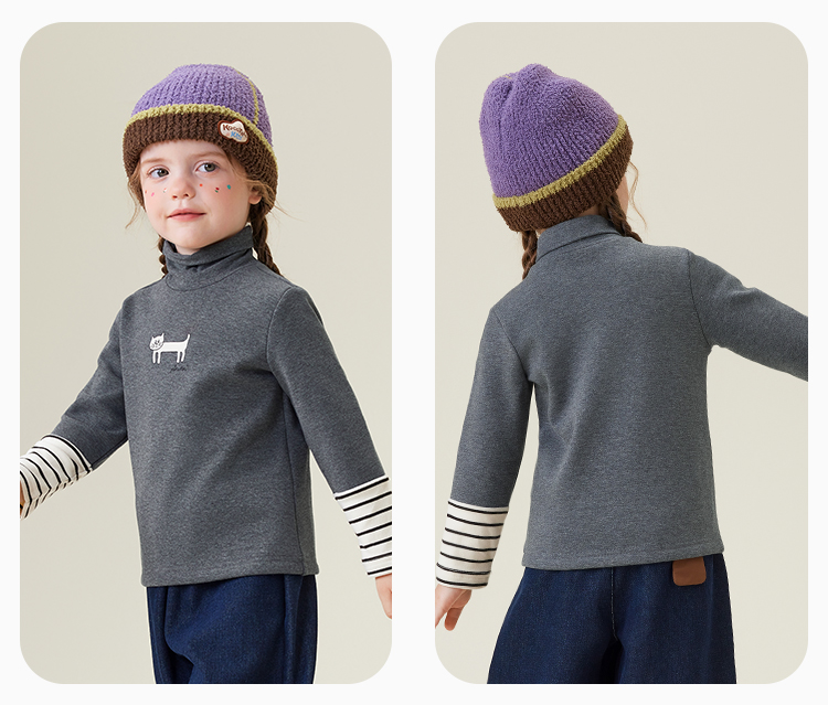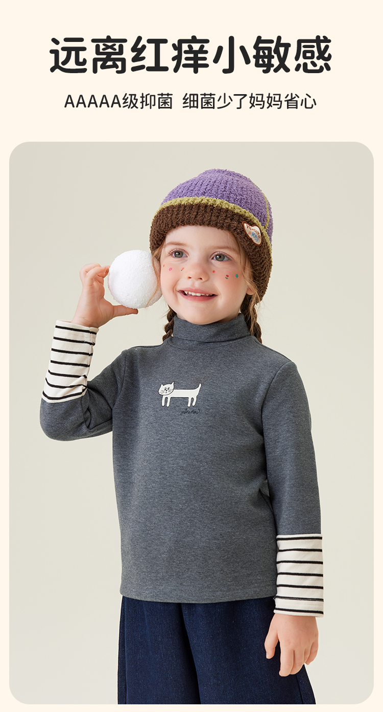 【加绒】【90-140】【 MQDmini】男女童冬款加绒打底衫长袖T恤