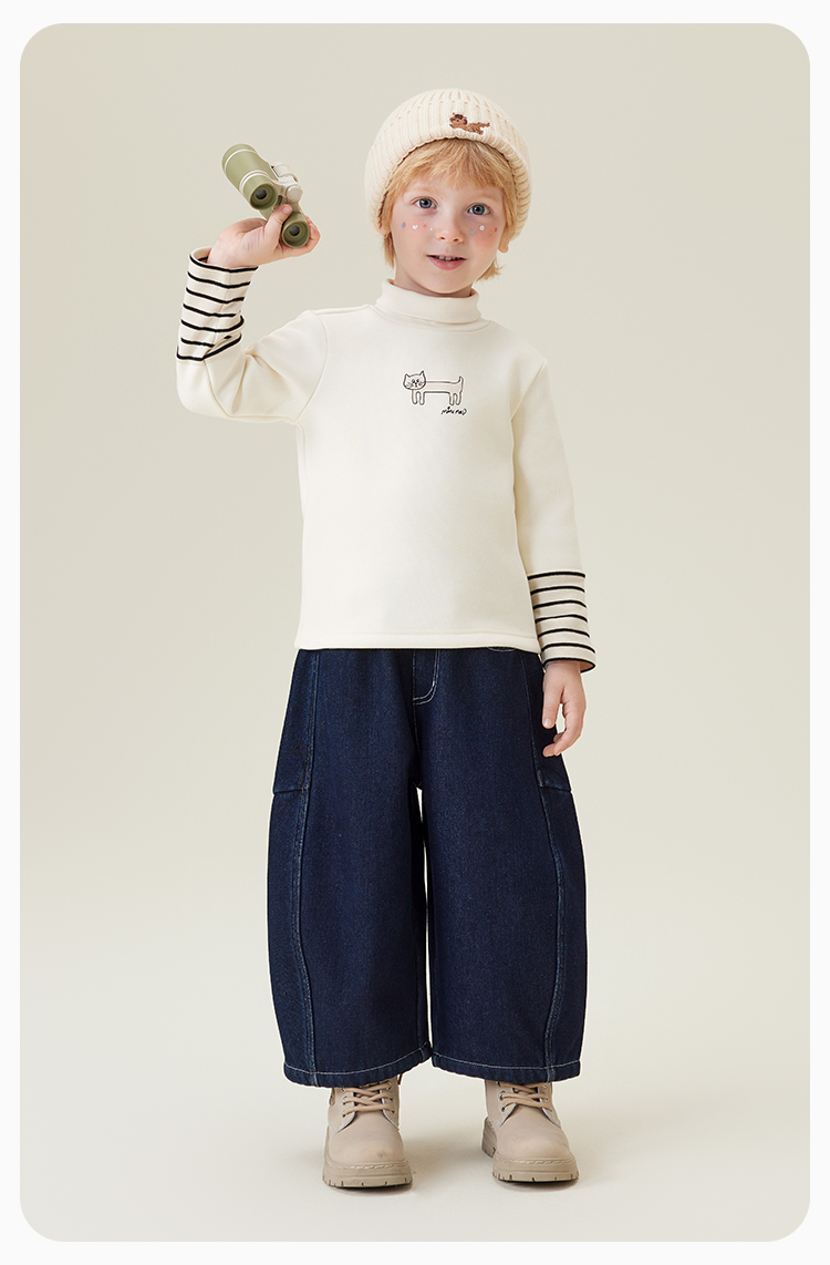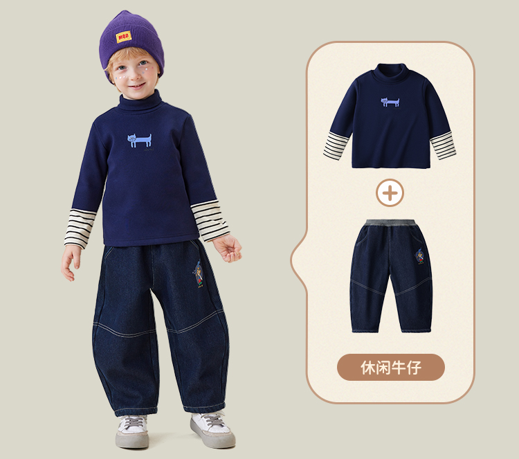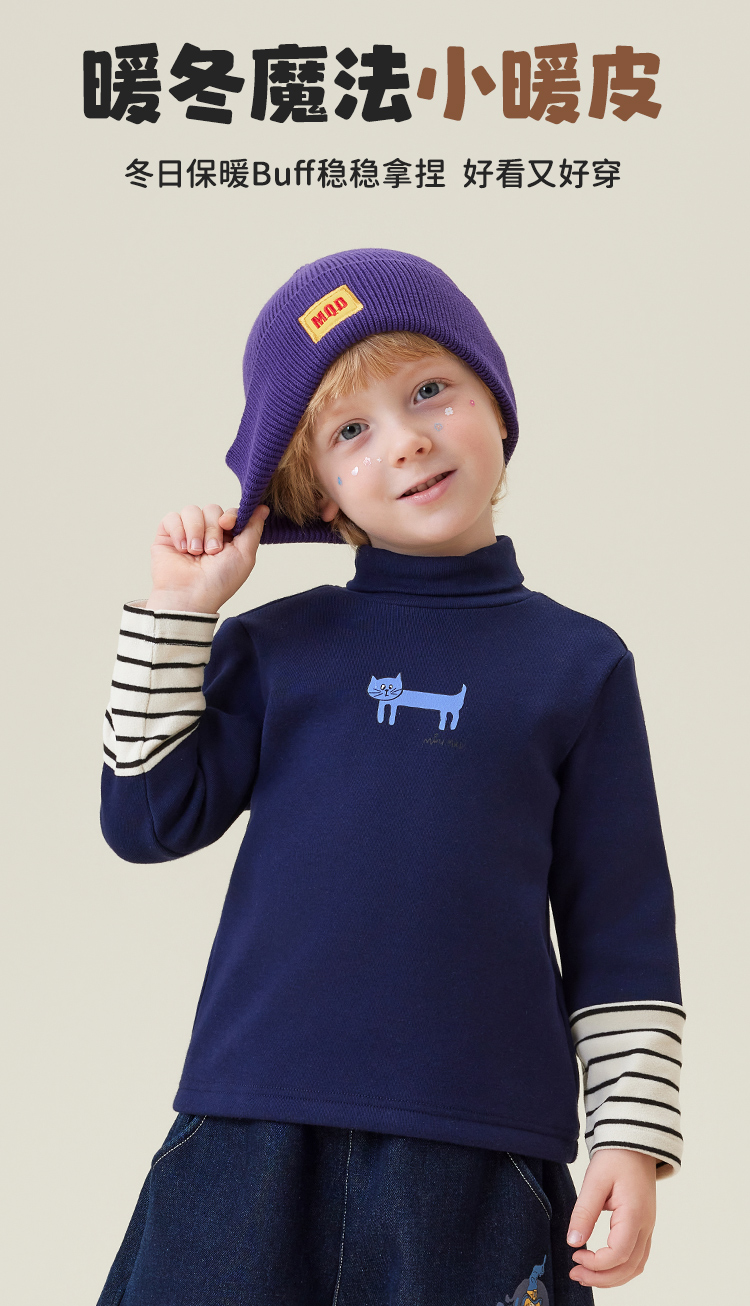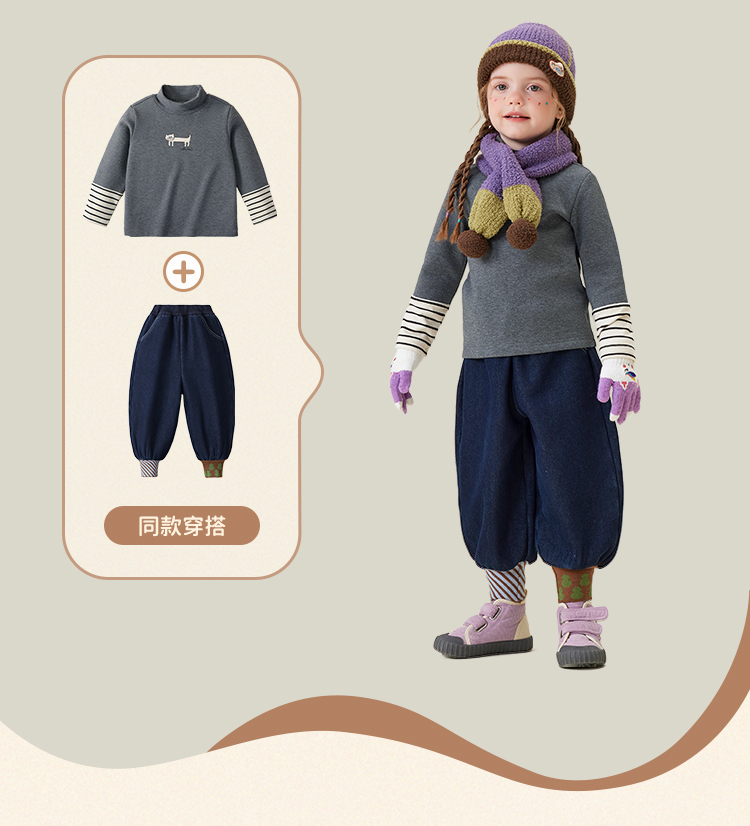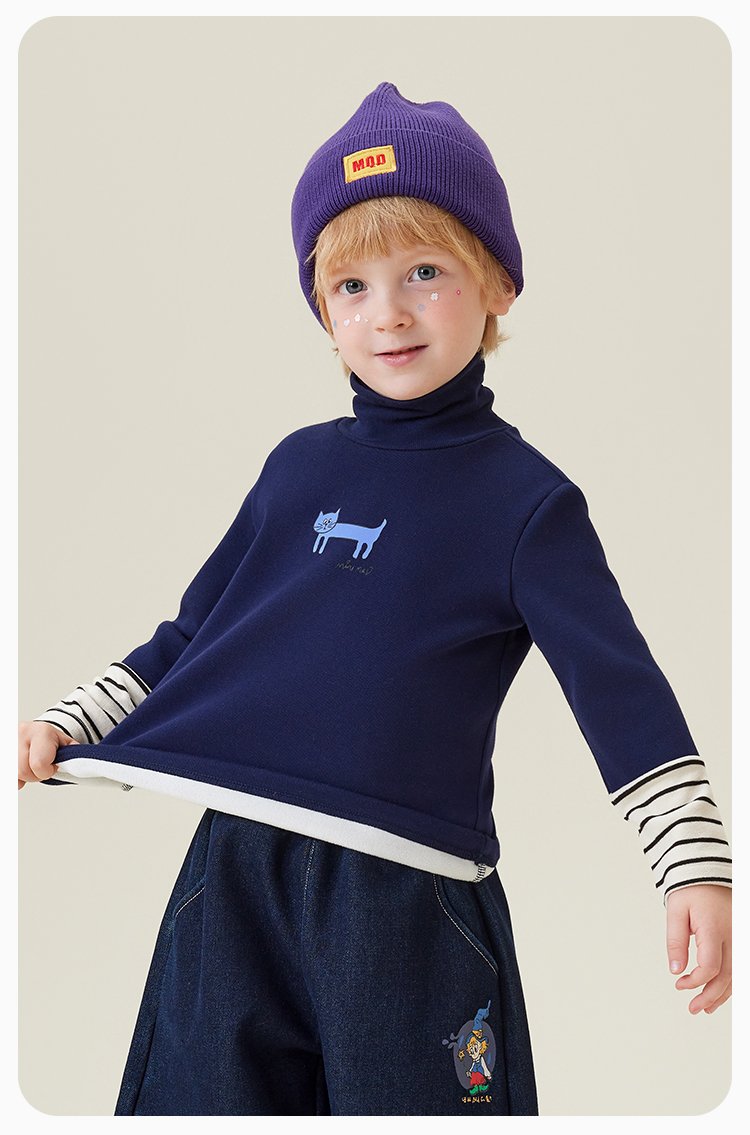【加绒】【90-140】【 MQDmini】男女童冬款加绒打底衫长袖T恤