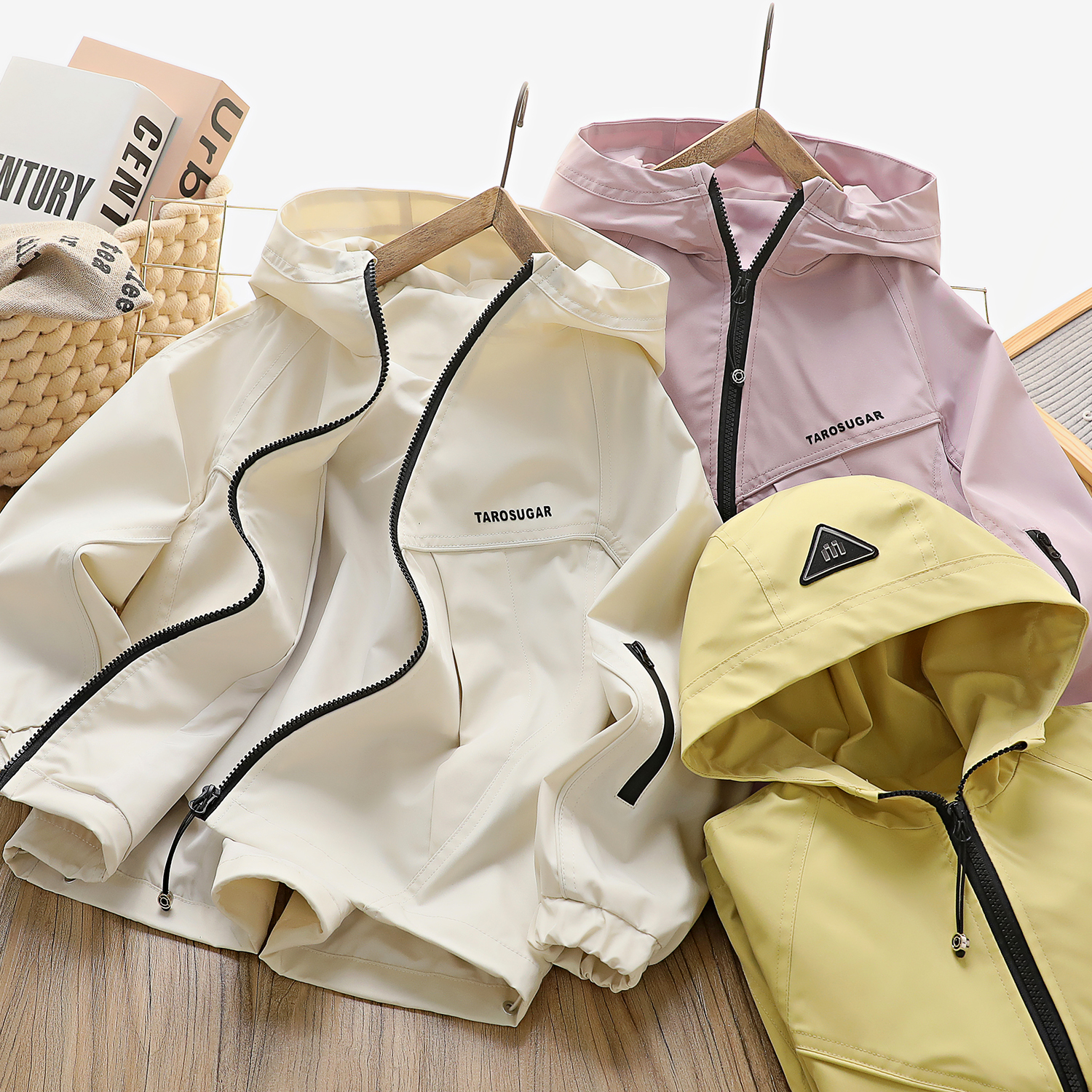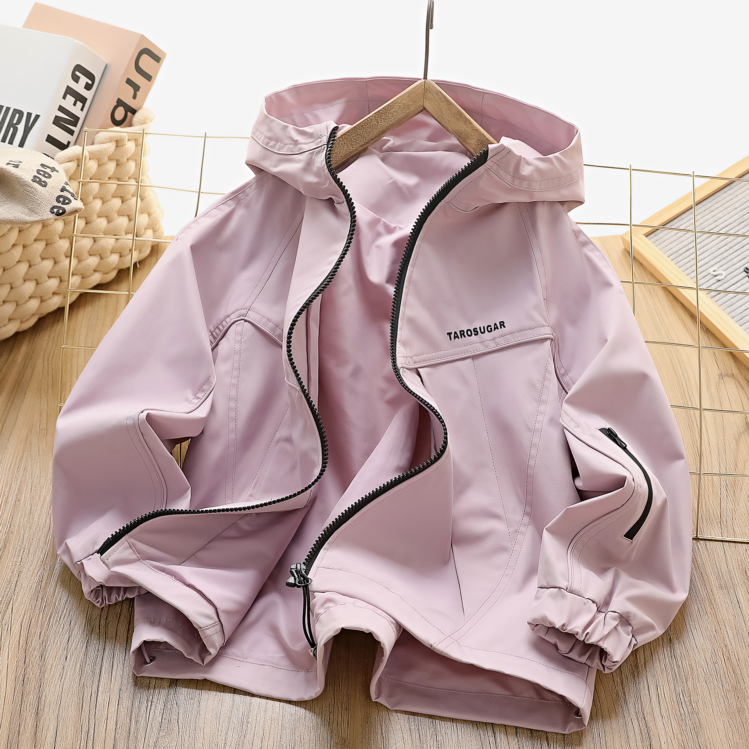 自营(香芋糖)-2025新款春装防风薄款休闲外套亲子冲锋衣成人儿童纯色连帽