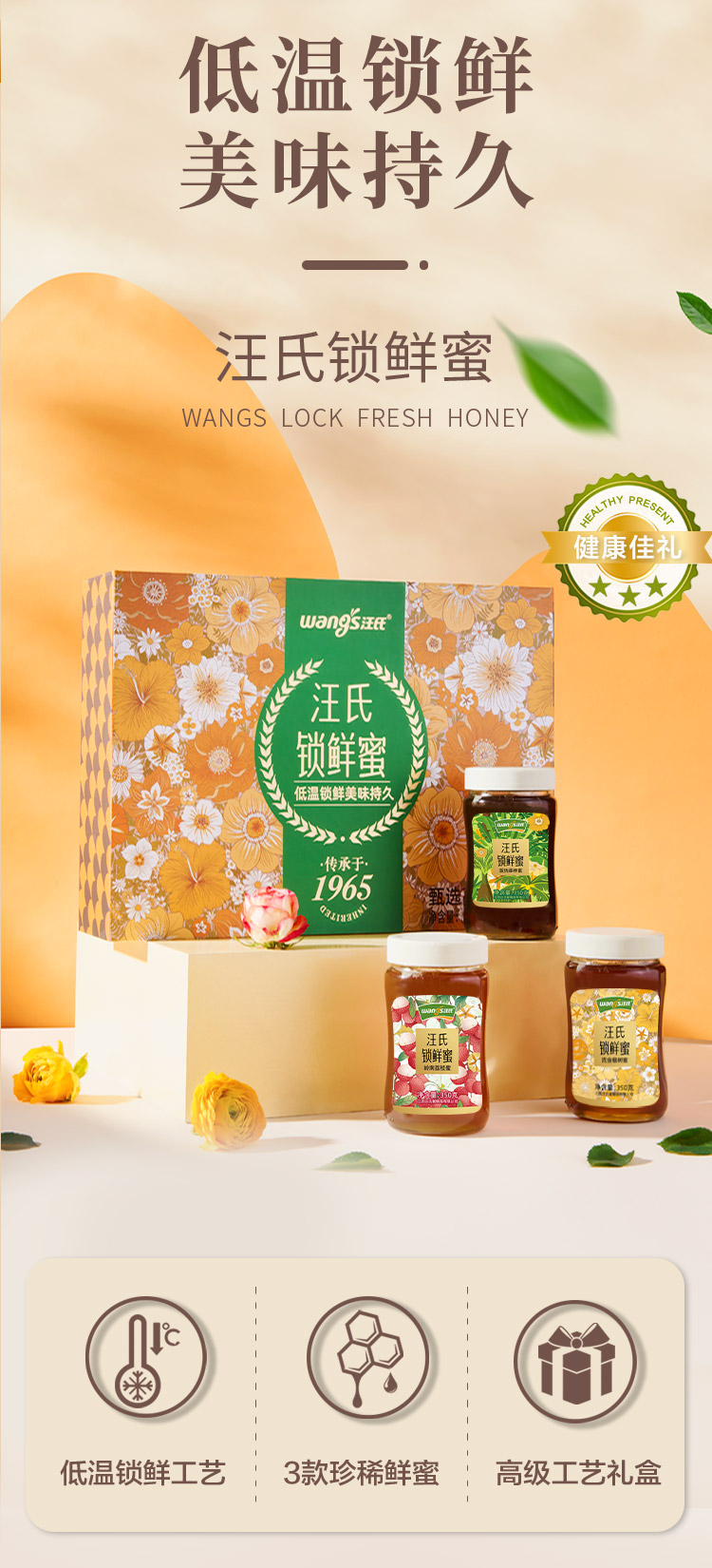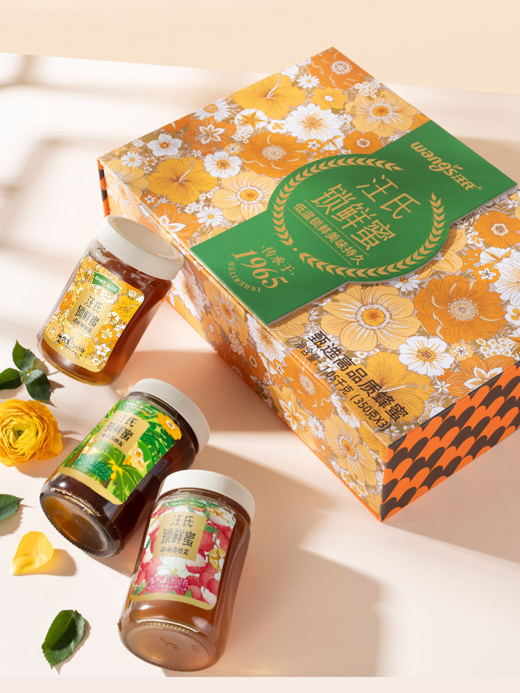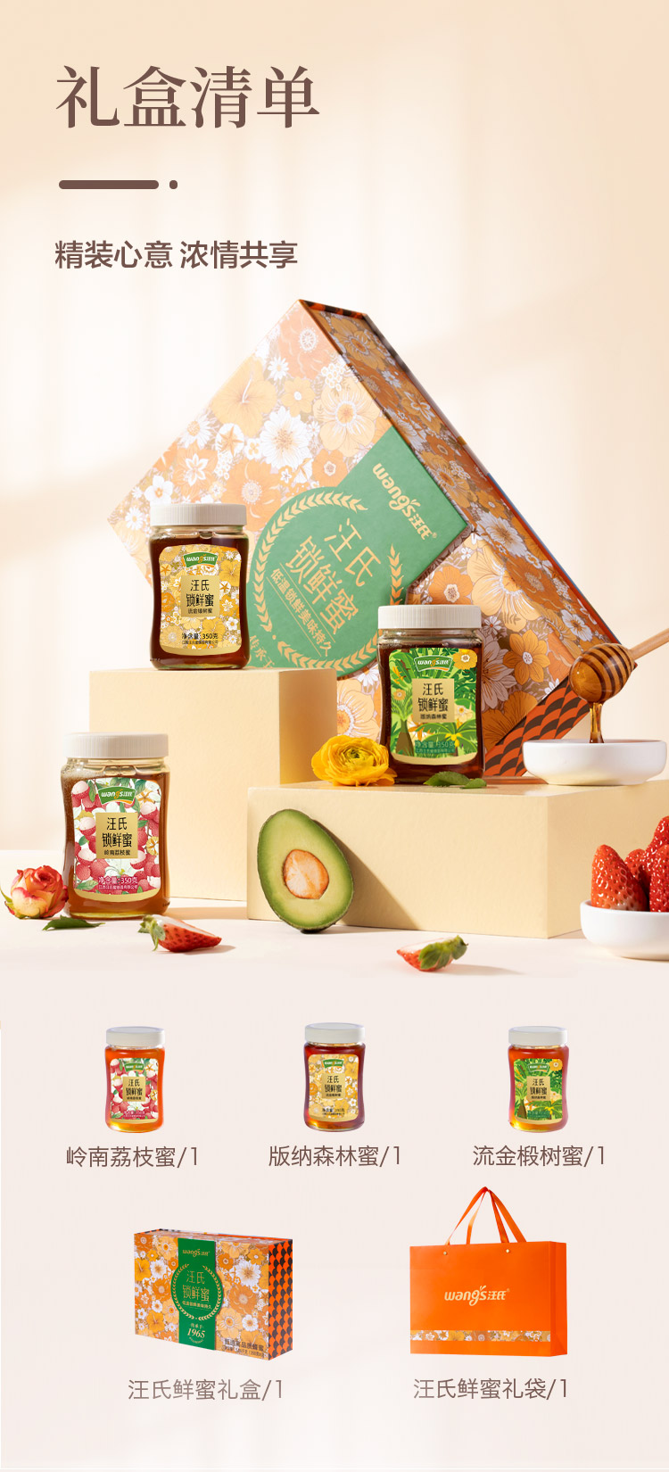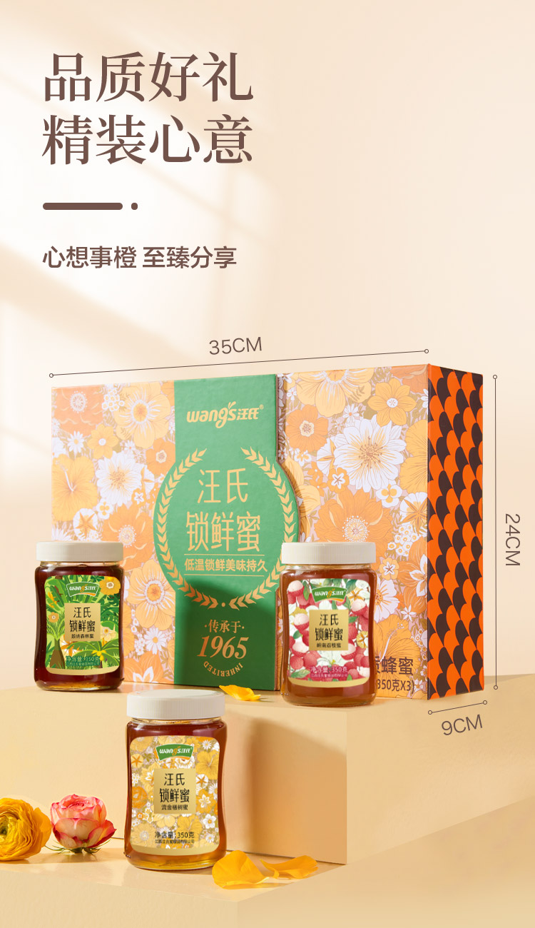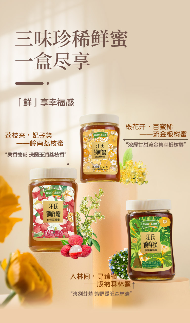 【汪氏】锁鲜蜜礼盒流金椴树蜜350g+岭南荔枝蜜350g+版纳森林蜜350g节日送礼高端