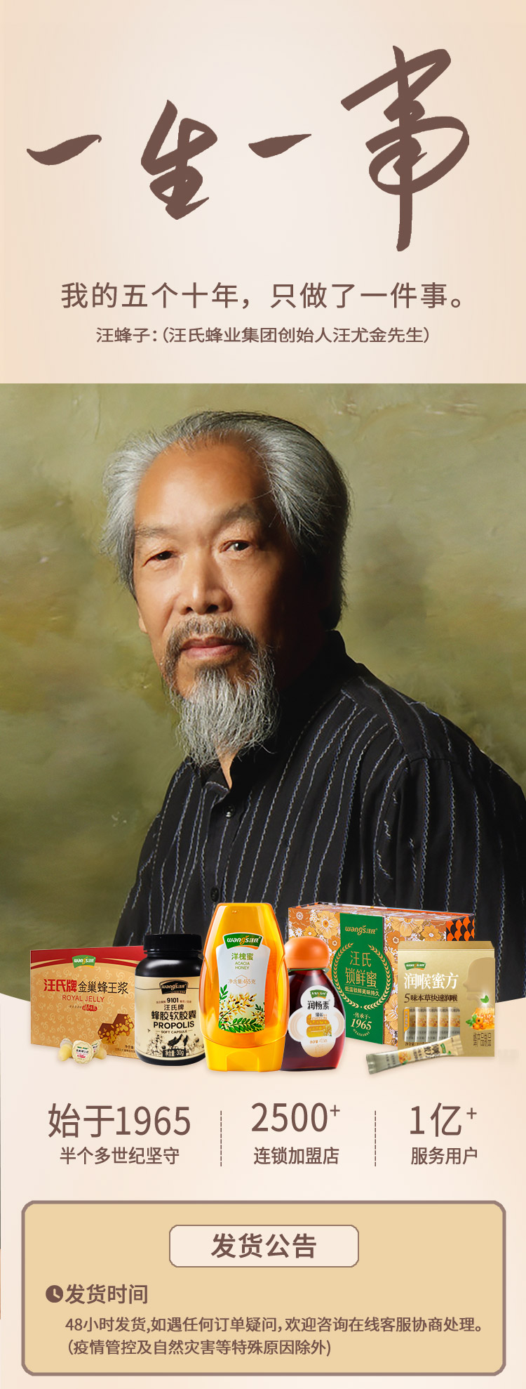 【超值推荐】汪氏甄品蜂王浆蜂皇浆 王浆酸含量≥2.2% 300g/盒(1盒送90g洋槐蜜,2盒送超值福利)