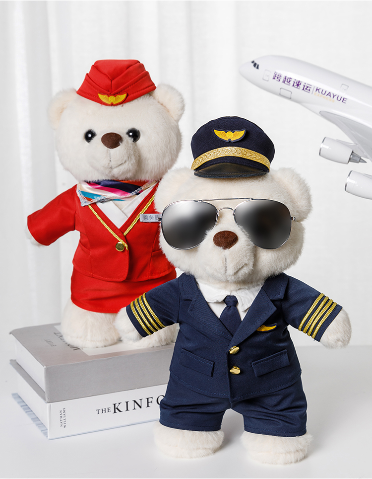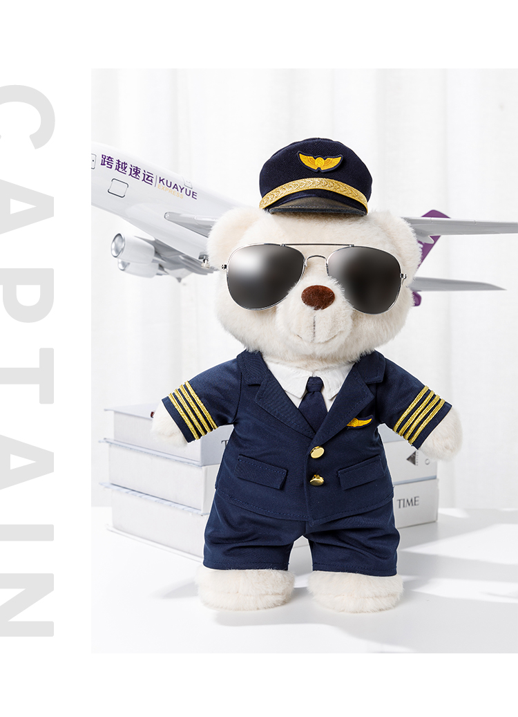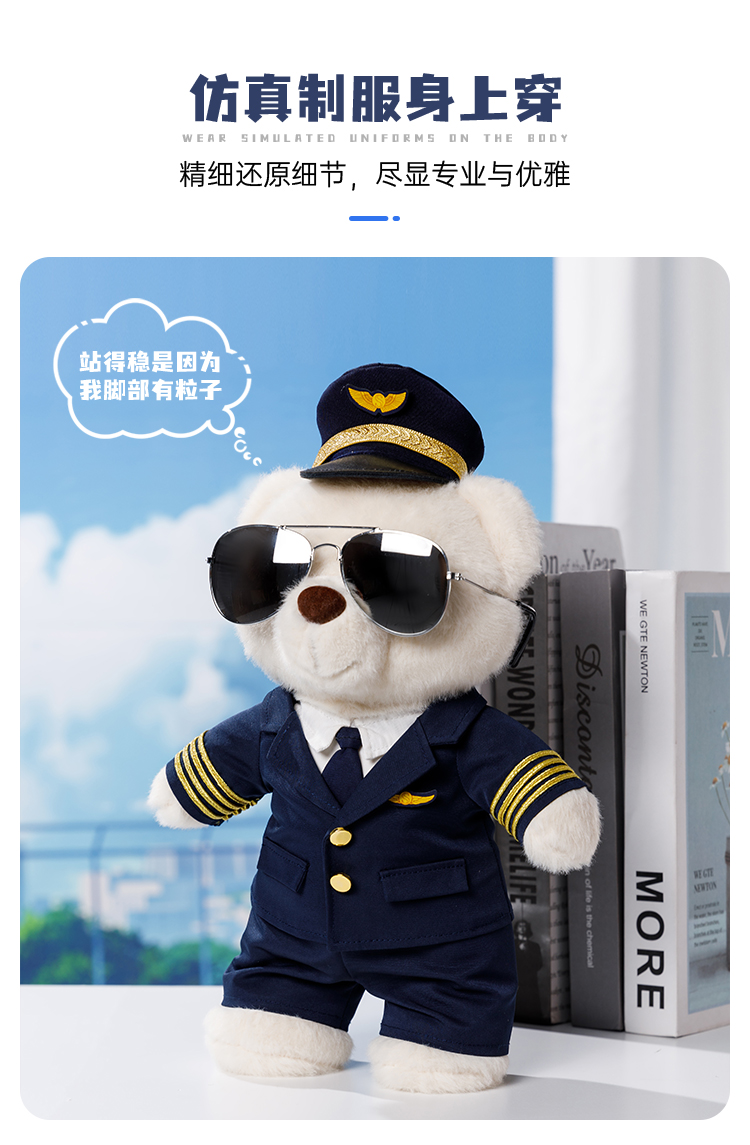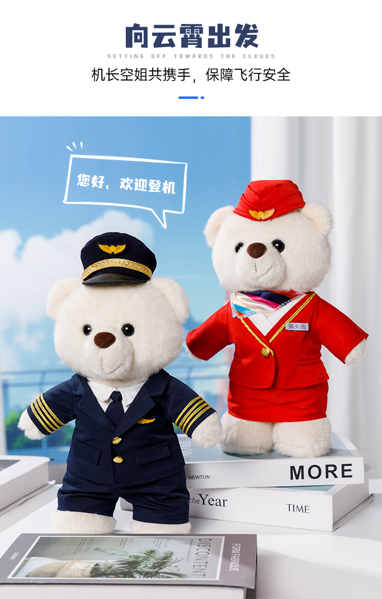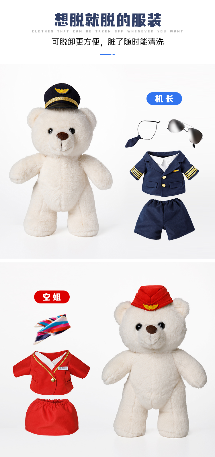 【实付满199送钥匙扣】【机长&空姐站姿熊】可定制创意毛绒职业小熊公仔儿童玩具服装可脱送礼礼物