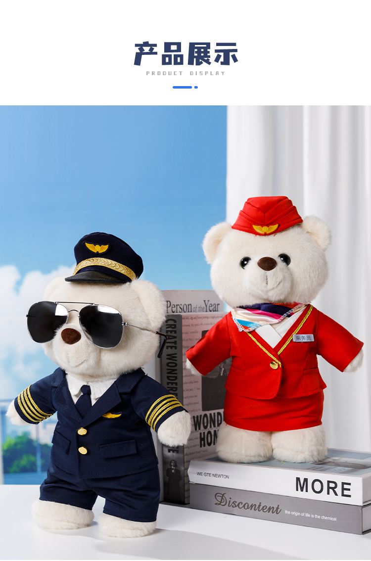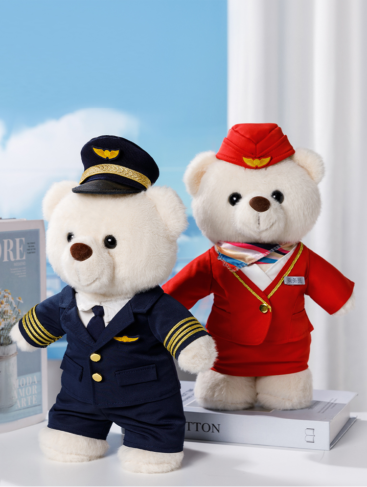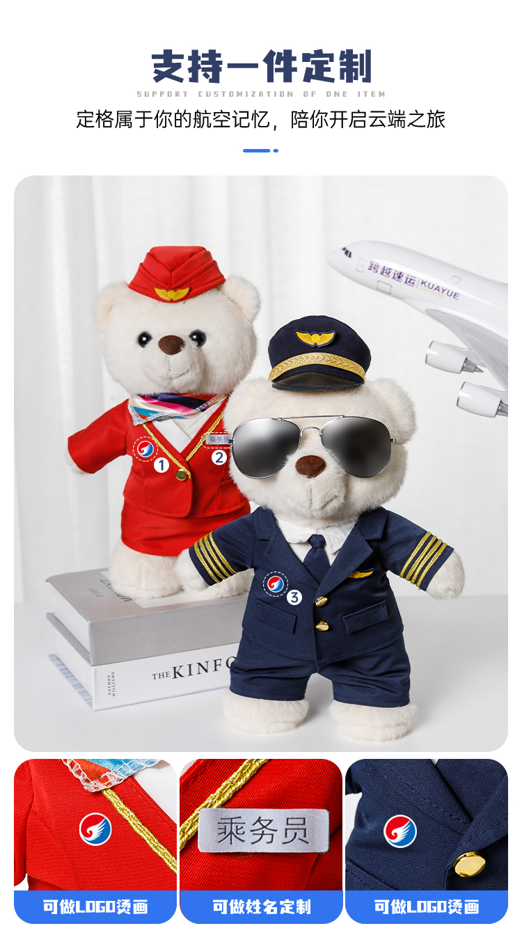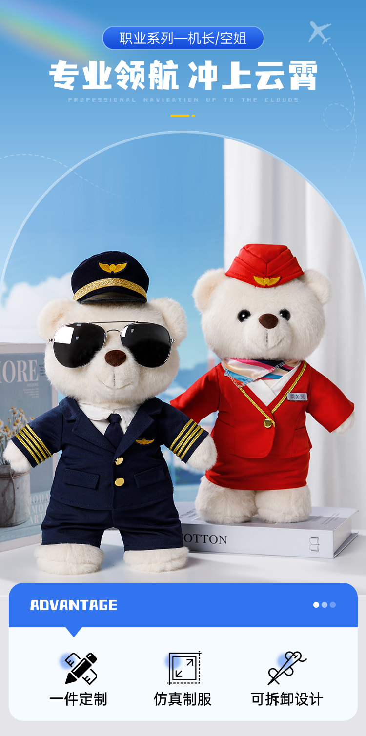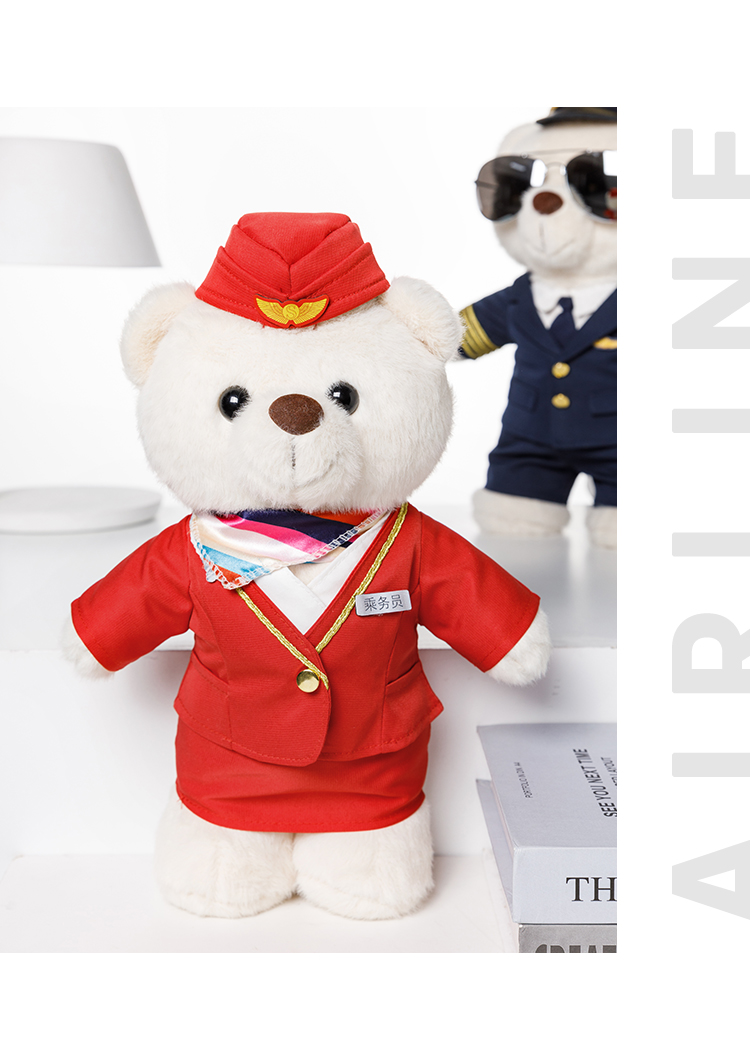 【实付满199送钥匙扣】【机长&空姐站姿熊】可定制创意毛绒职业小熊公仔儿童玩具服装可脱送礼礼物