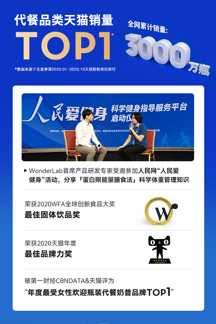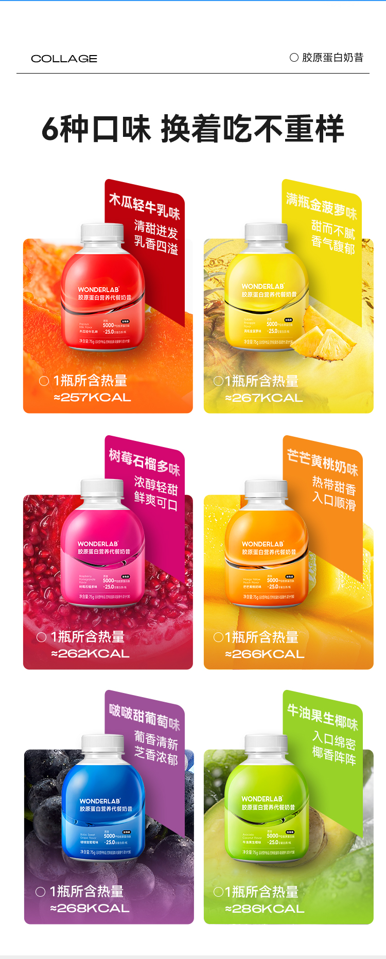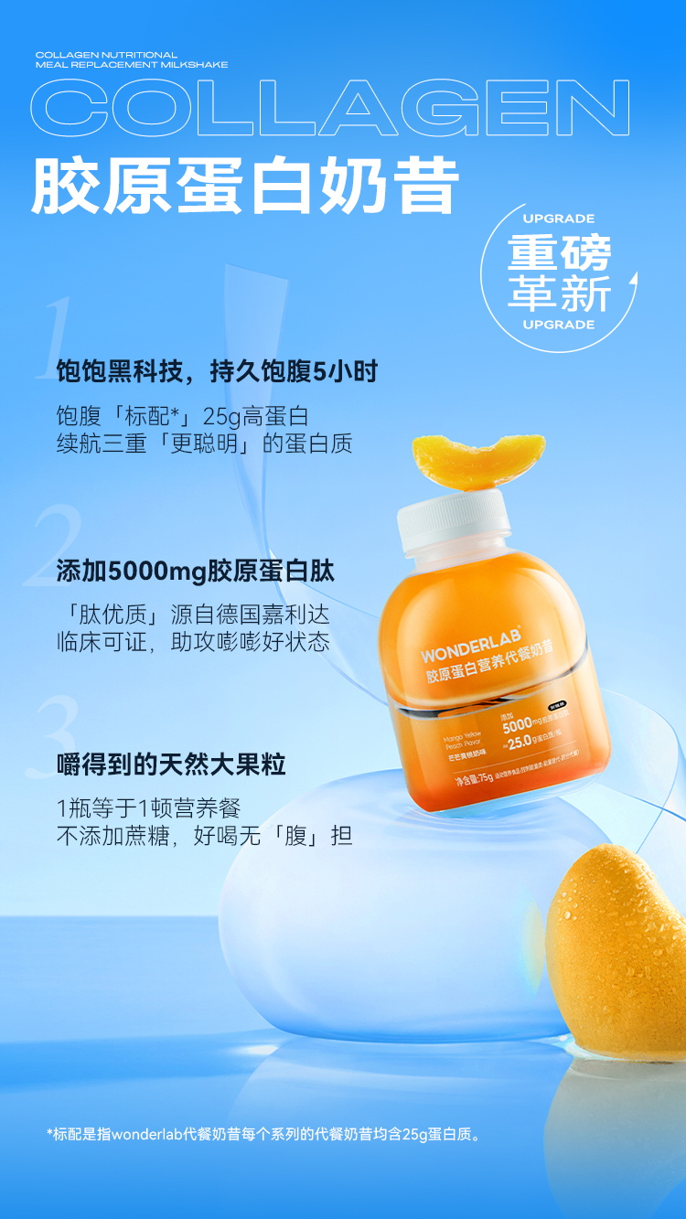 万益蓝WonderLab胶原蛋白代餐奶昔高蛋白营养饱腹6瓶装