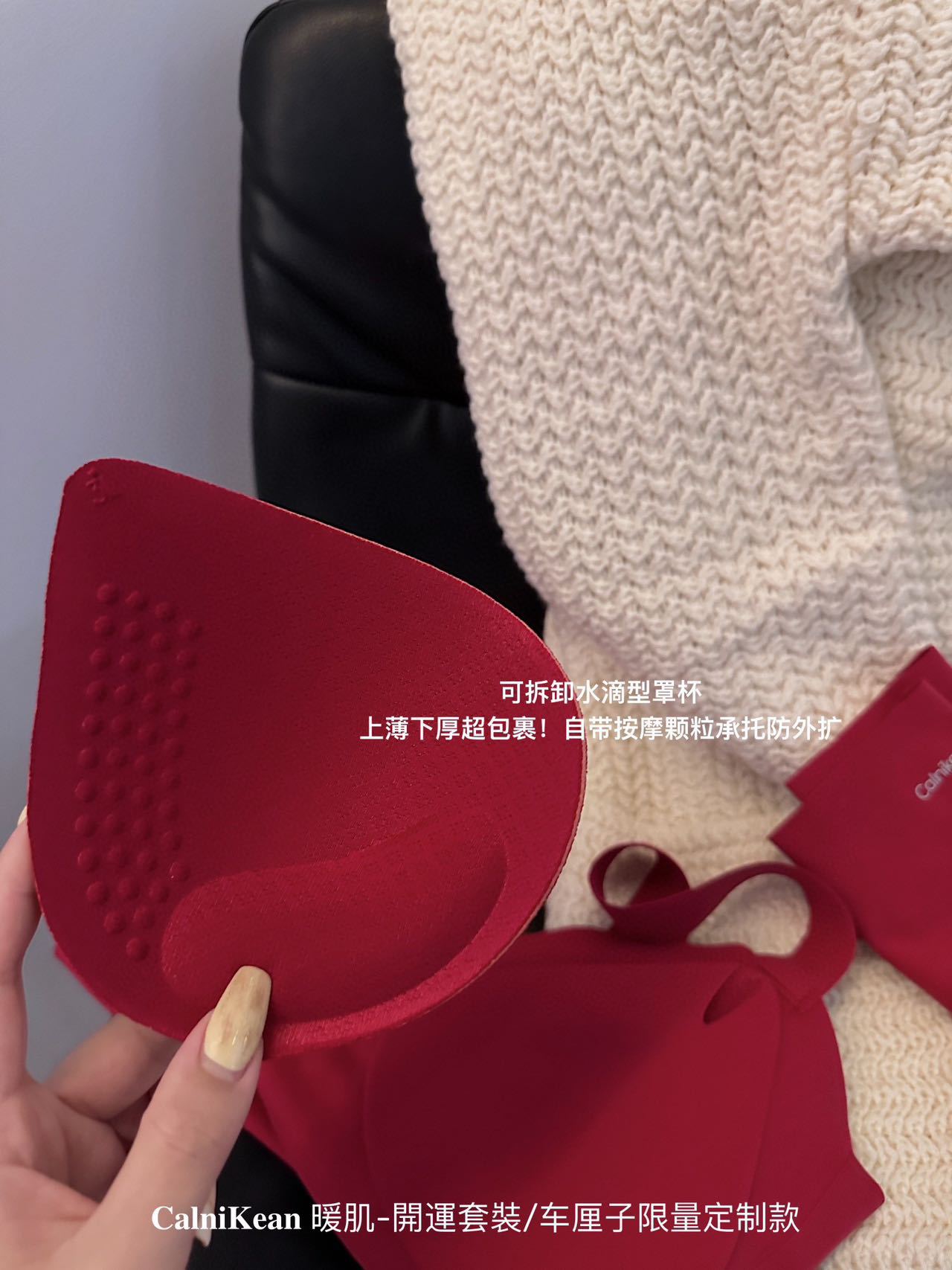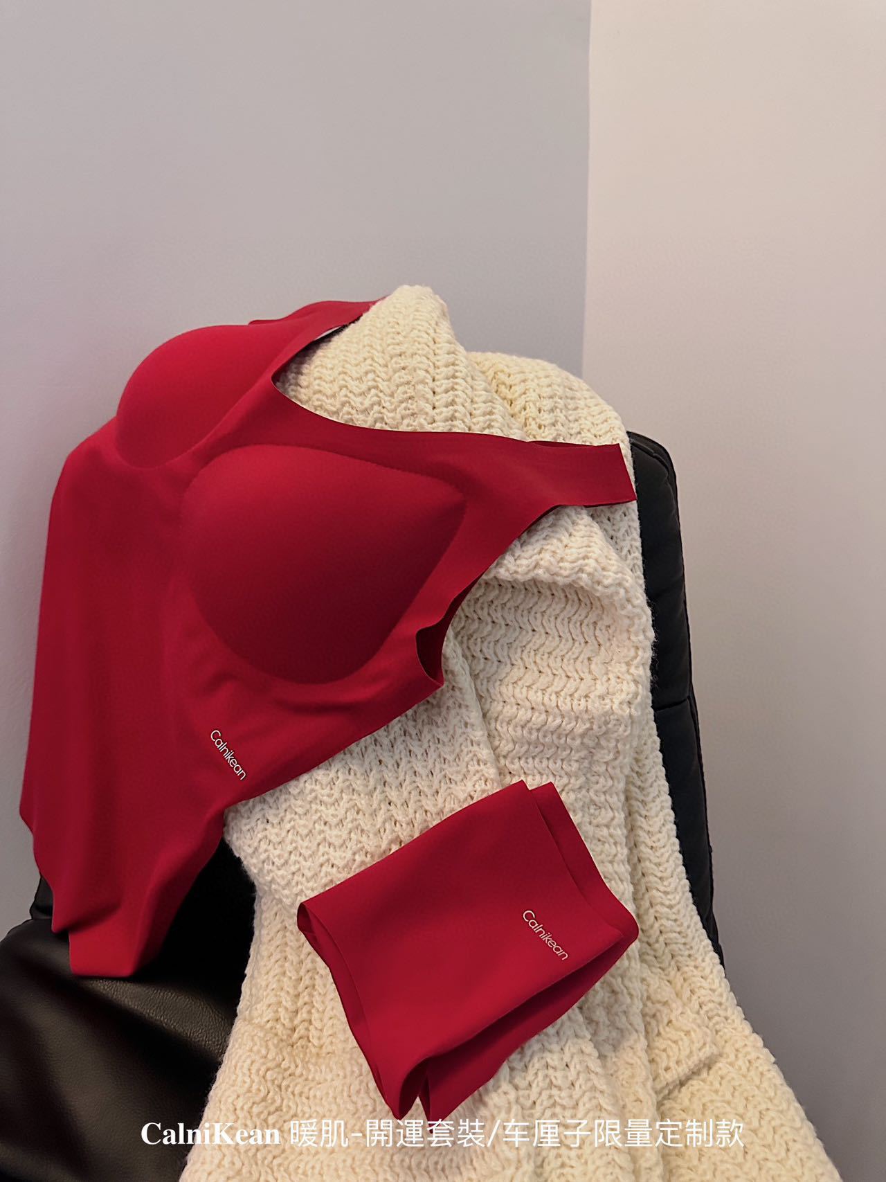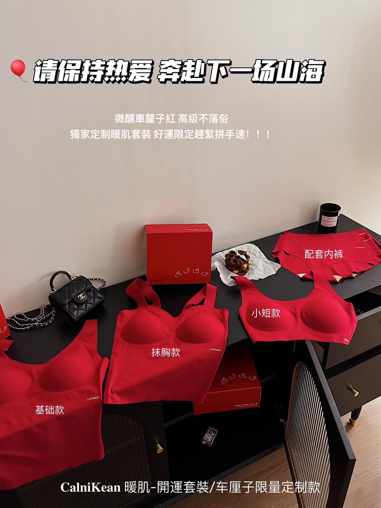 2025新年【暖肌好运红内衣内裤套装】本命年大红文胸保暖背心