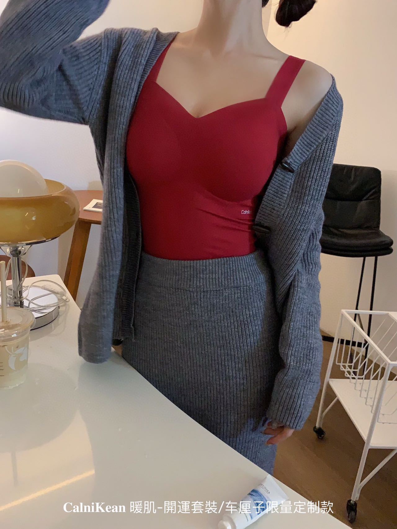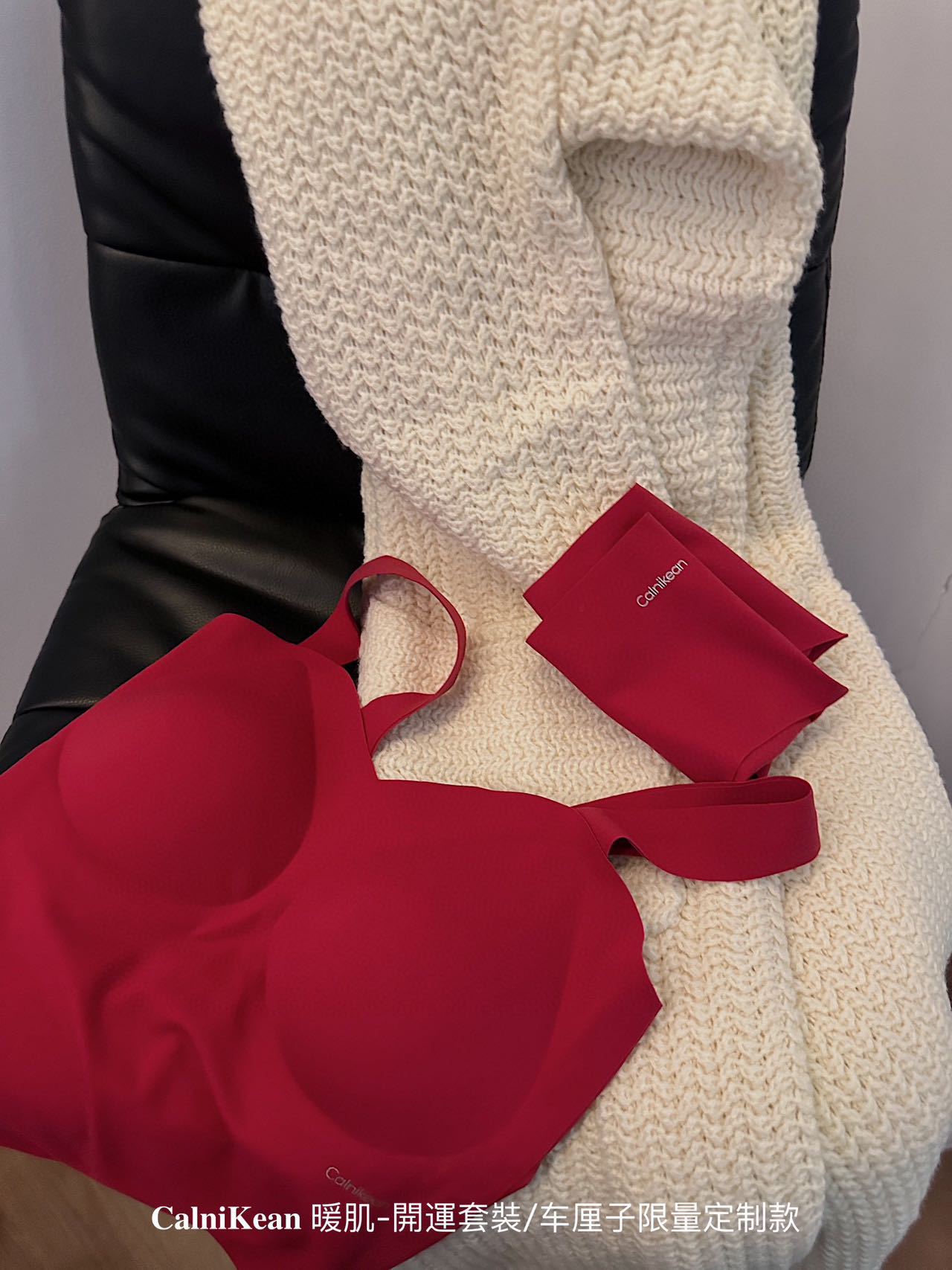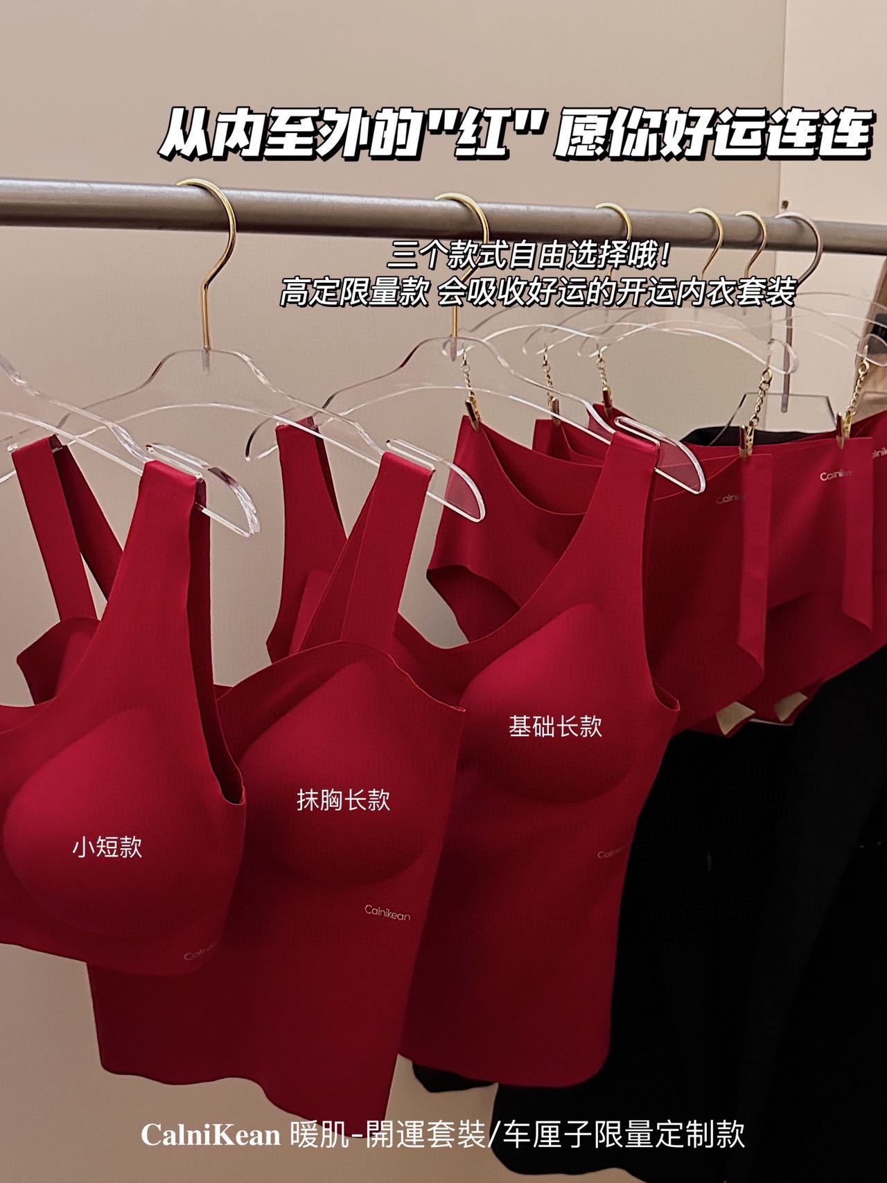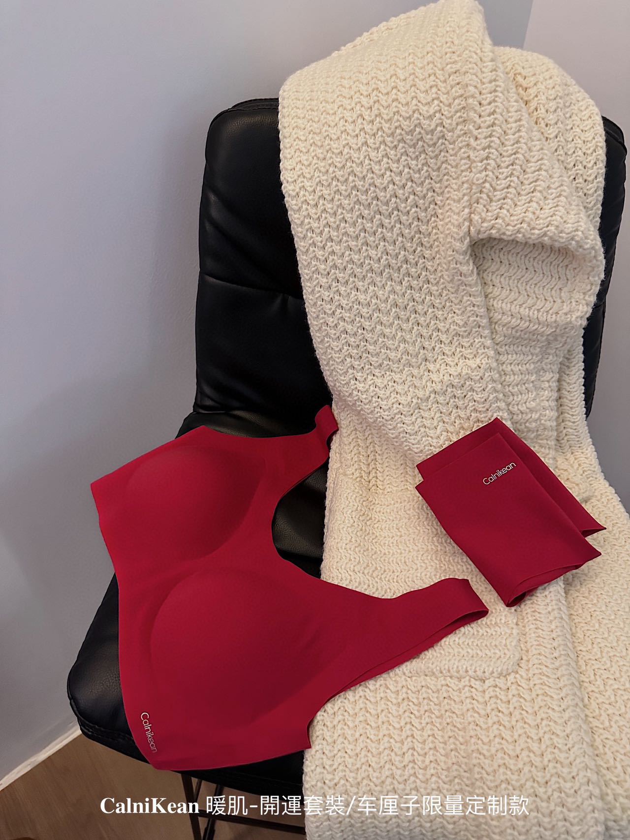 2025新年【暖肌好运红内衣内裤套装】本命年大红文胸保暖背心
