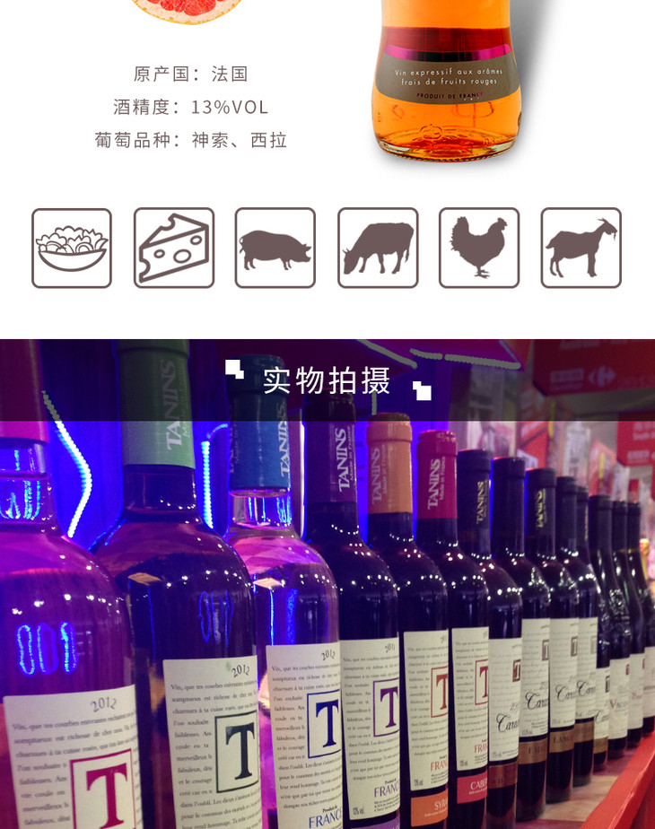 泰妮丝普罗旺斯桃红葡萄酒 Tanins Cotes de Provence 单支装750ml